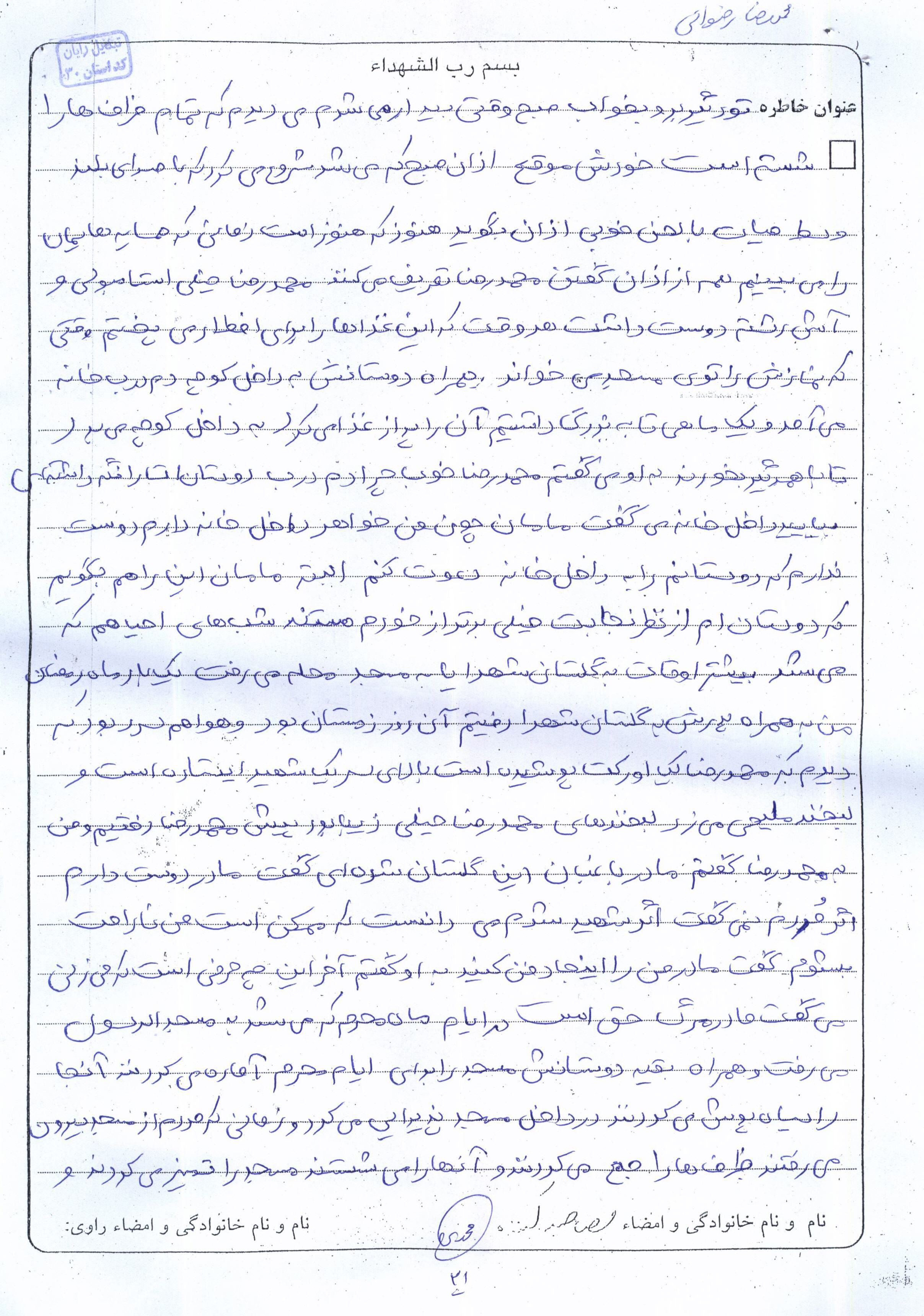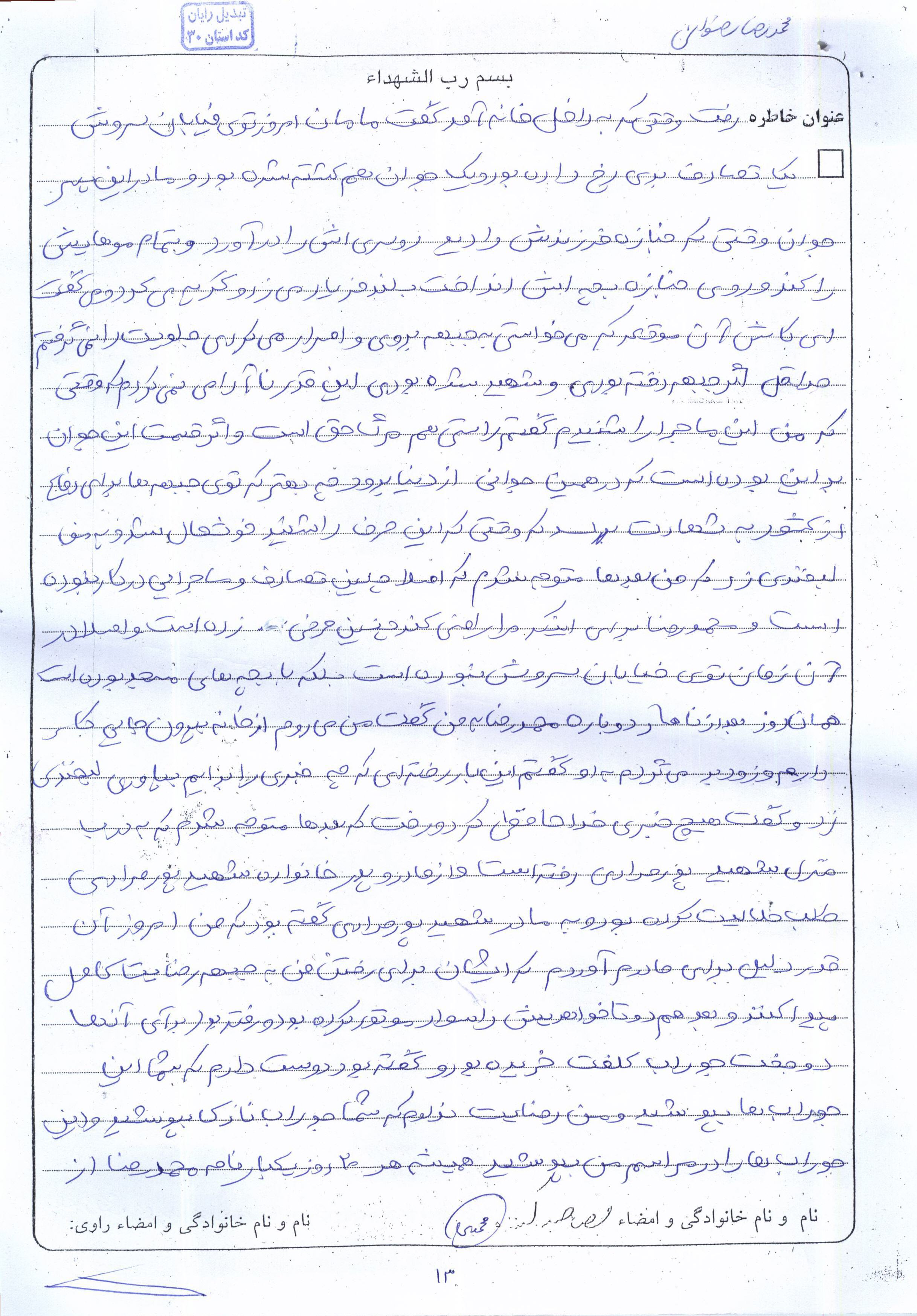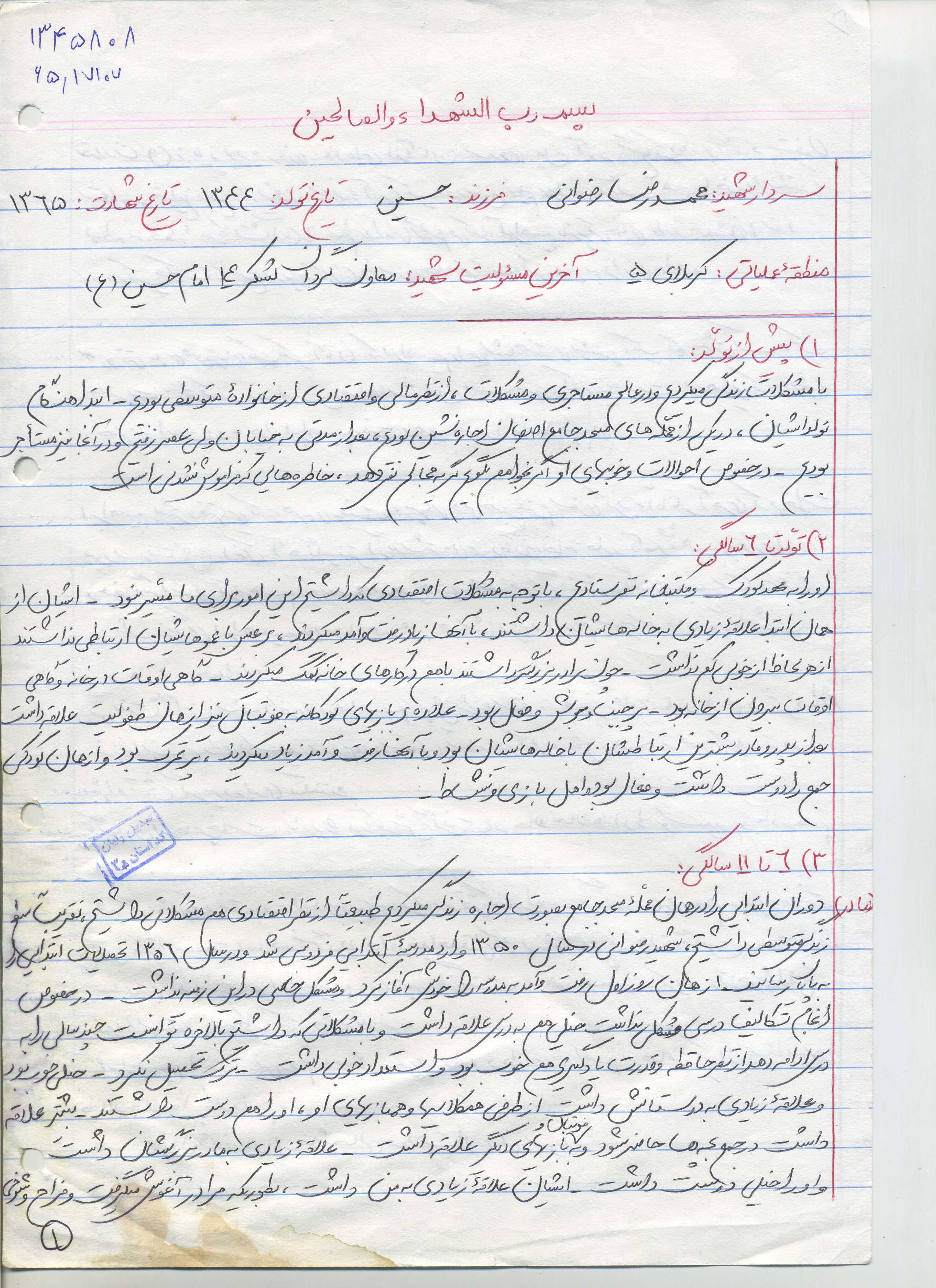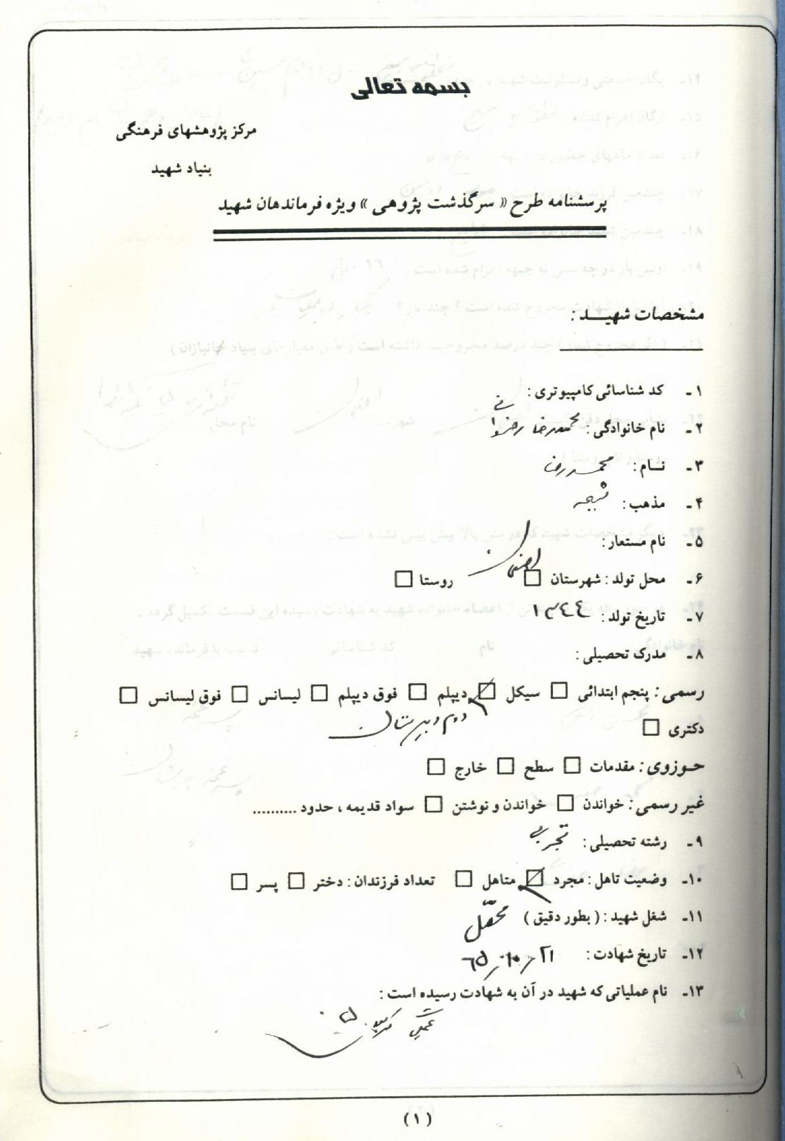اسناد مرتبط با شهید محمدرضا رضوانی قهساره