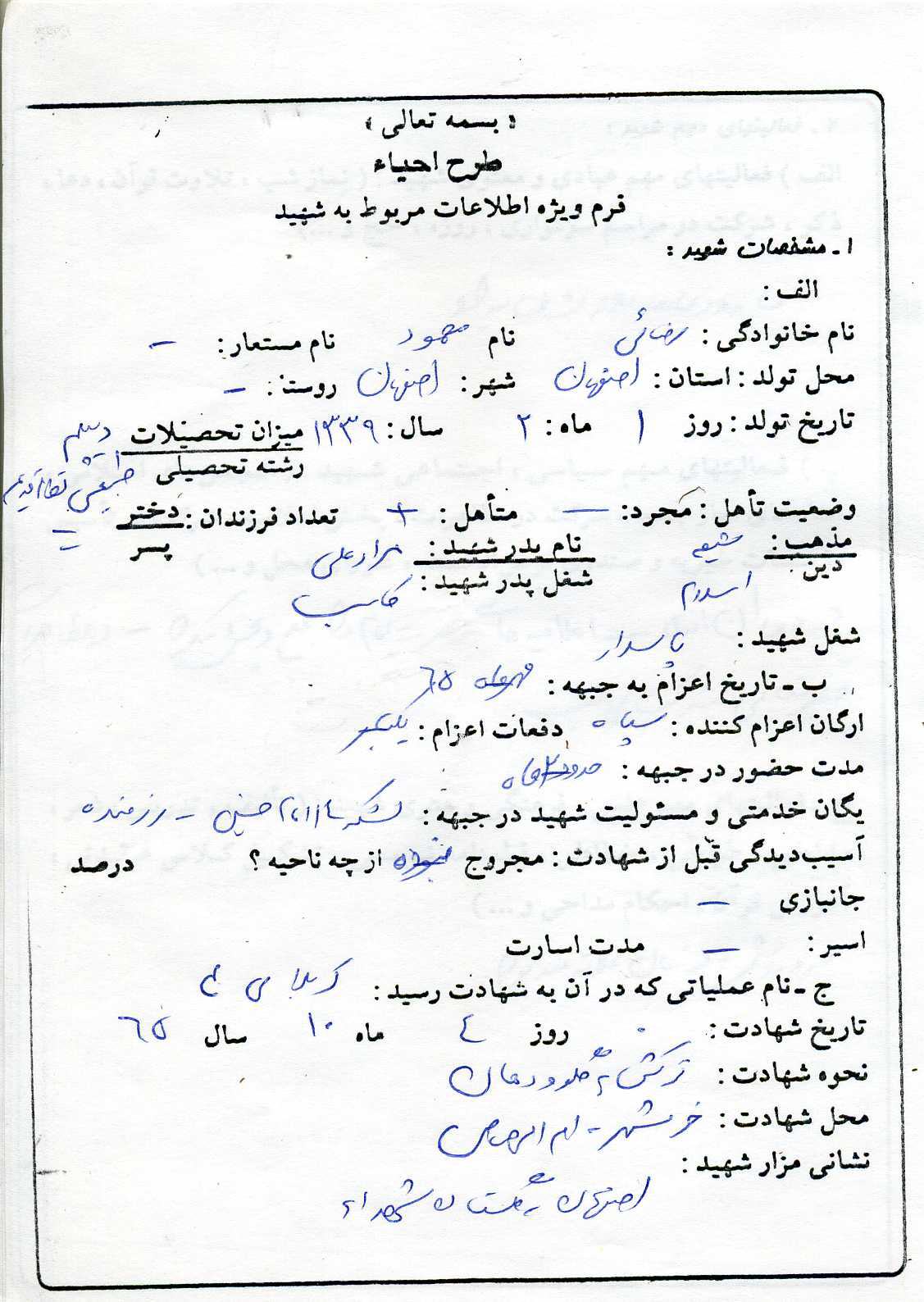 اسناد مرتبط با شهید محمود رضایی آذرخورانی