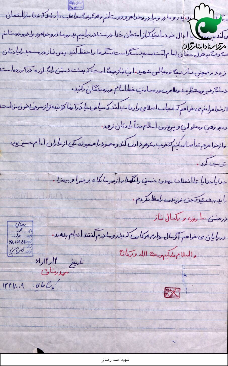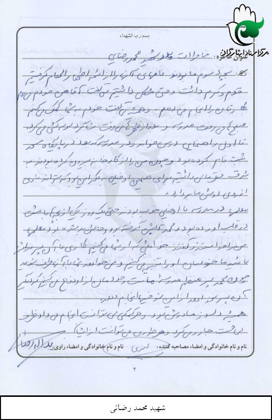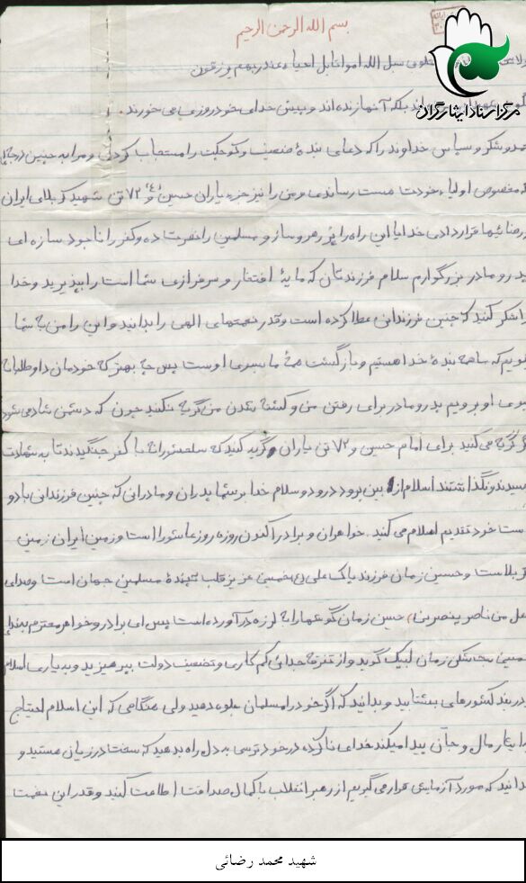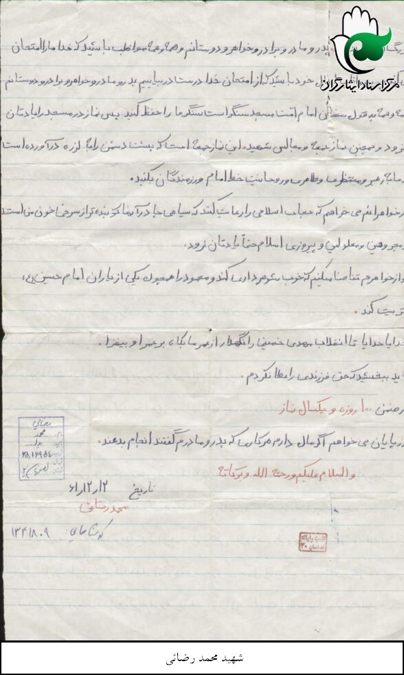 اسناد مرتبط با شهید محمد رضایی
