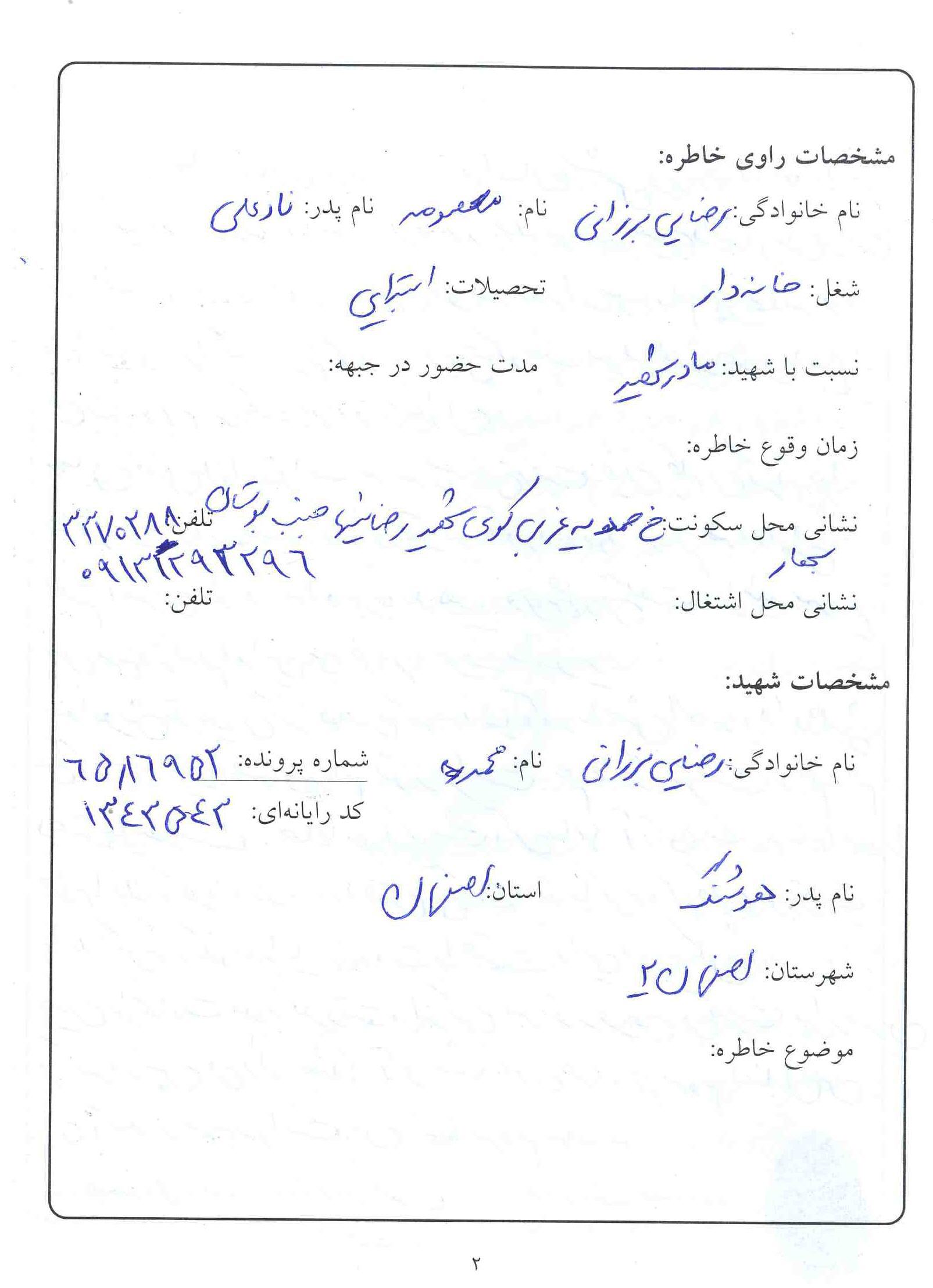 اسناد مرتبط با شهید محمد رضائی برزانی