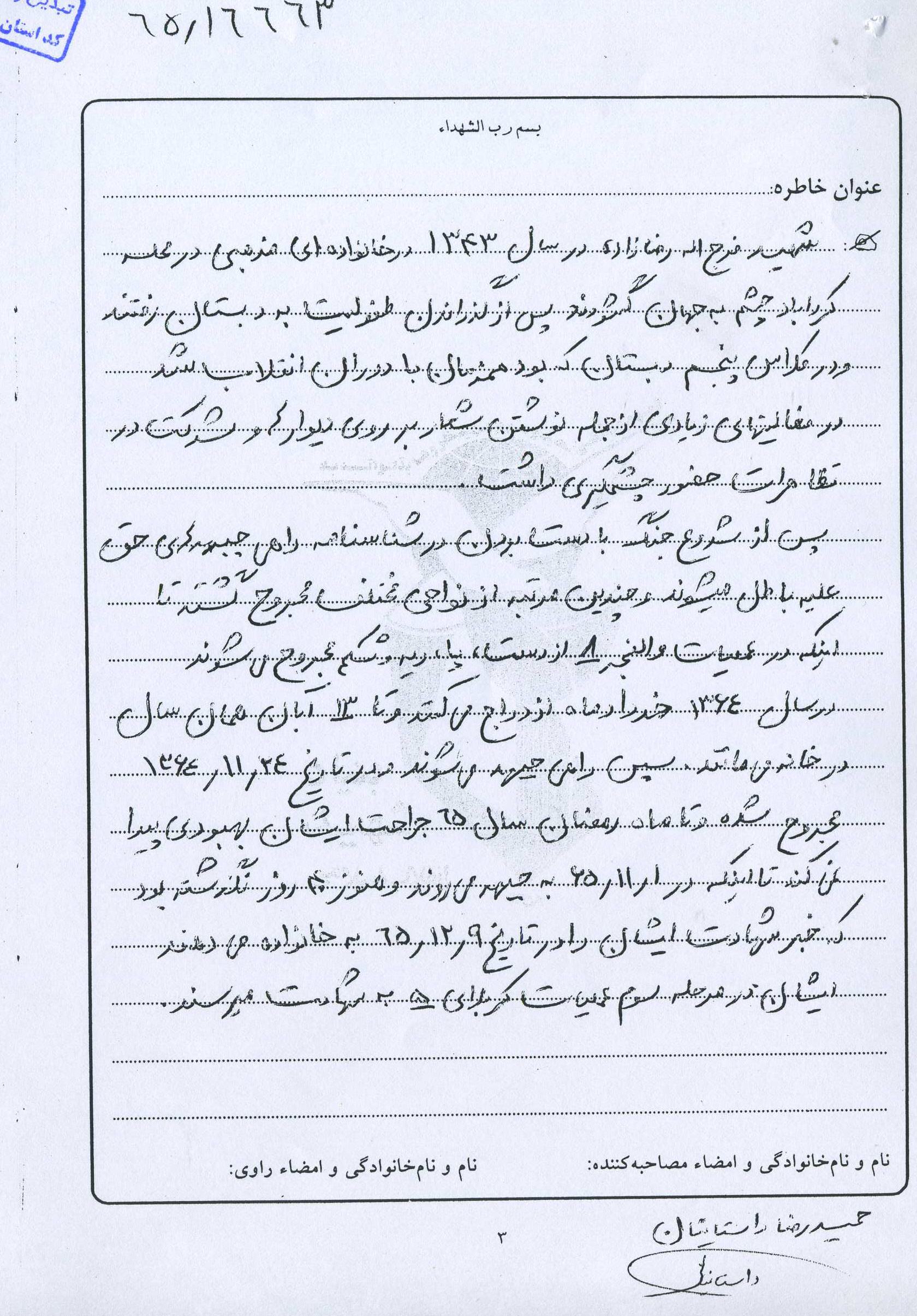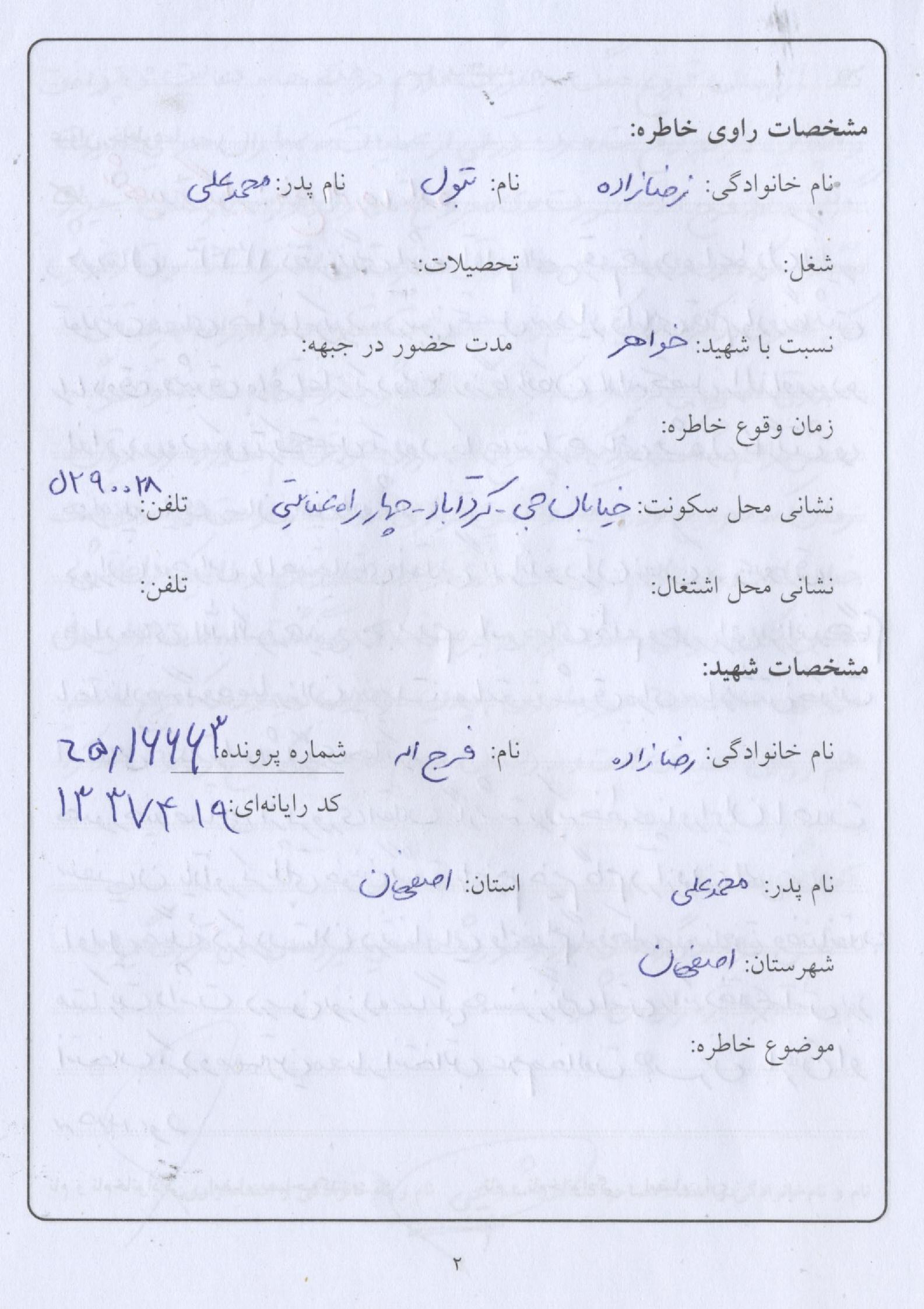 اسناد مرتبط با شهید فرج الله رضازاده سواردز