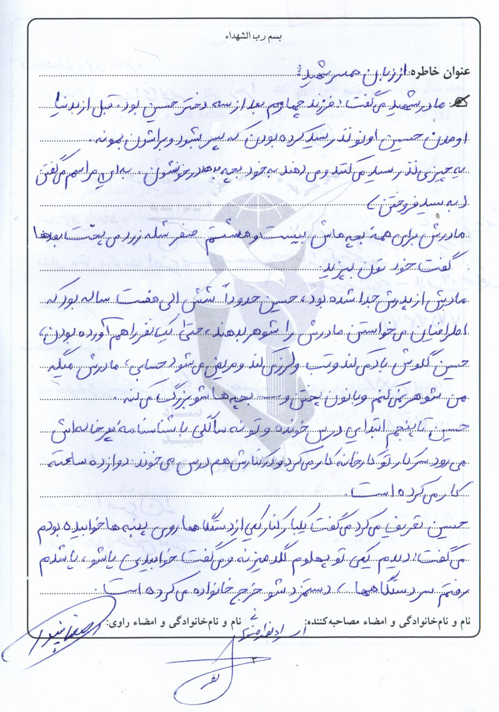 اسناد مرتبط با شهید حسین رشیدی حسین آبادی