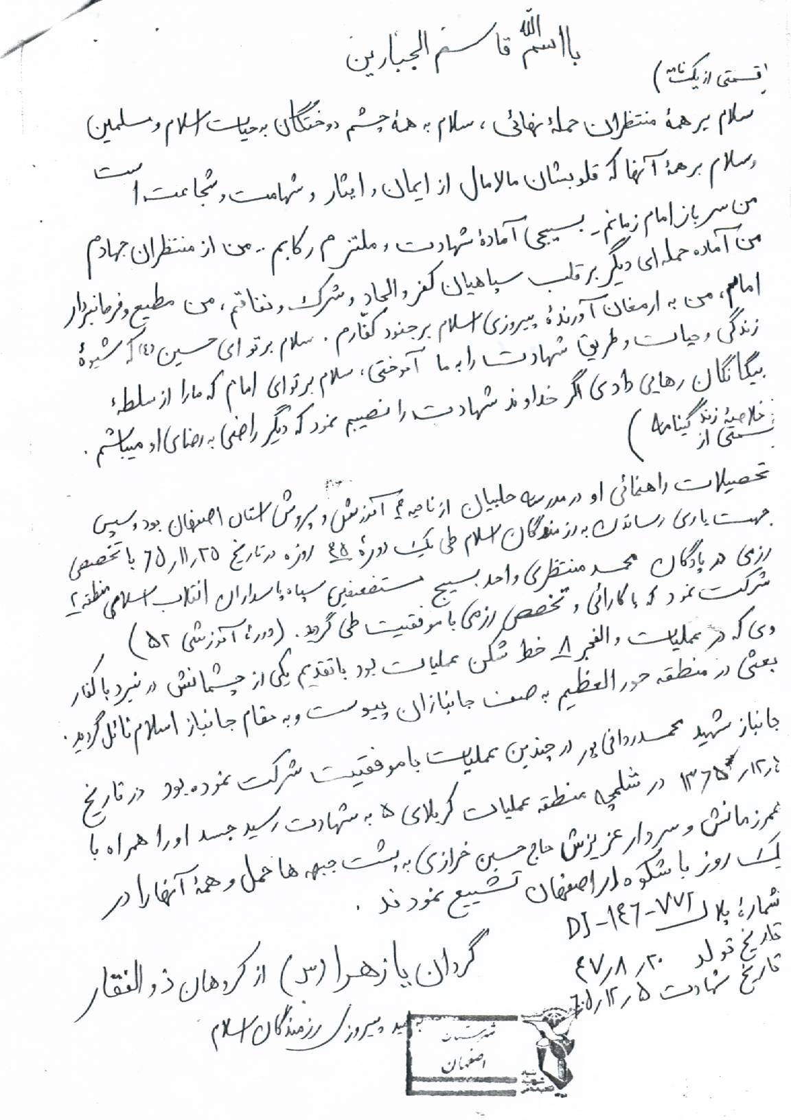 اسناد مرتبط با شهید محمد ردانی پورلادانی
