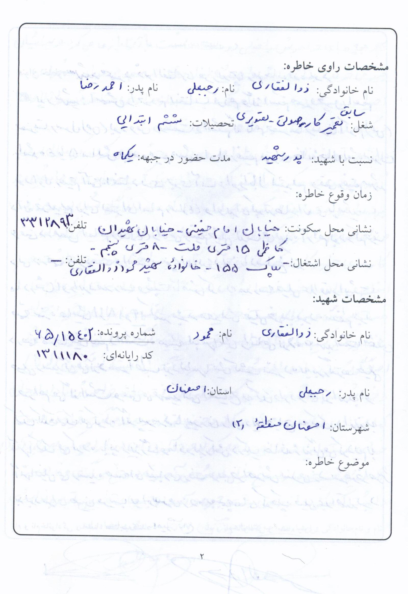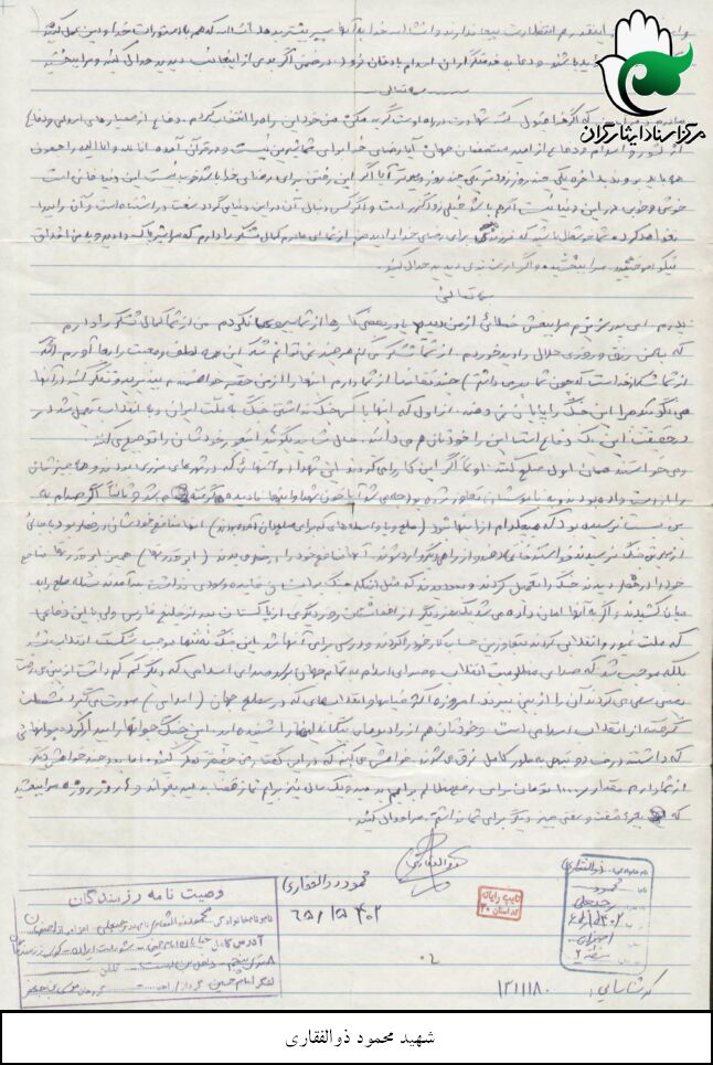 اسناد مرتبط با شهید محمود ذوالفقاری
