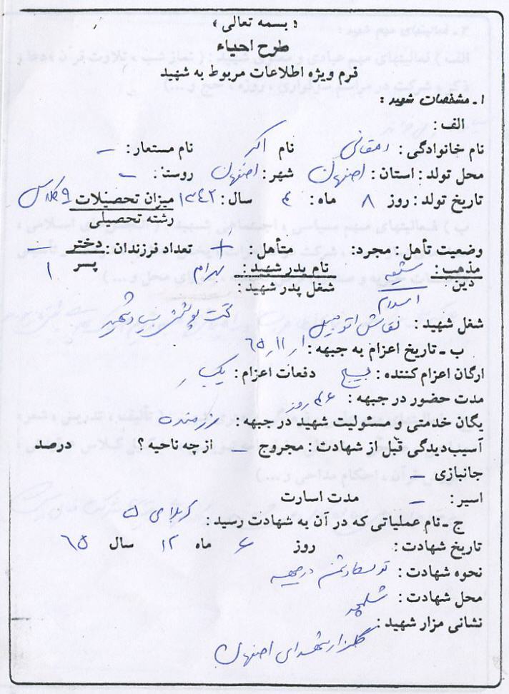 اسناد مرتبط با شهید اکبر دهقانی