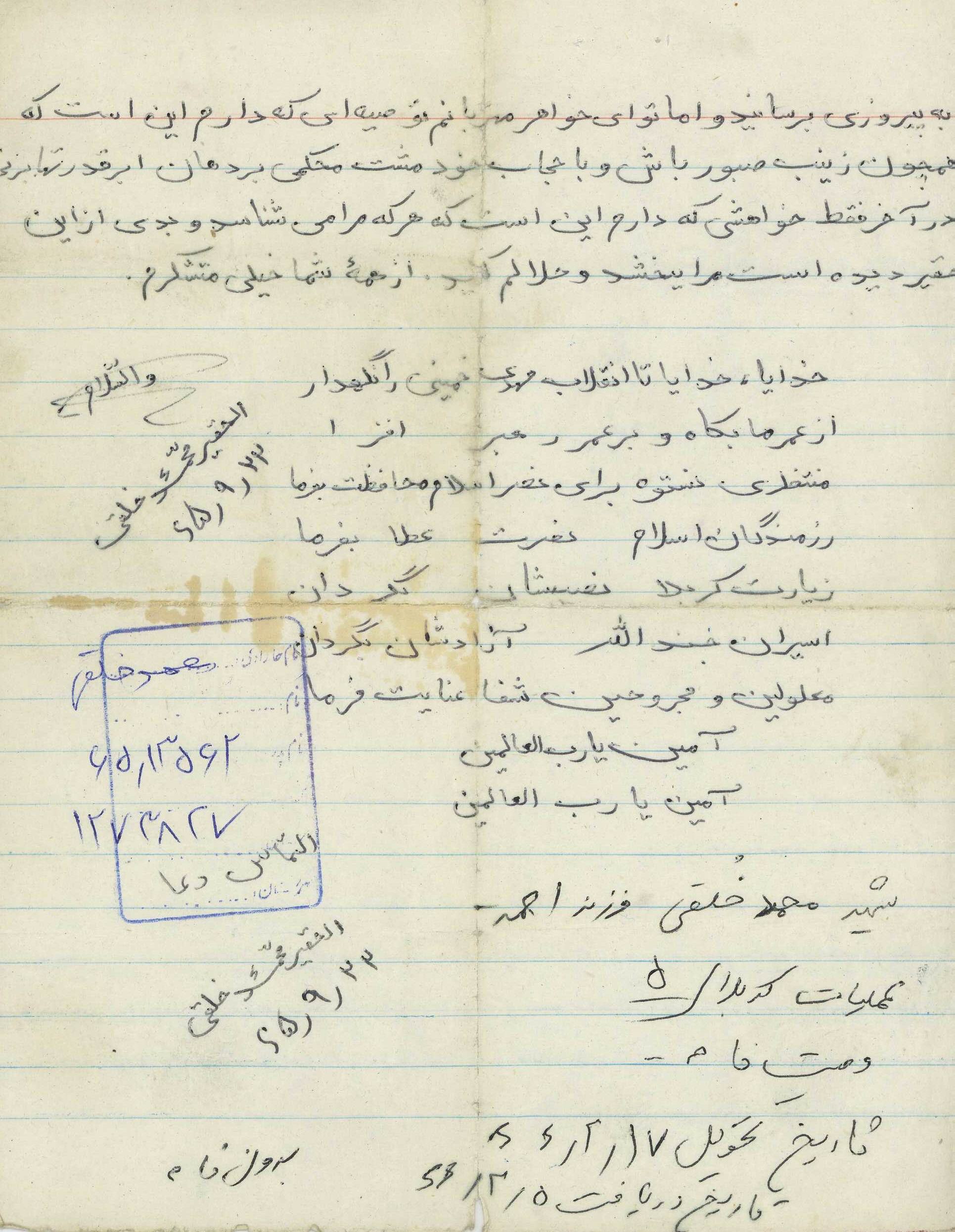 اسناد مرتبط با شهید محمد خلقی