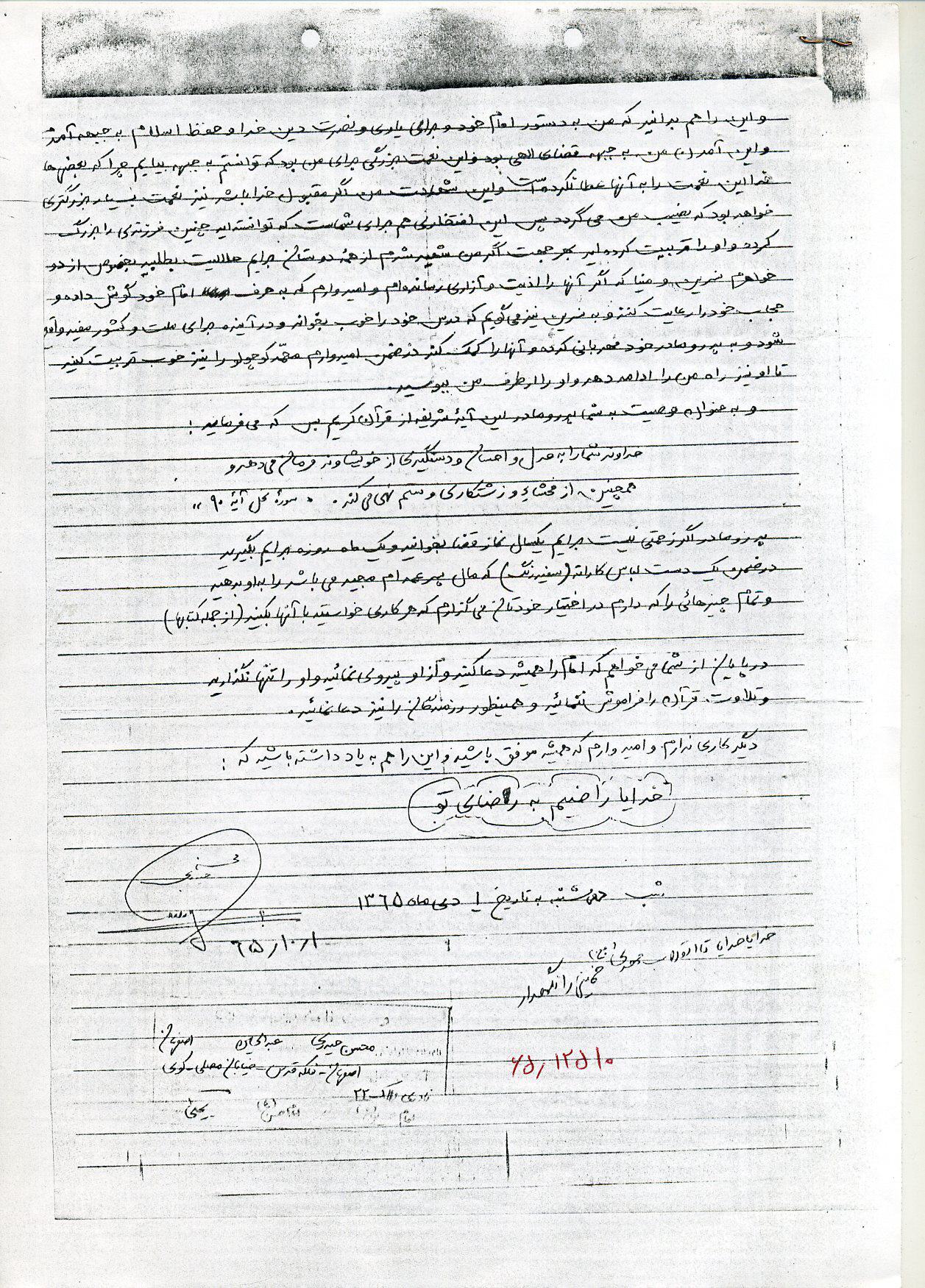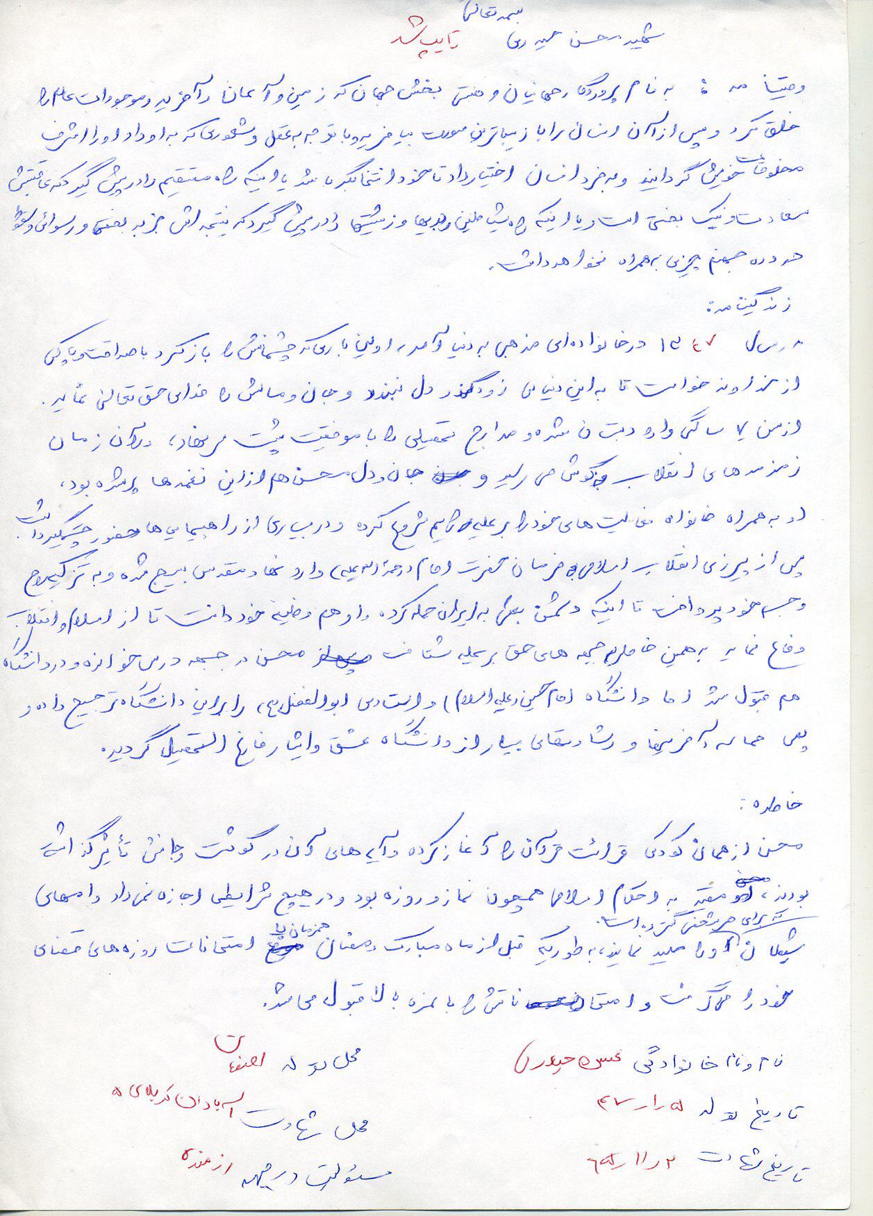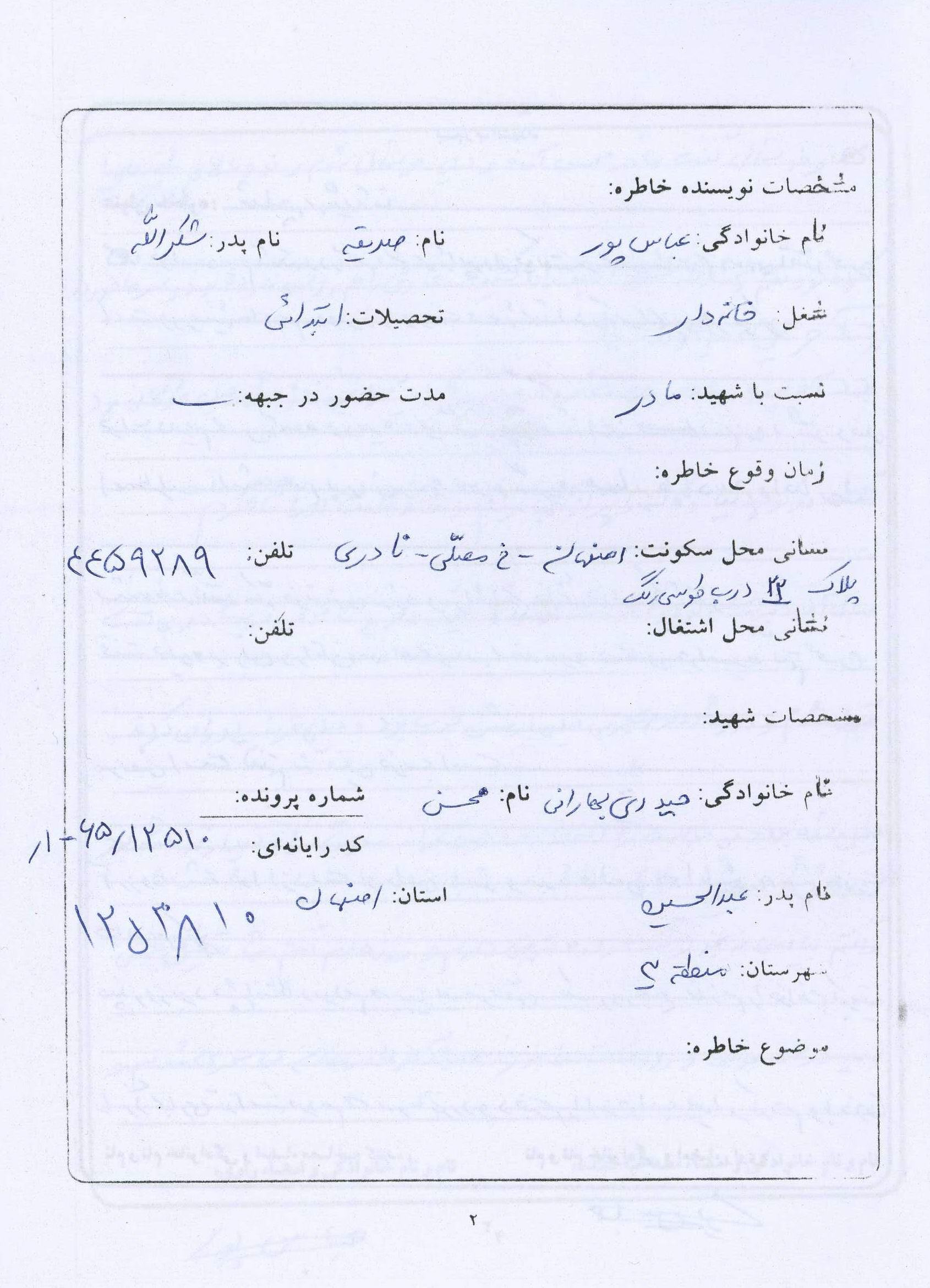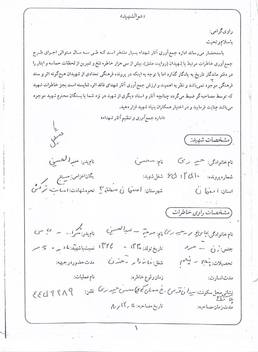 اسناد مرتبط با شهید محسن حیدری بهارانچی