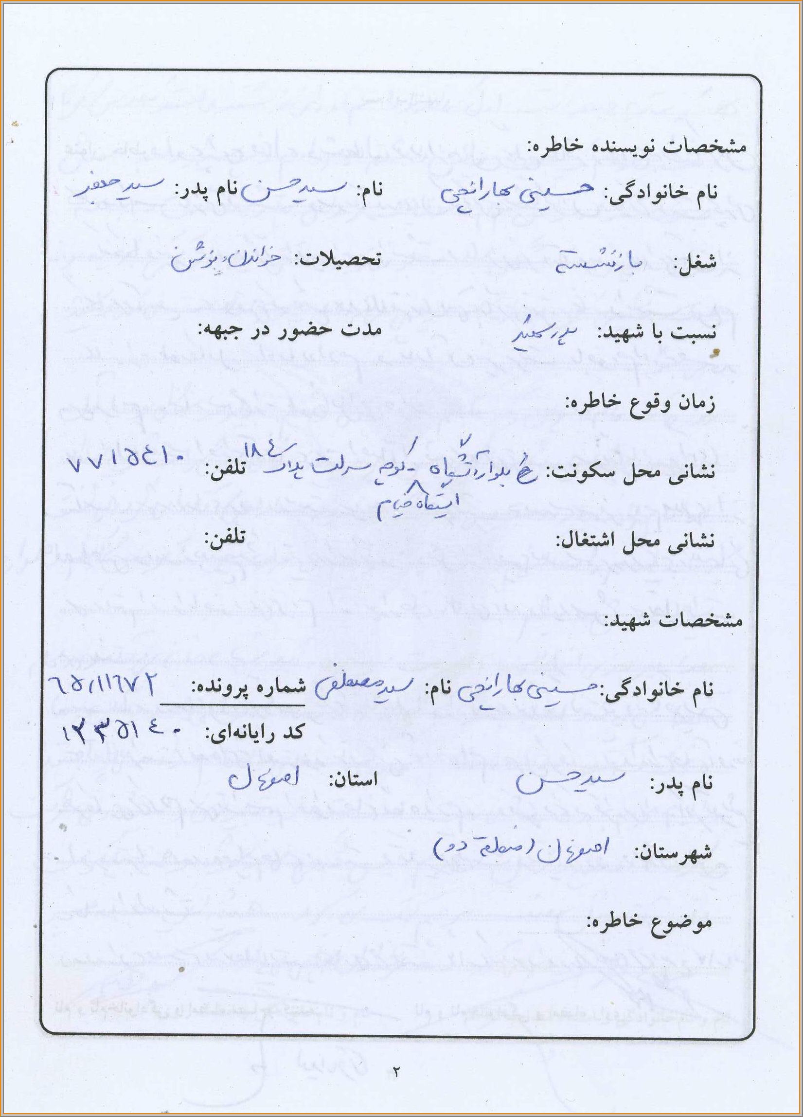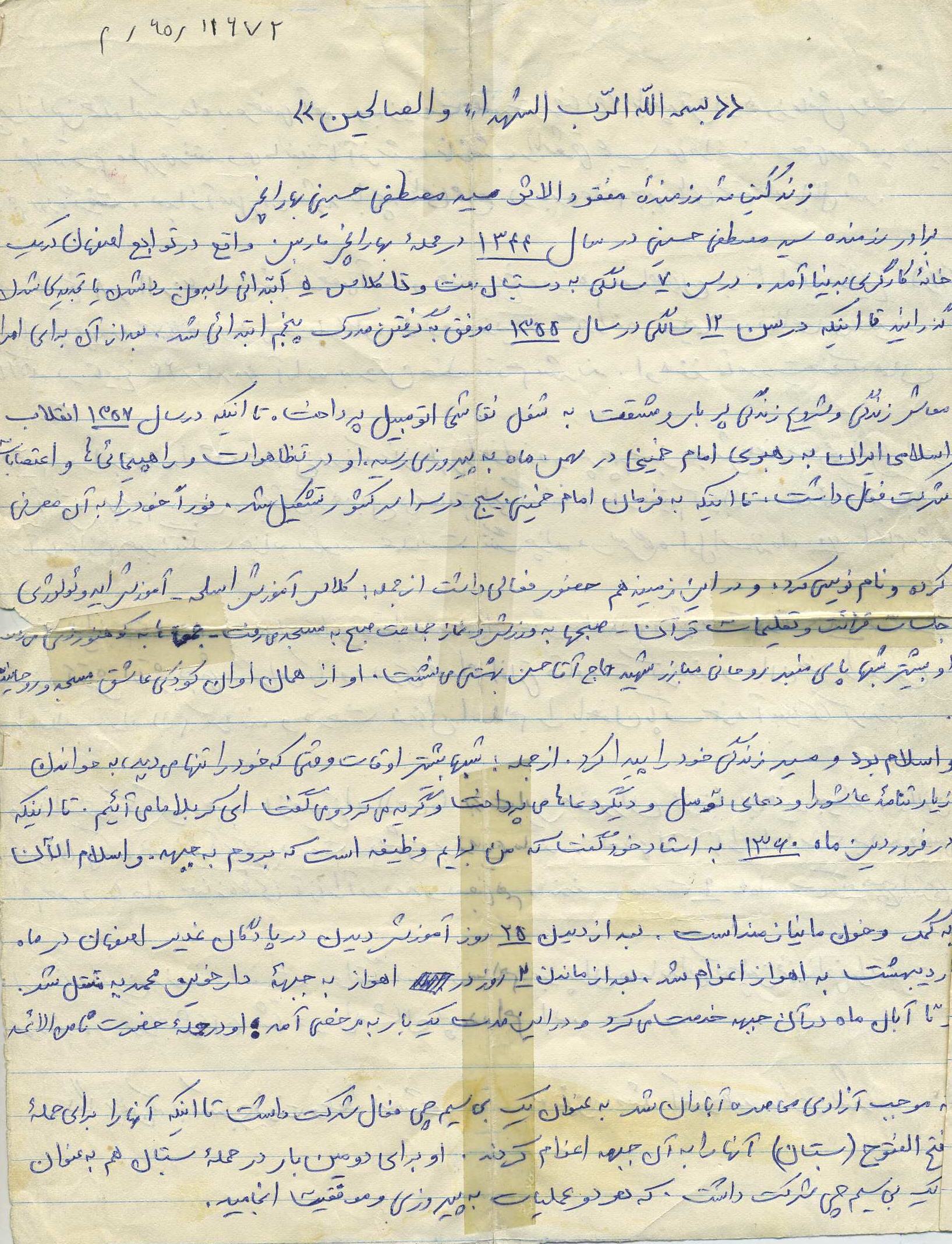 اسناد مرتبط با شهید سیدمصطفی حسینی بهارانچی