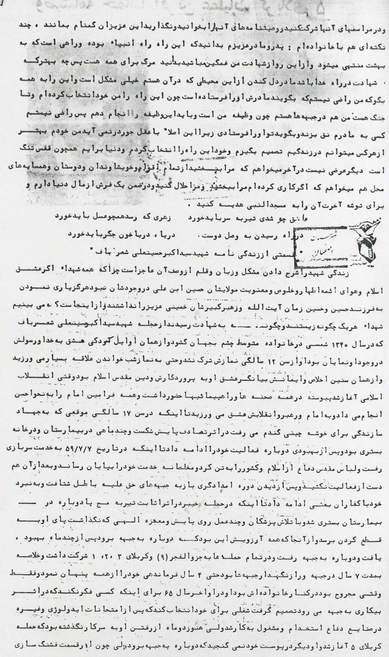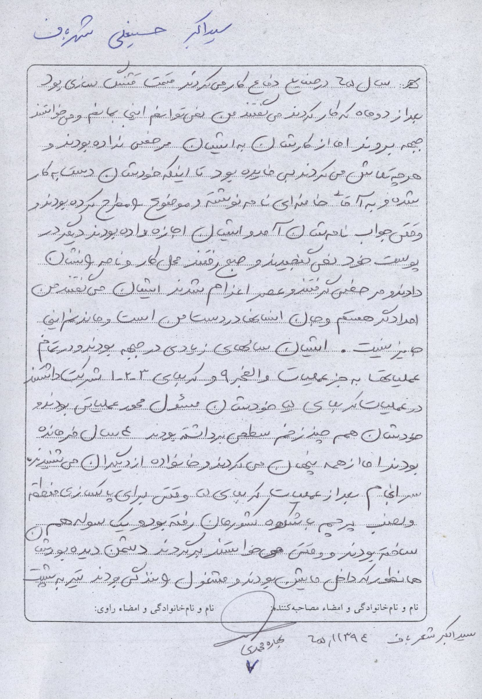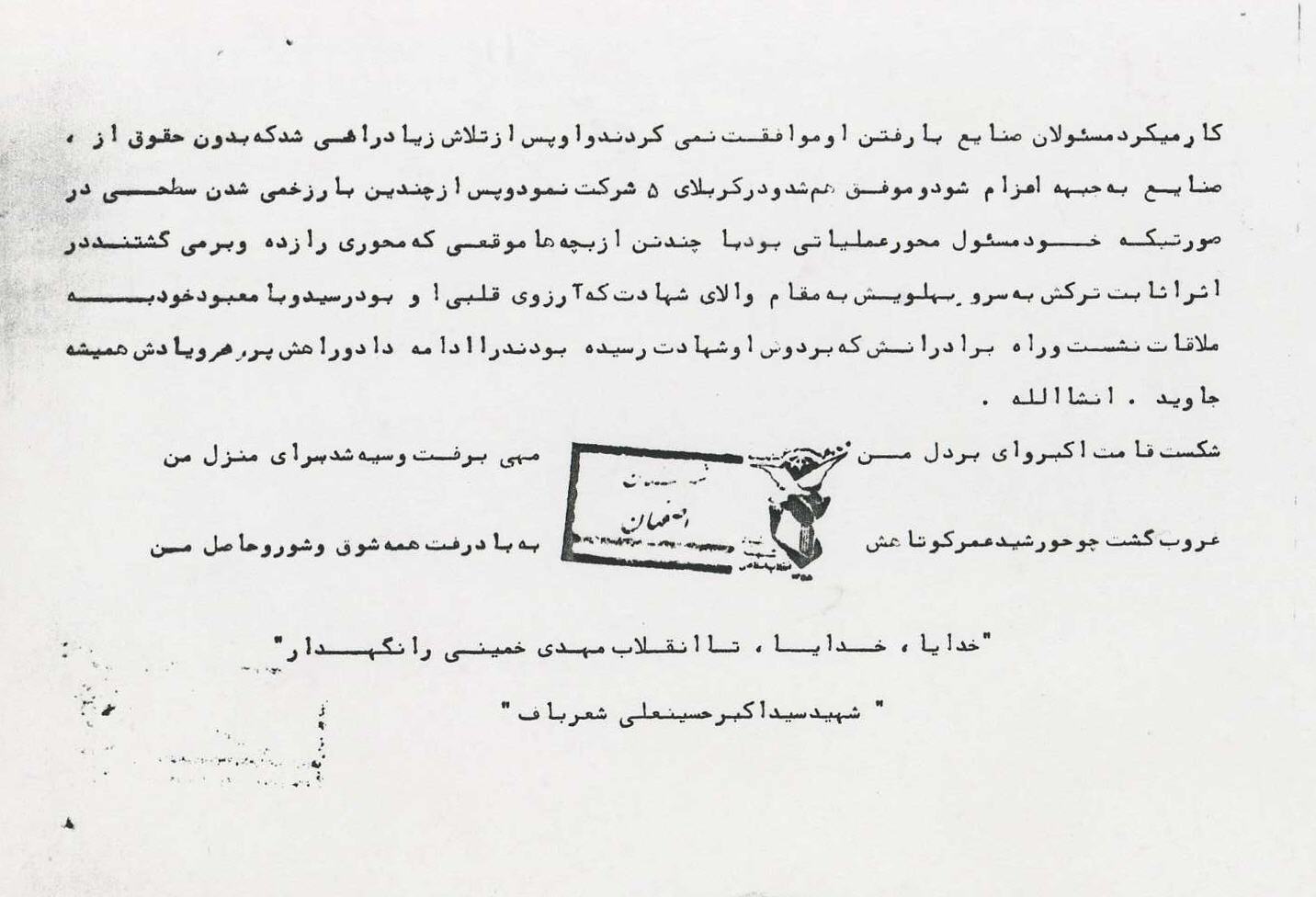 اسناد مرتبط با شهید سیداکبر حسین علی شهرباف