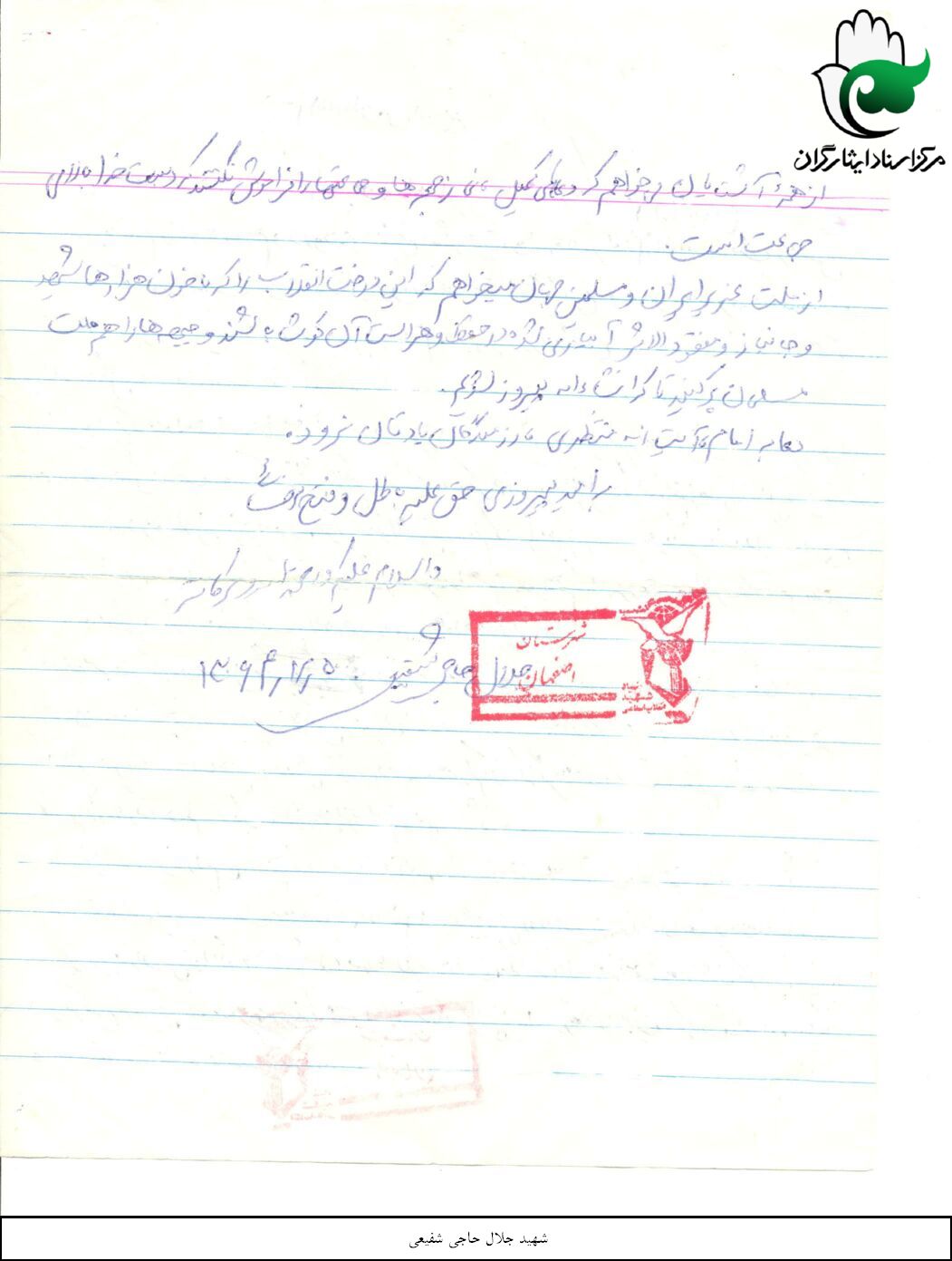 اسناد مرتبط با شهید جلال حاجی شفیعی