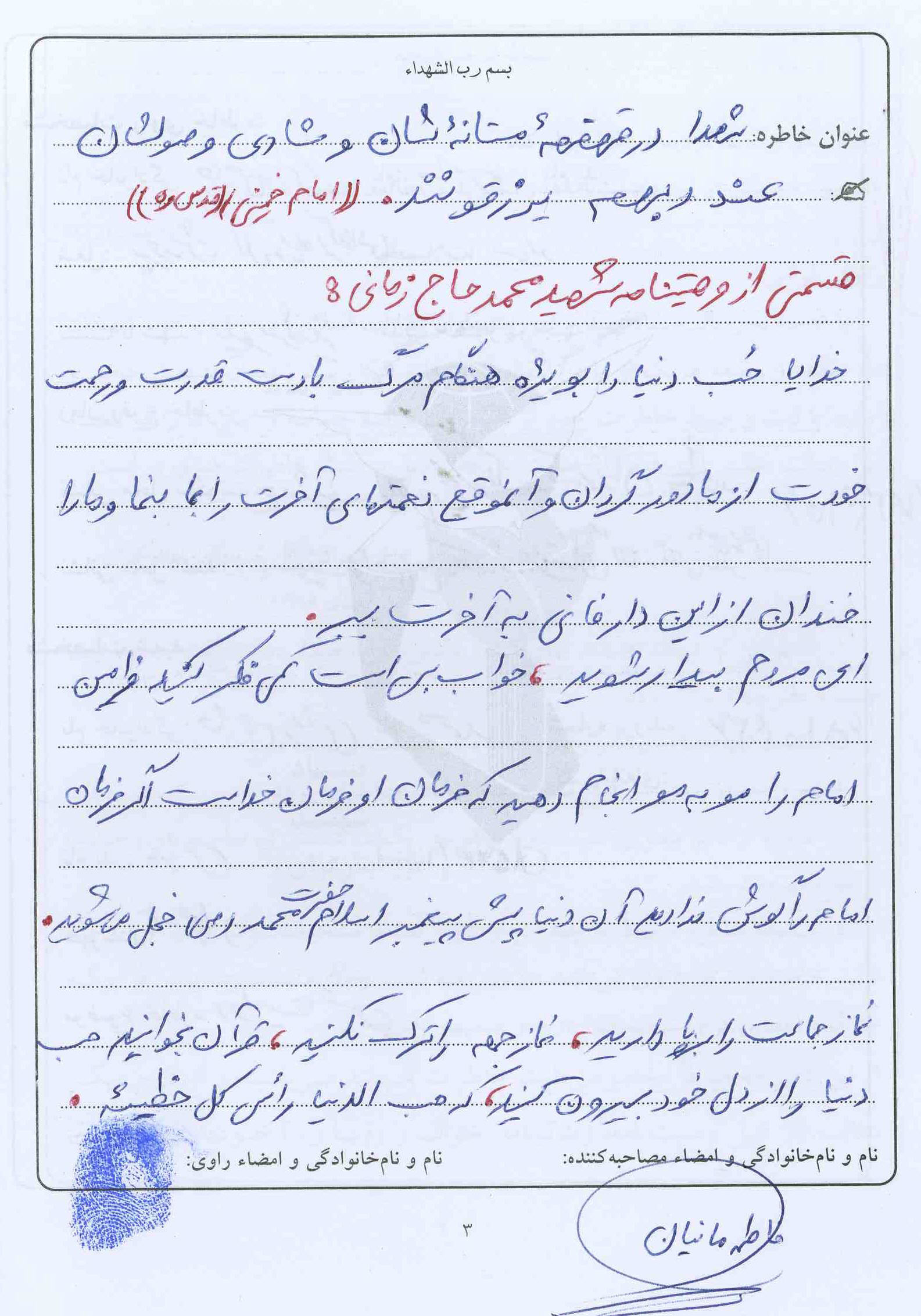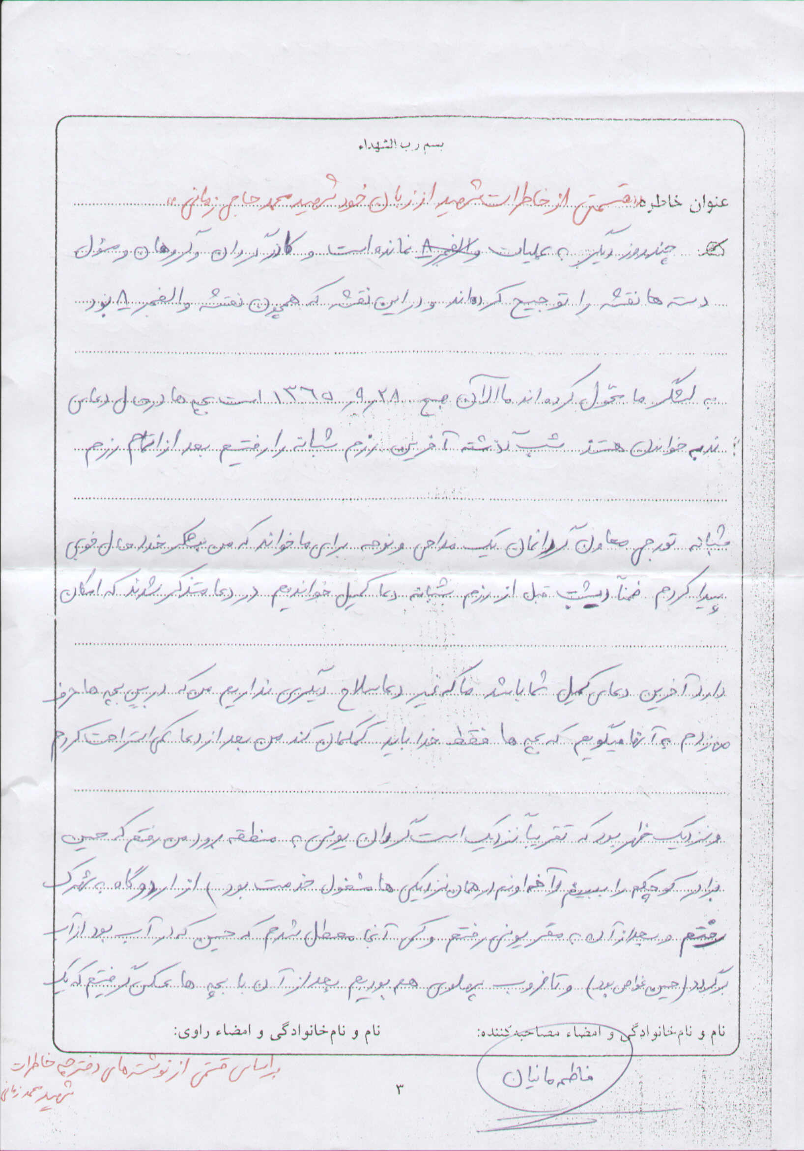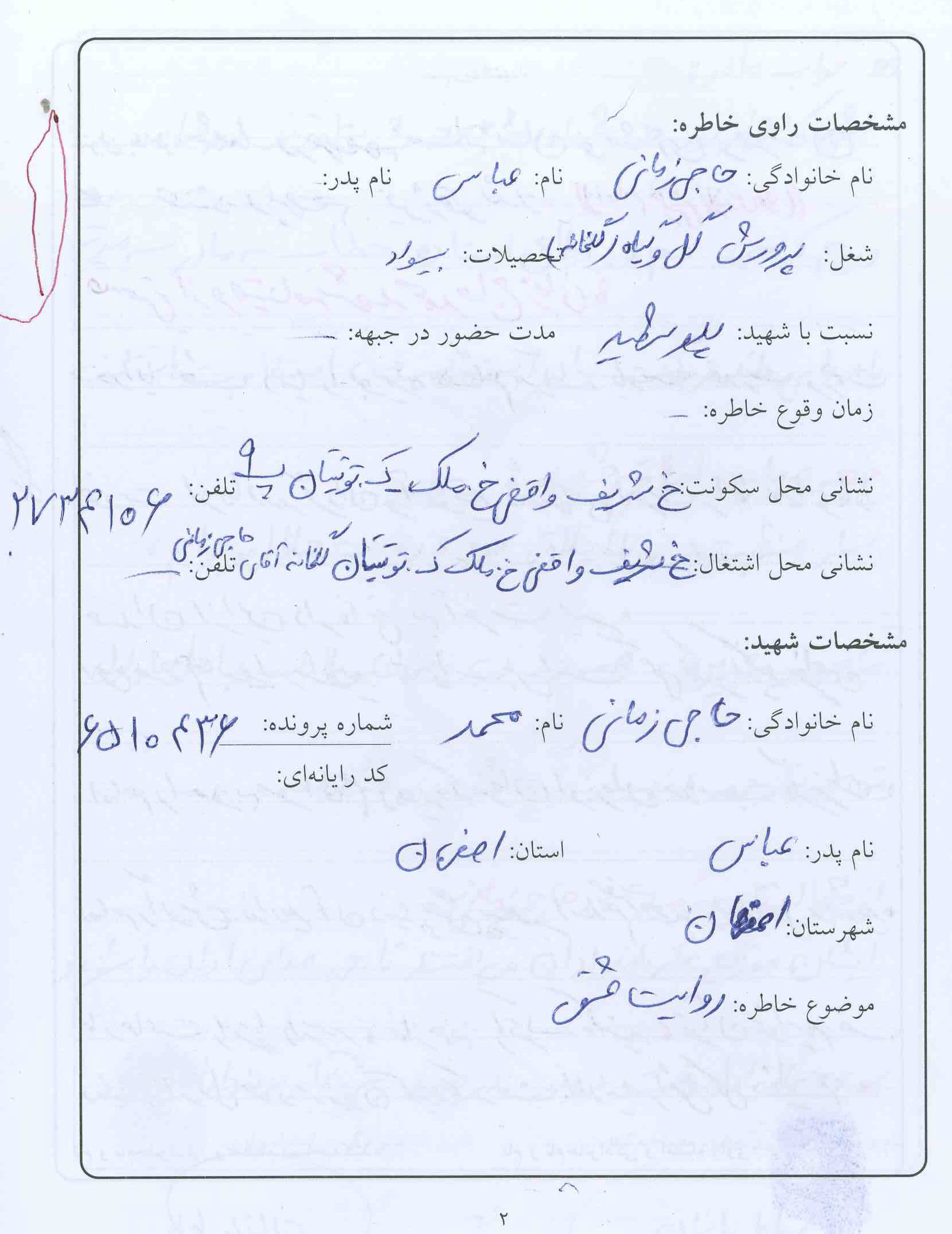 اسناد مرتبط با شهید محمد حاج زمانی