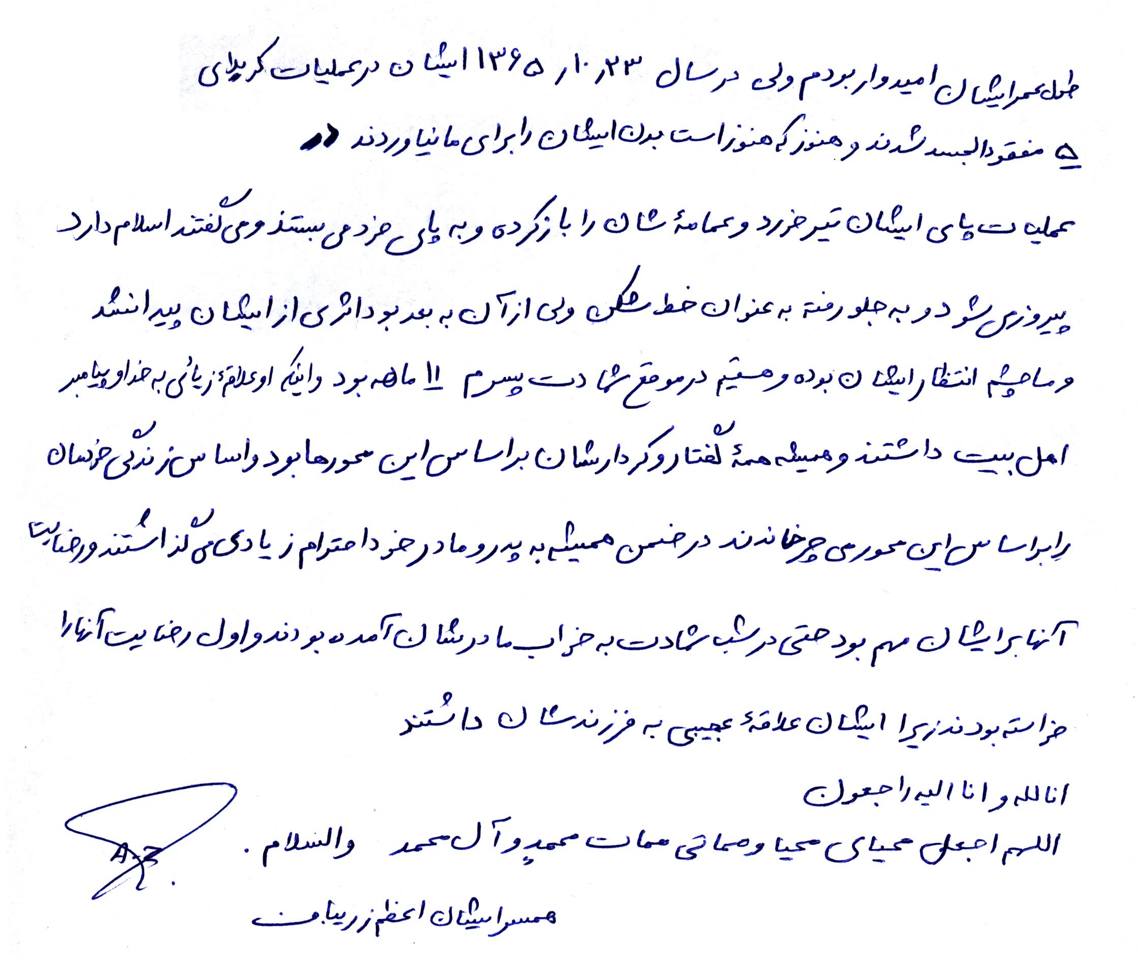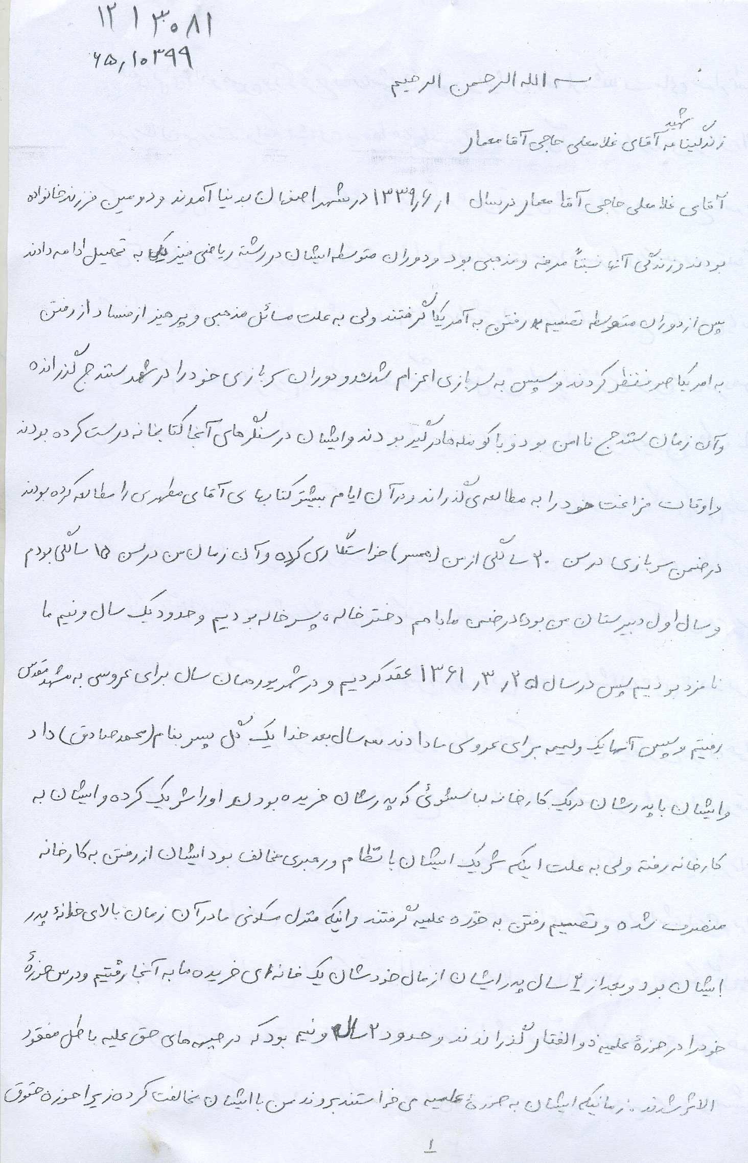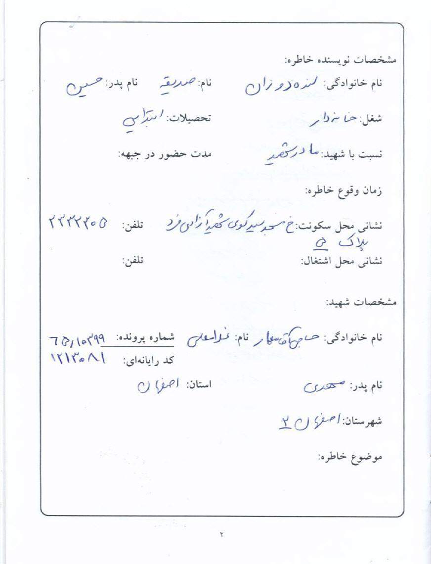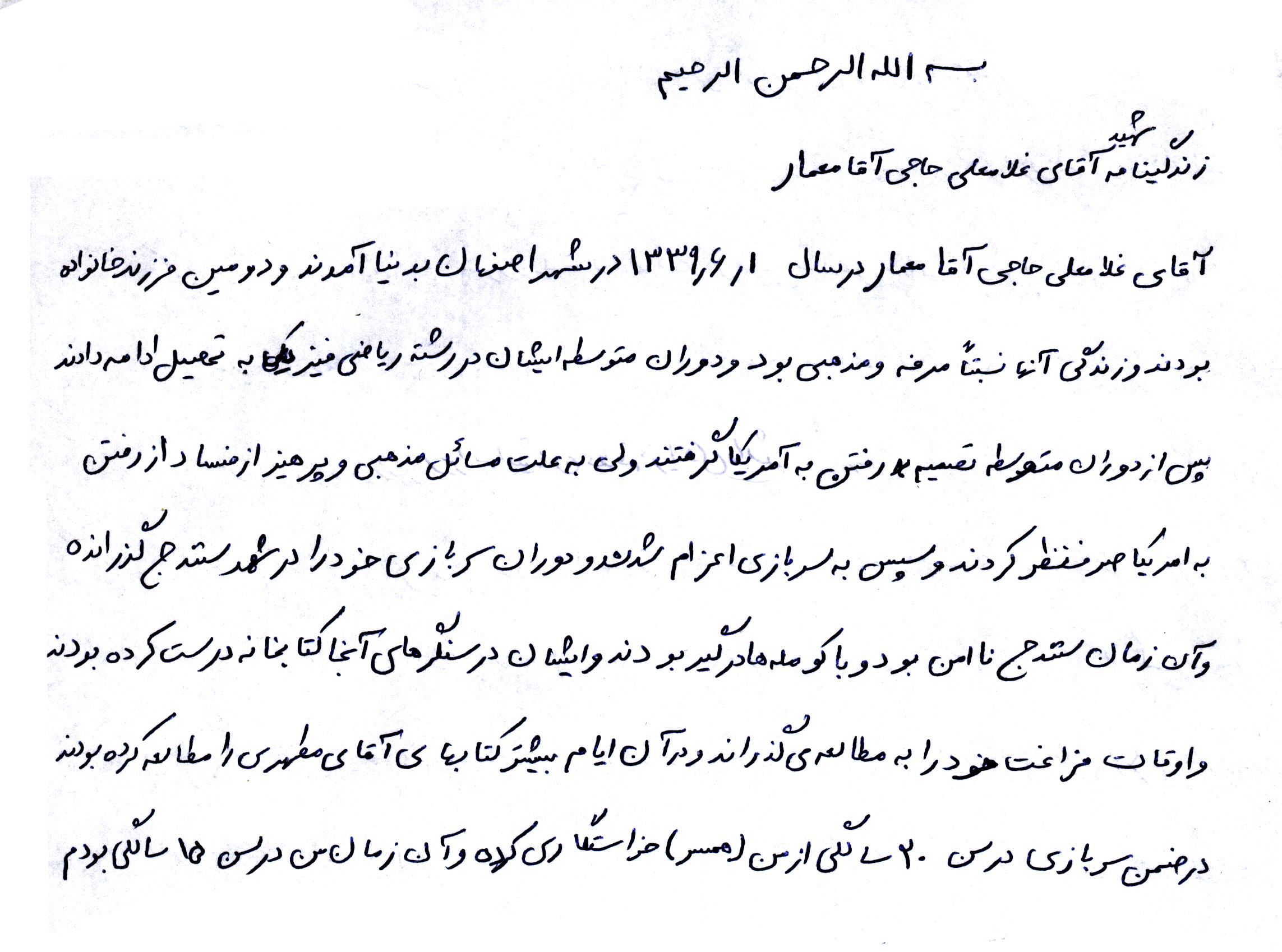 اسناد مرتبط با شهید غلامعلی حاجی آقامعمار
