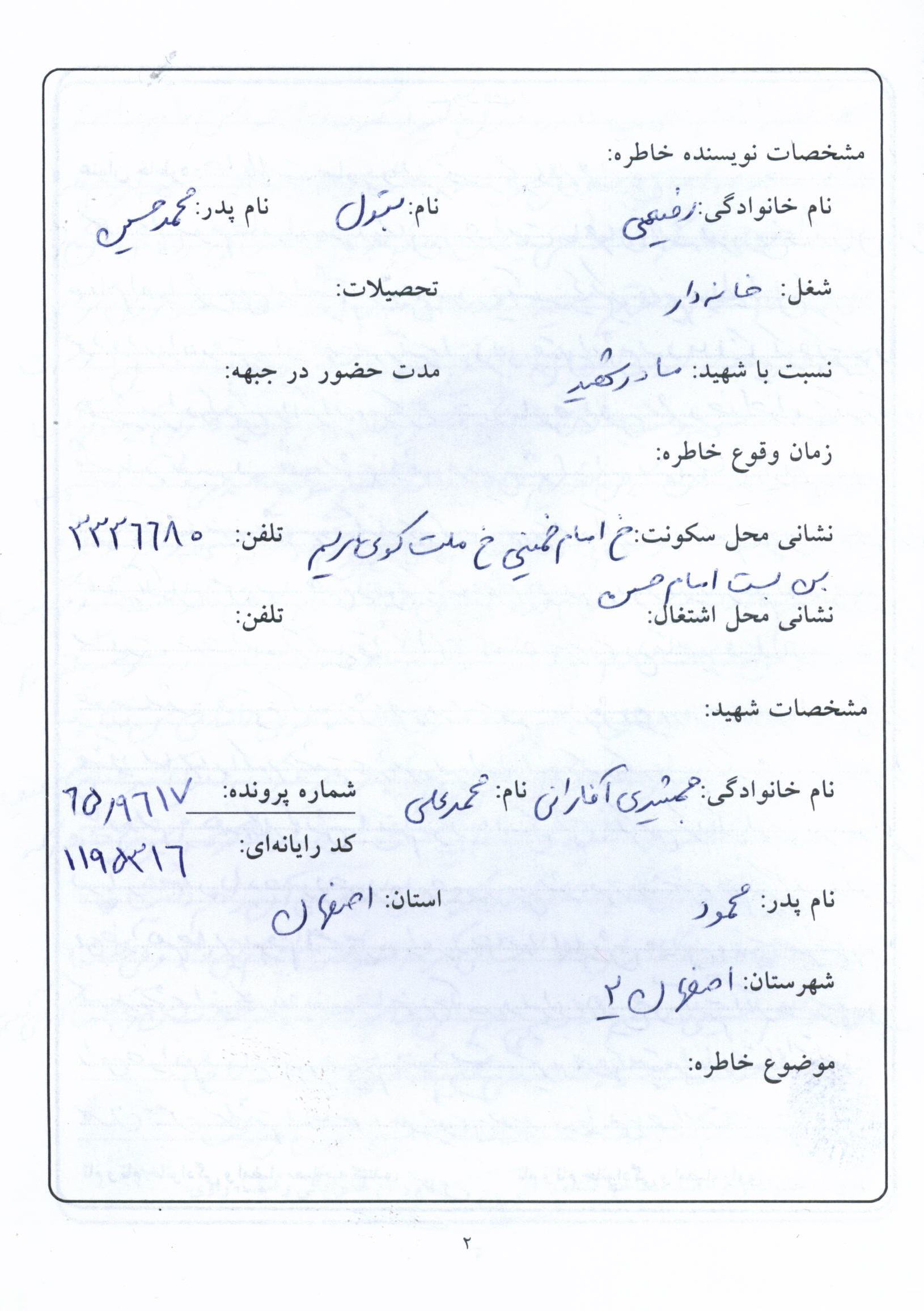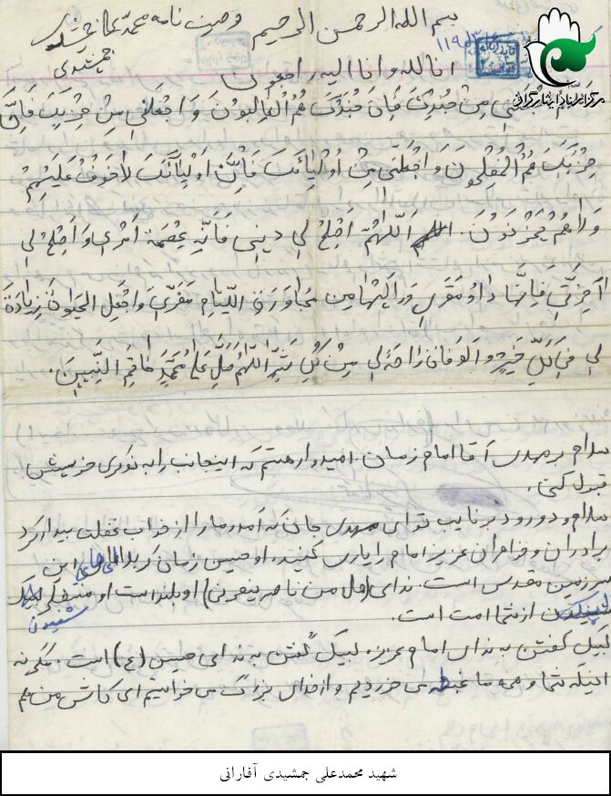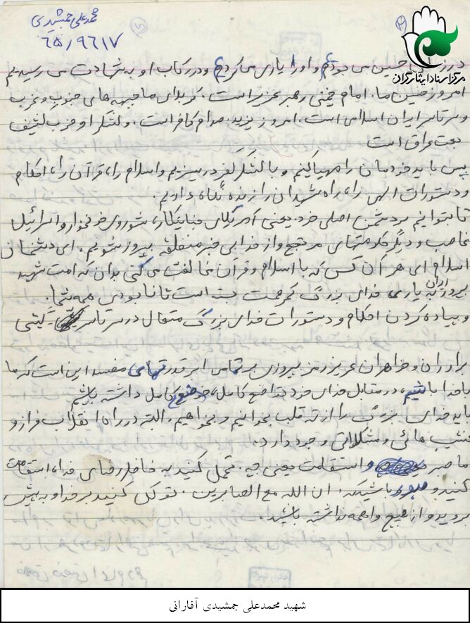 اسناد مرتبط با شهید محمدعلی جمشیدی آفارانی