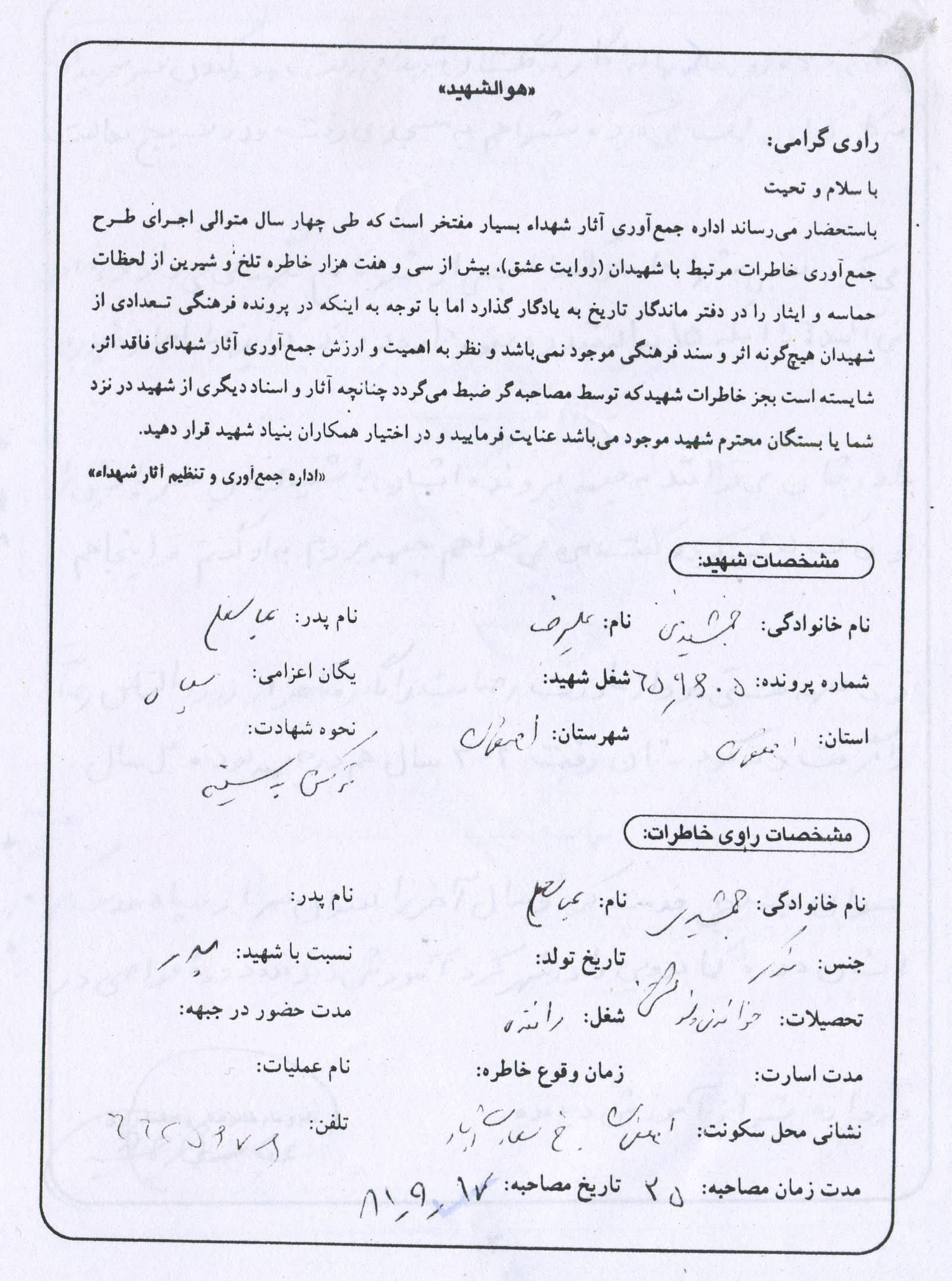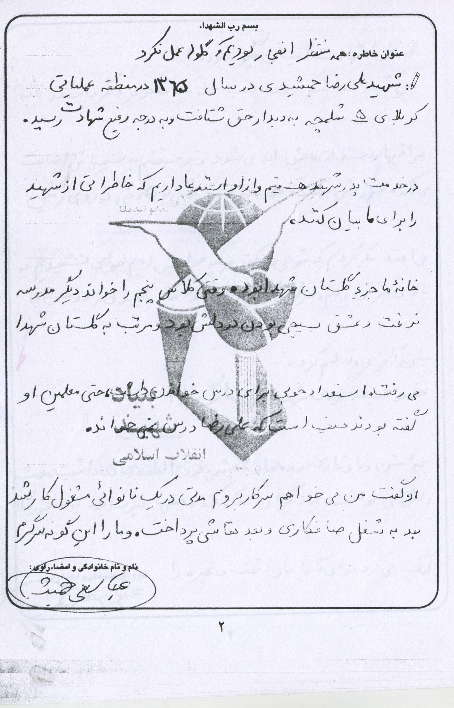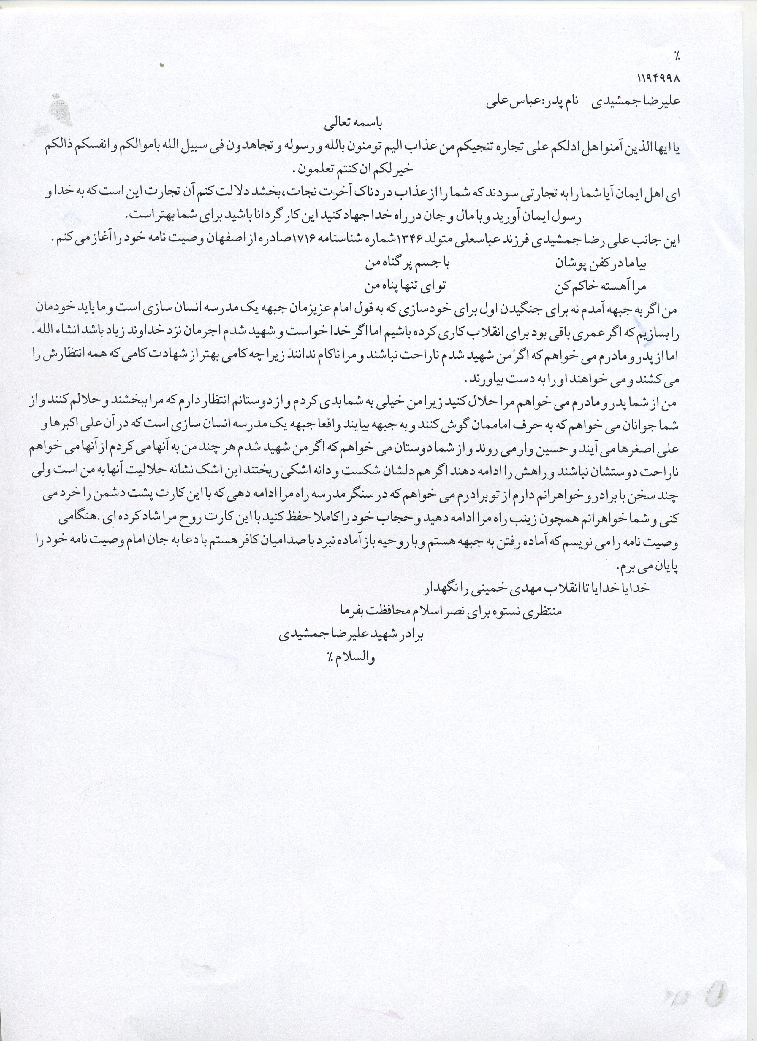 اسناد مرتبط با شهید علی رضا جمشیدی