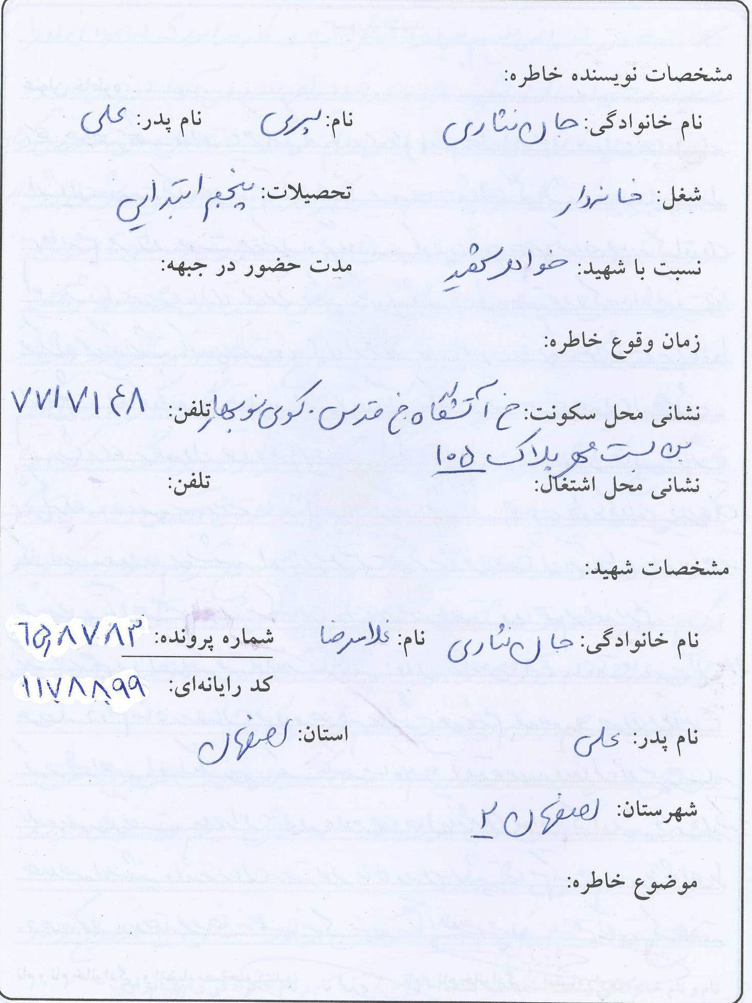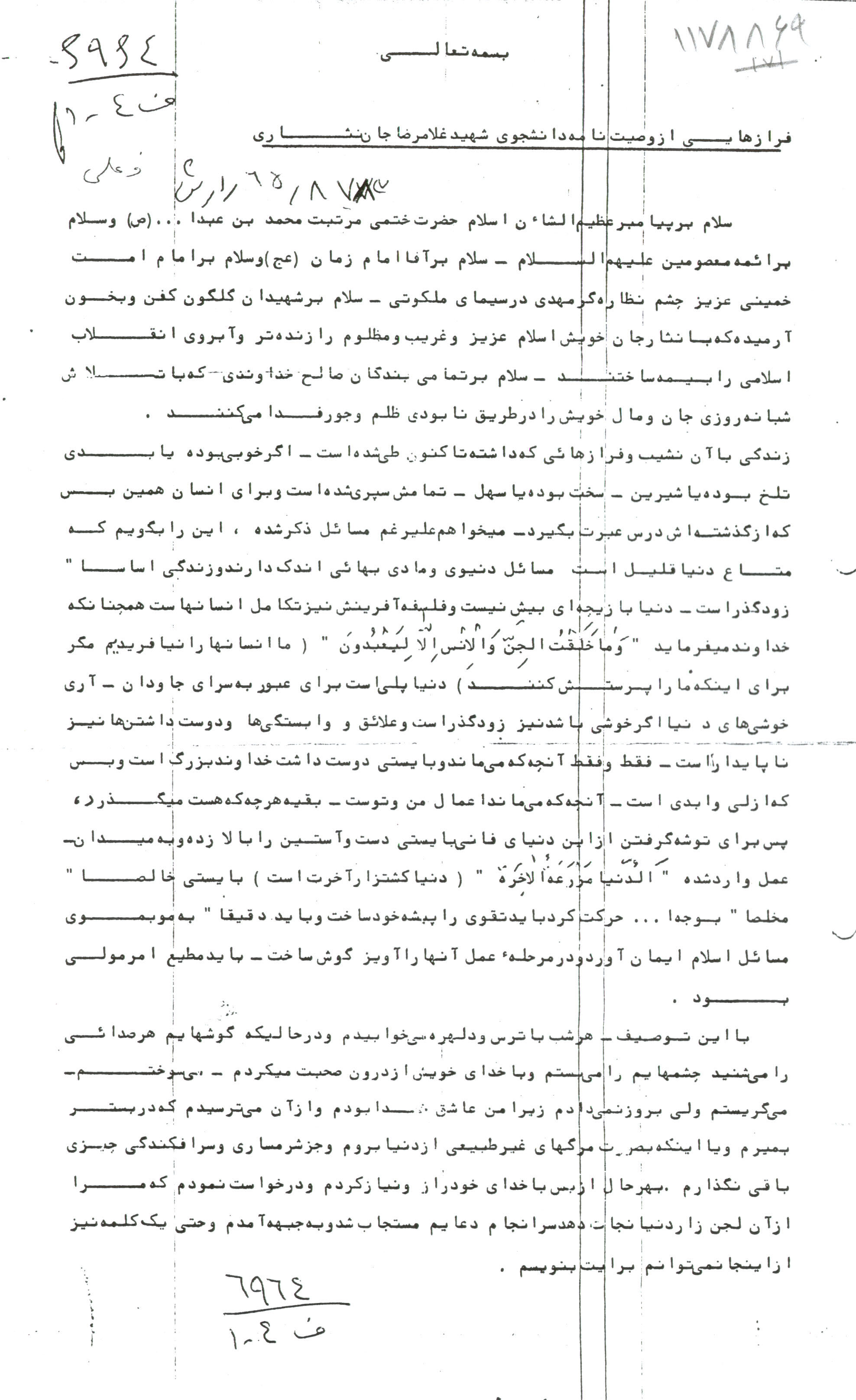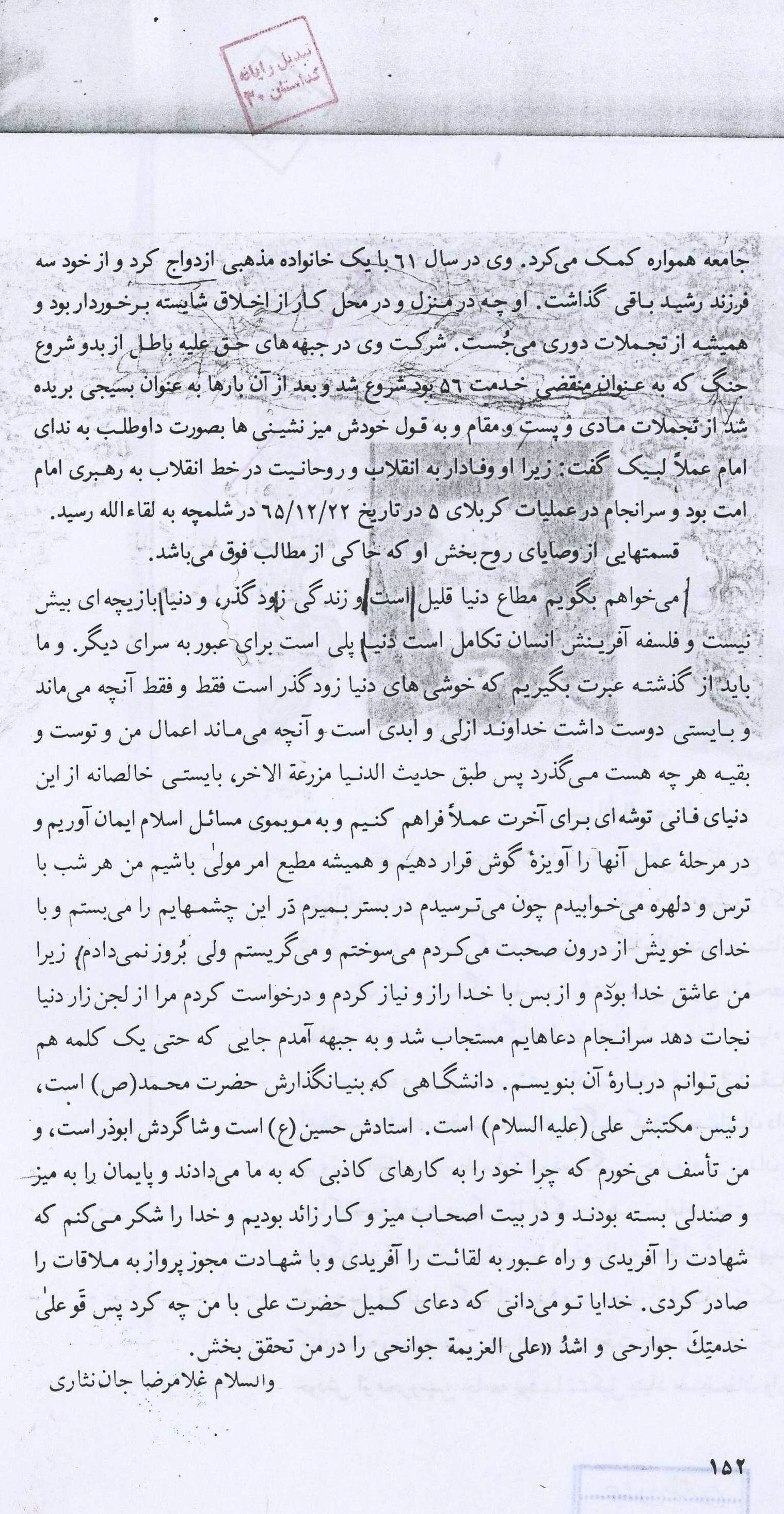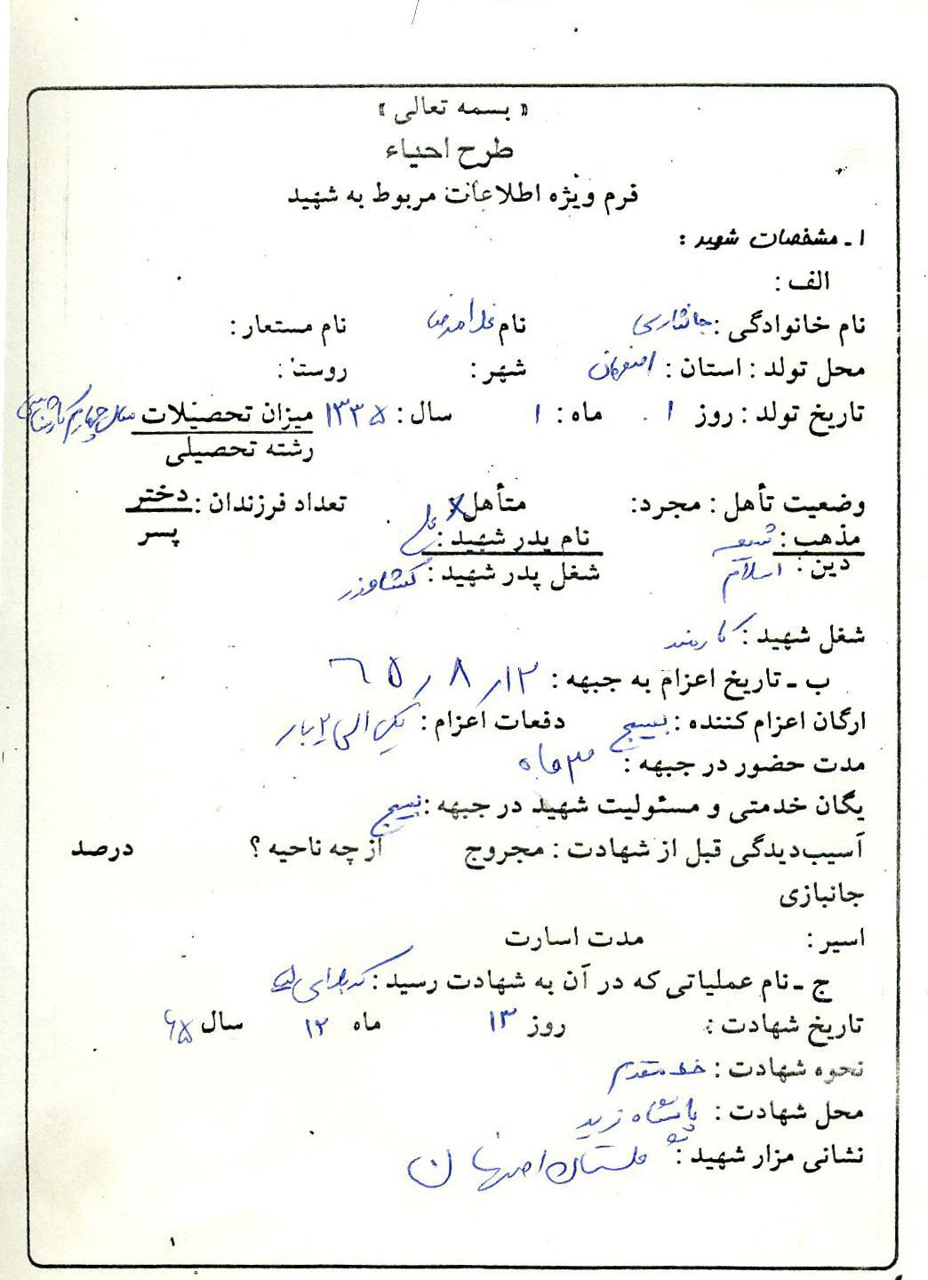 اسناد مرتبط با شهید غلامرضا جان نثاری لادانی