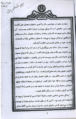 اسناد مرتبط با شهید مجید تصاعدیان