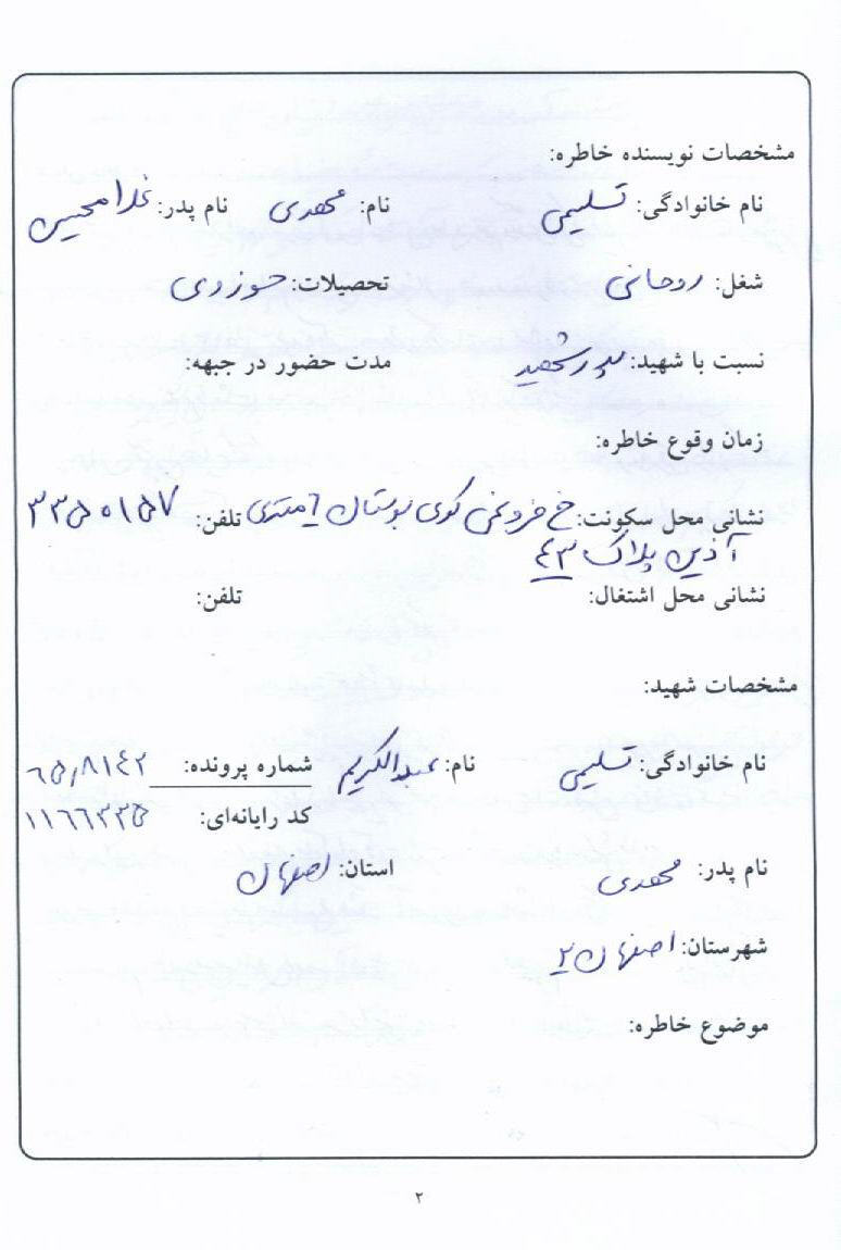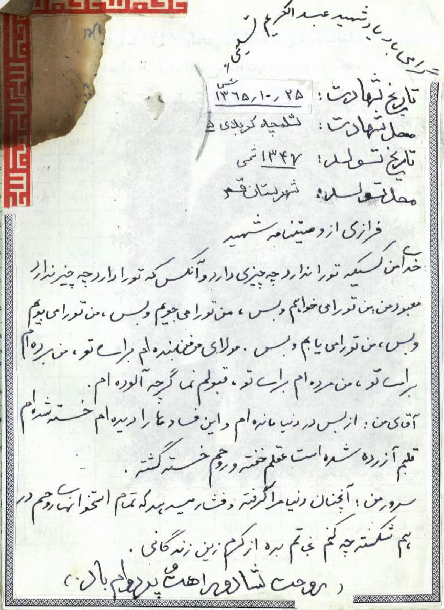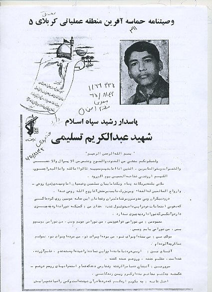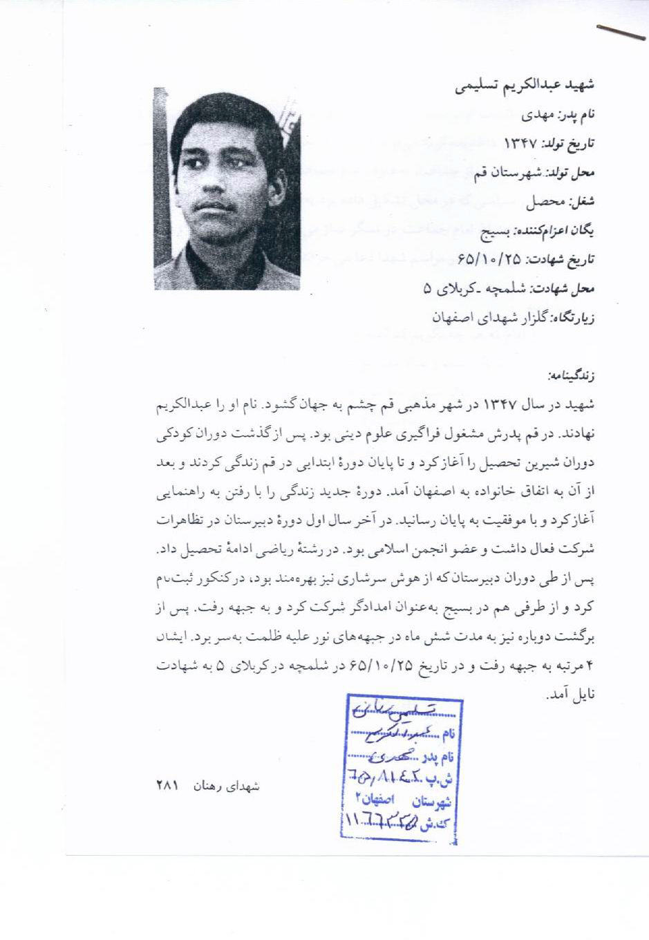 اسناد مرتبط با شهید عبدالکریم تسلیمی رنانی