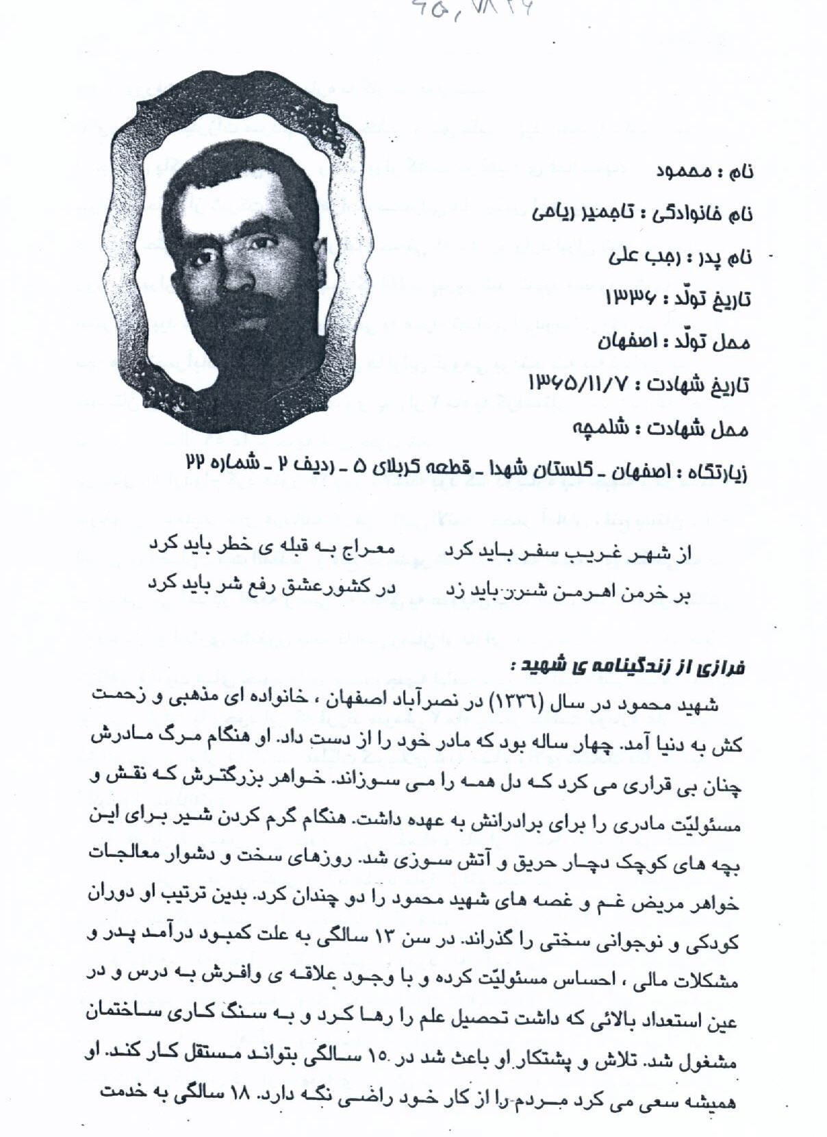 اسناد مرتبط با شهید محمود تاجمیرریاحی