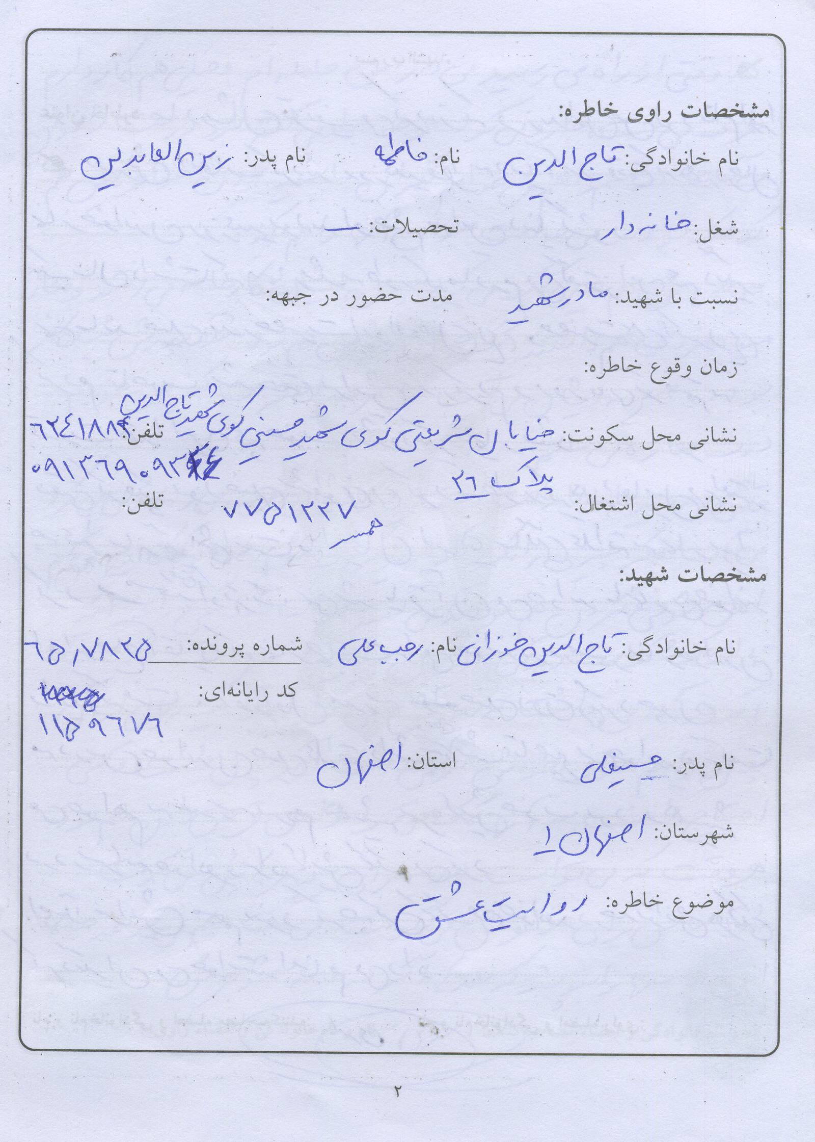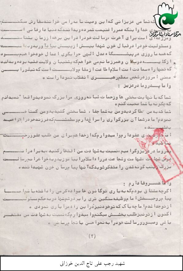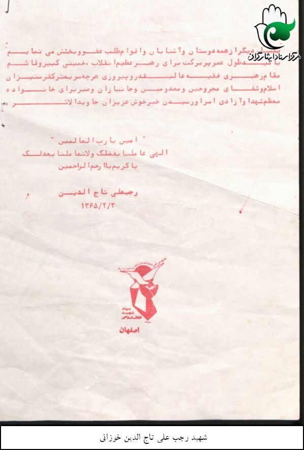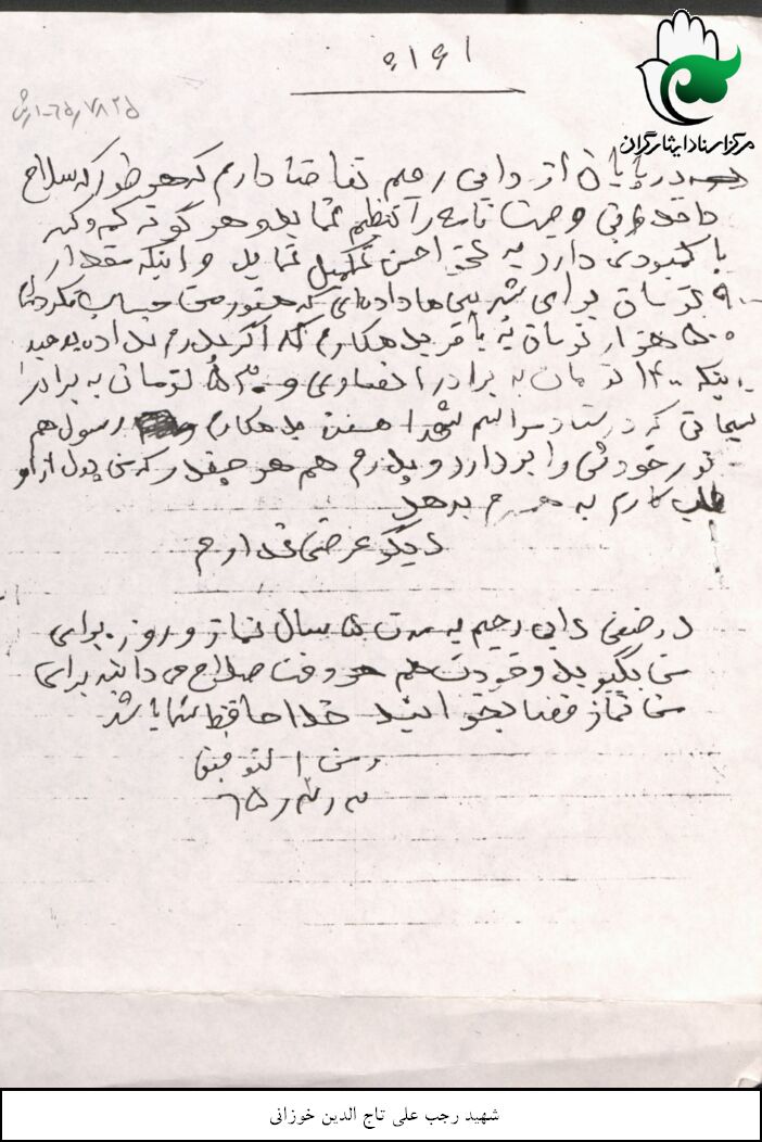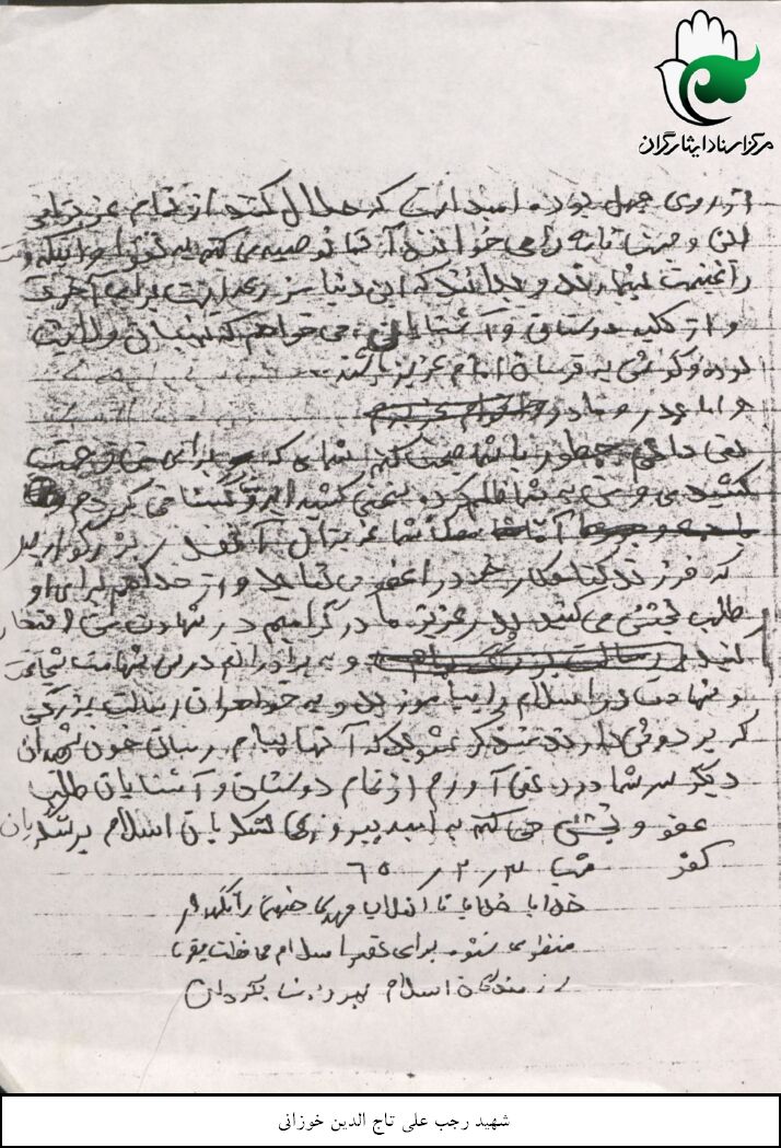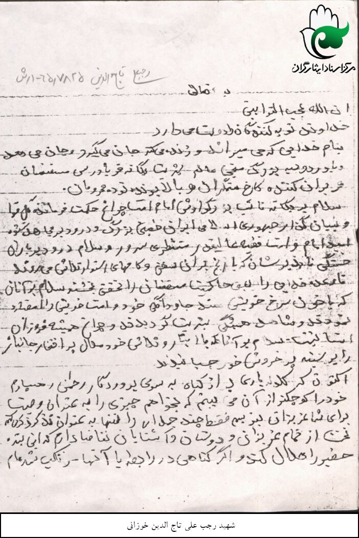 اسناد مرتبط با شهید رجب علی تاج الدین خوزانی