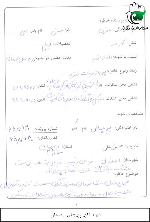 اسناد مرتبط با شهید اکبر پیرجمالی اردستانی