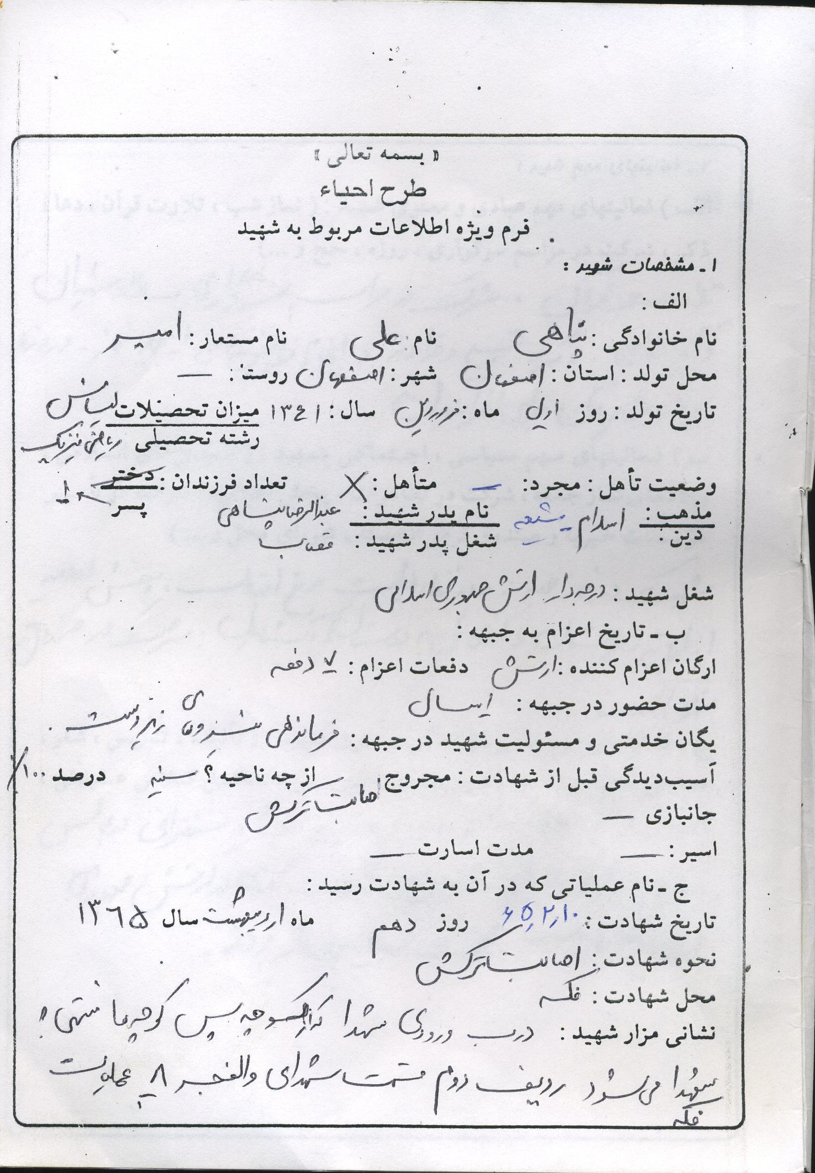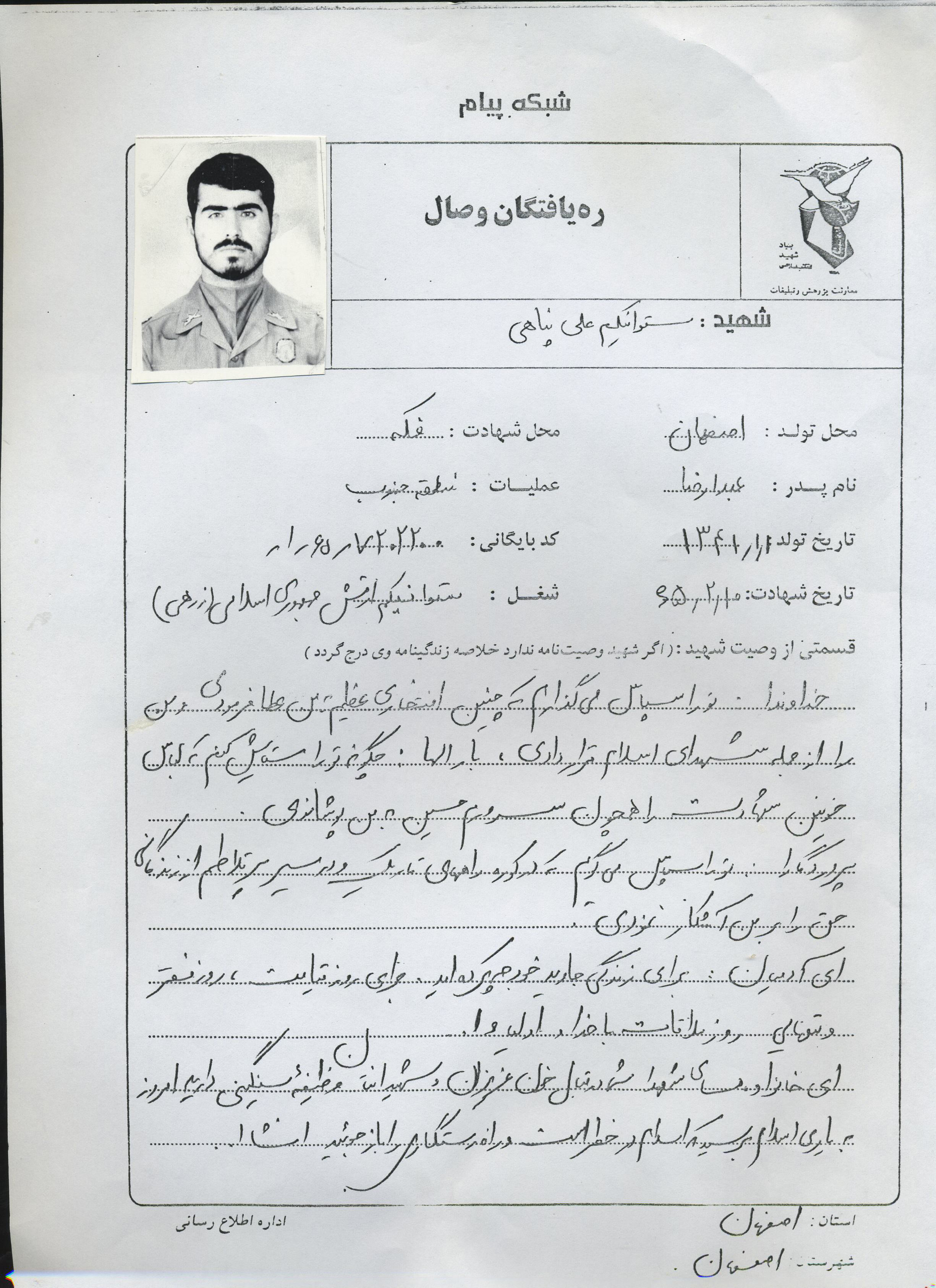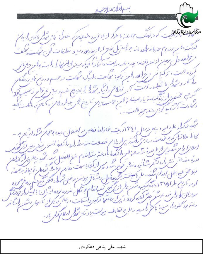 اسناد مرتبط با شهید علی پناهی دهکردی