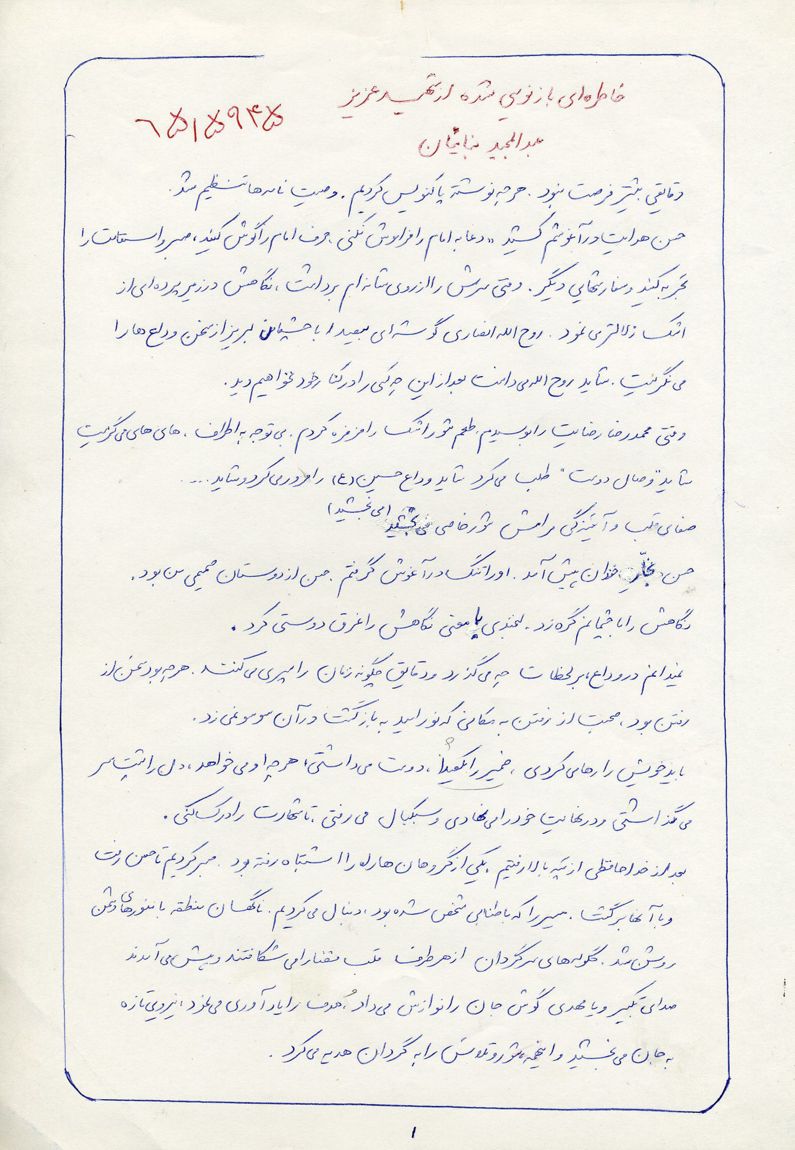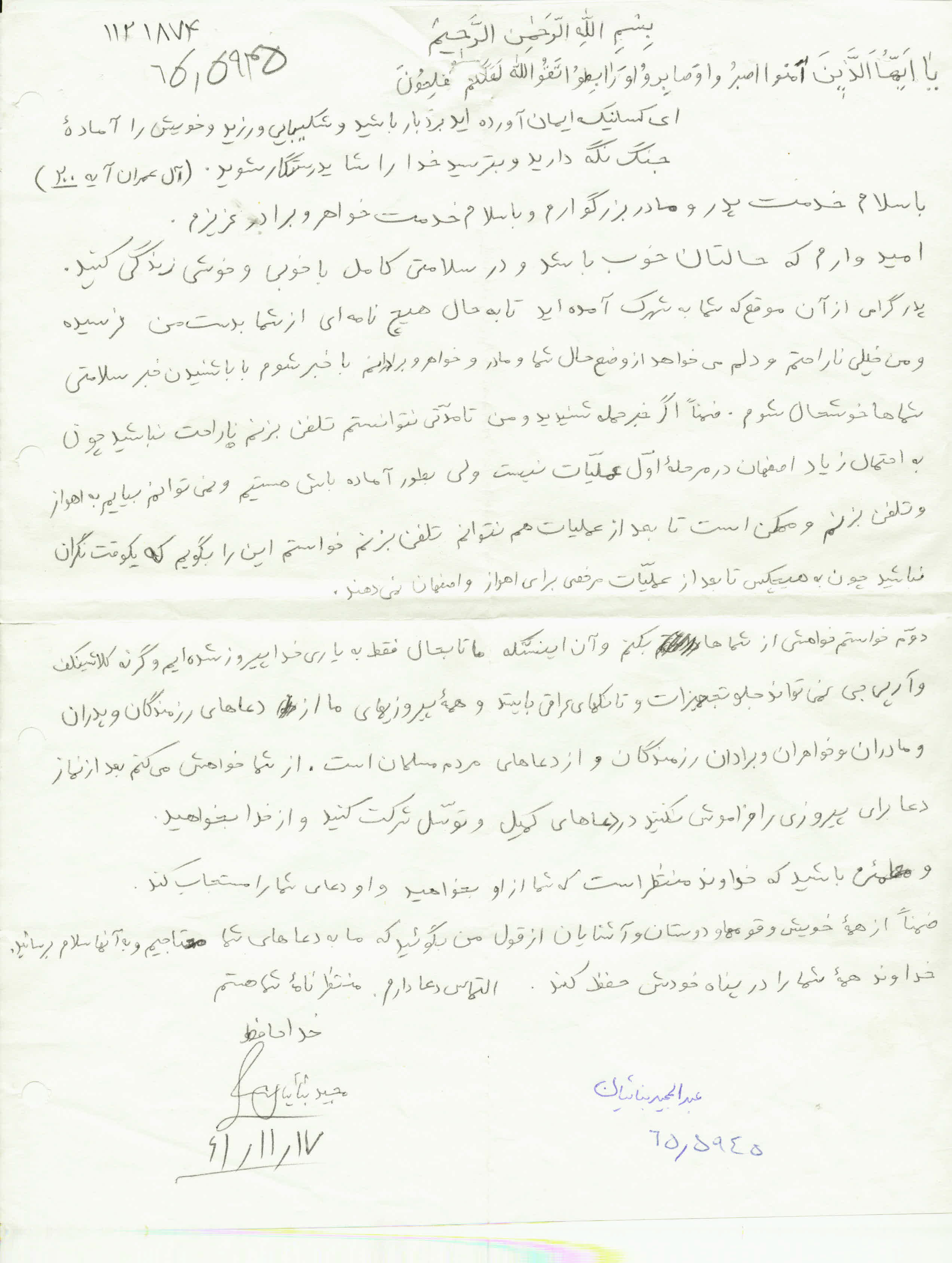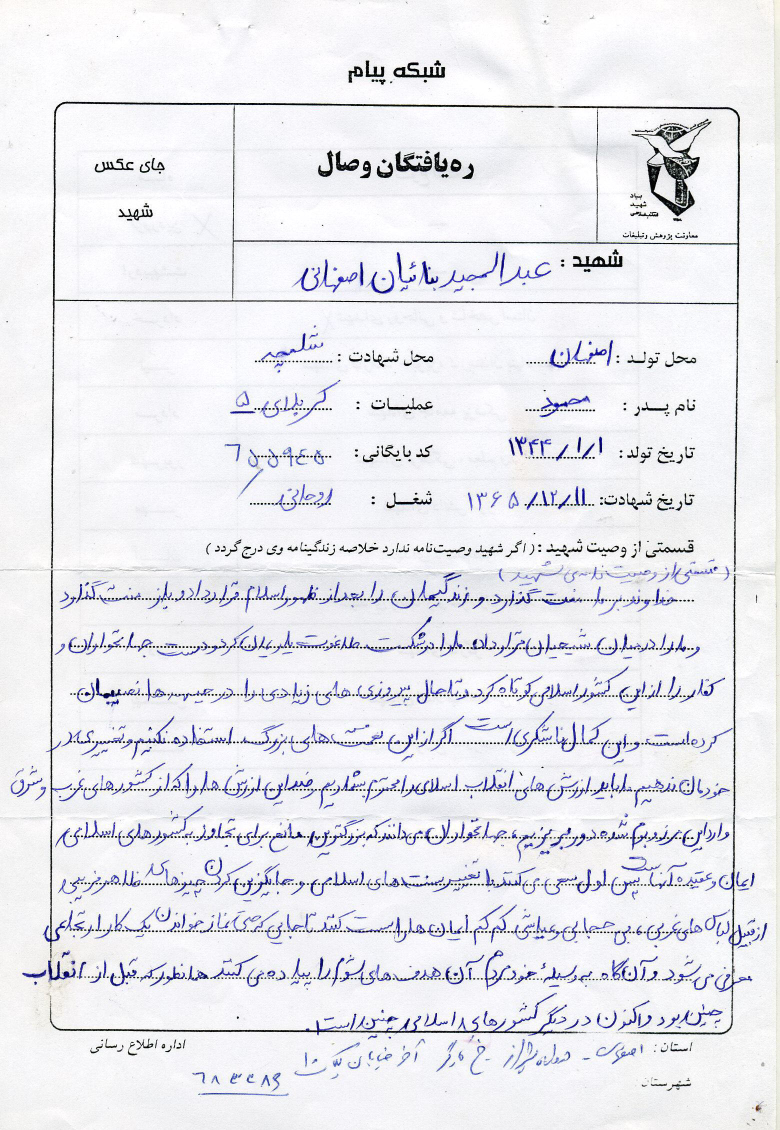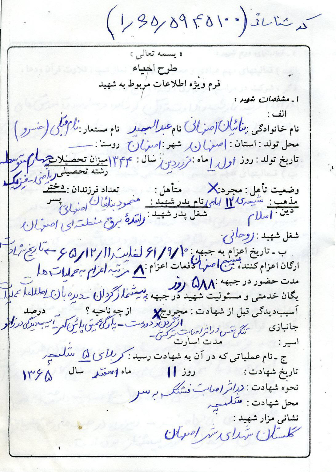 اسناد مرتبط با شهید عبدالمجید بنائیان اصفهانی