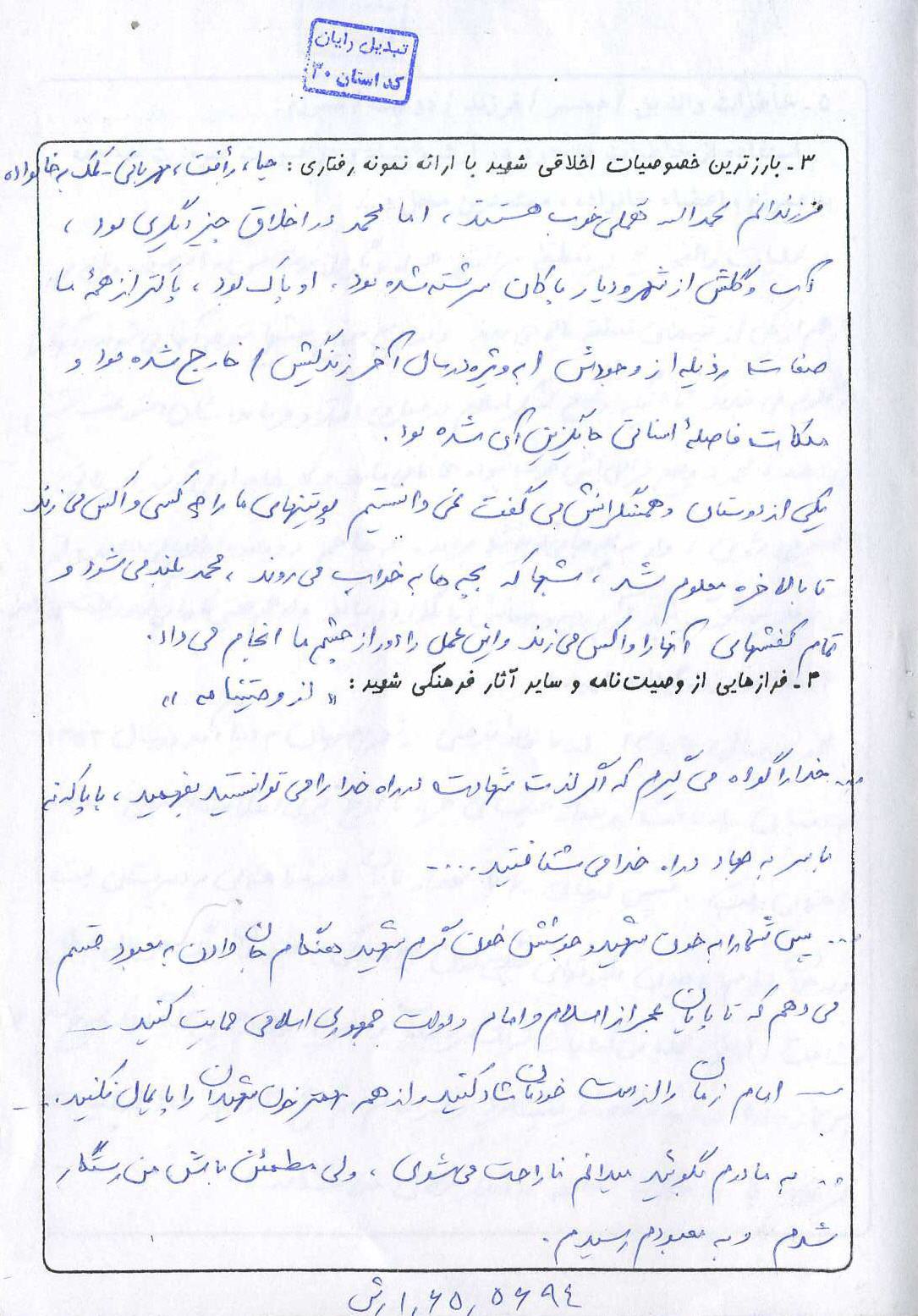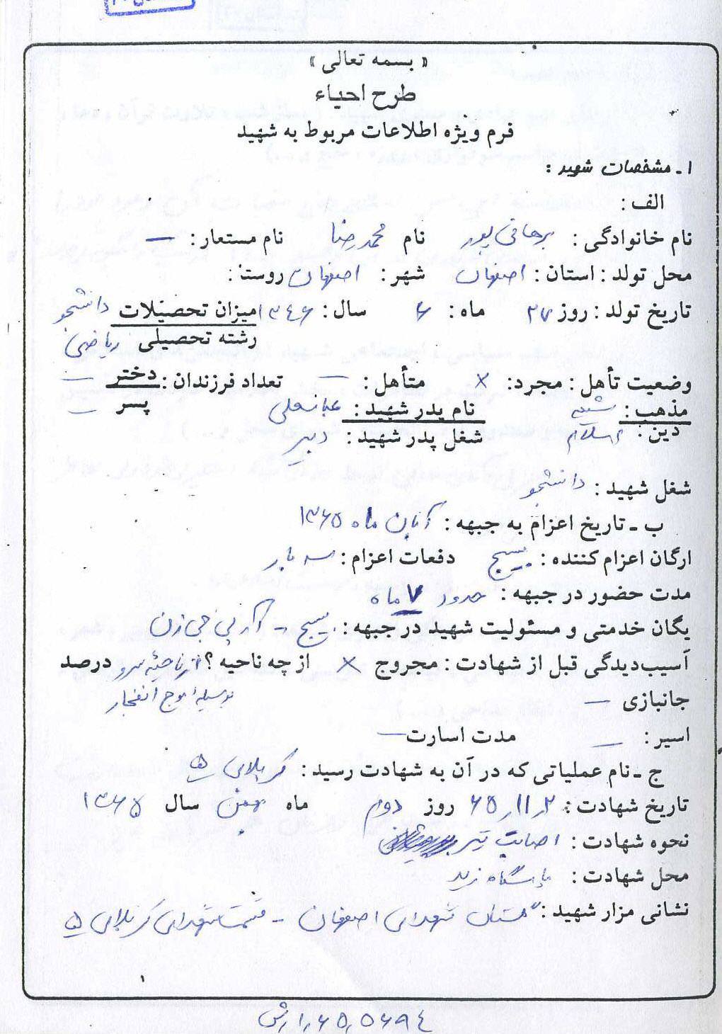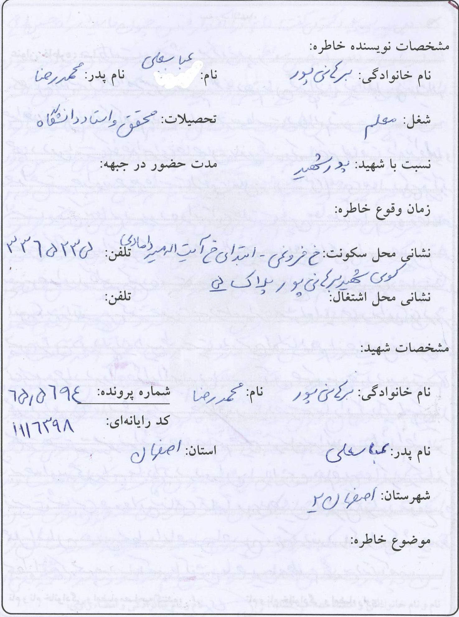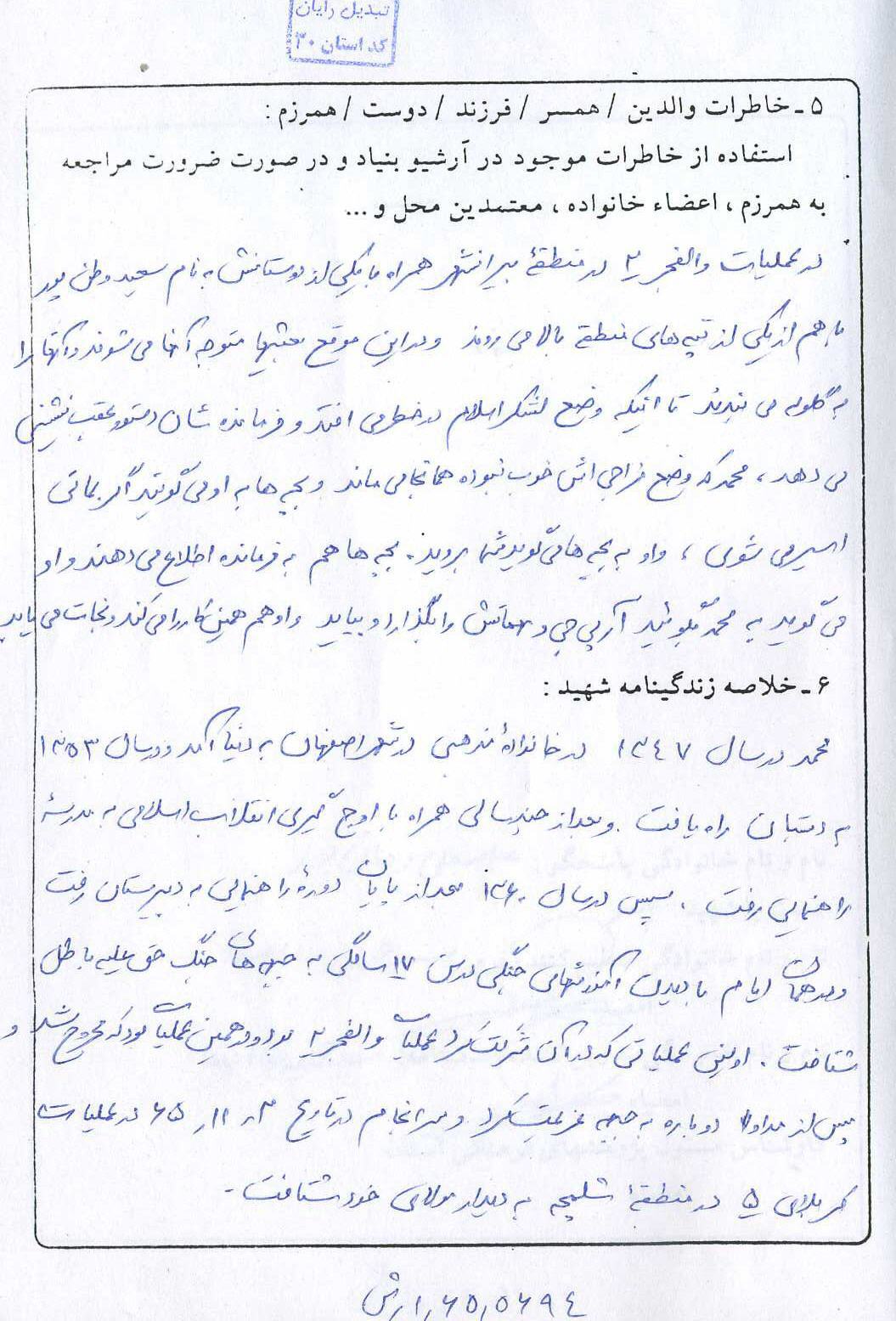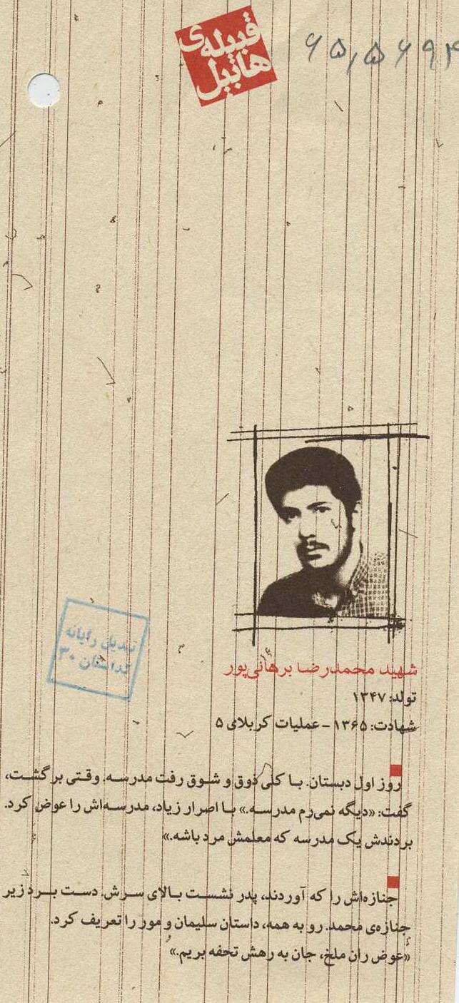 اسناد مرتبط با شهید محمدرضا برهانی پور