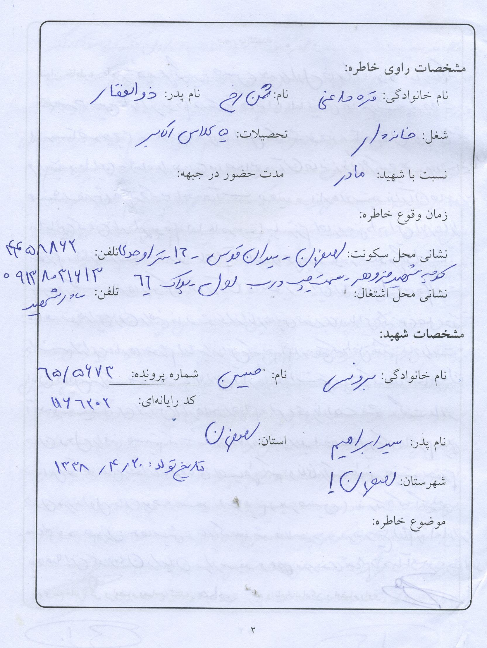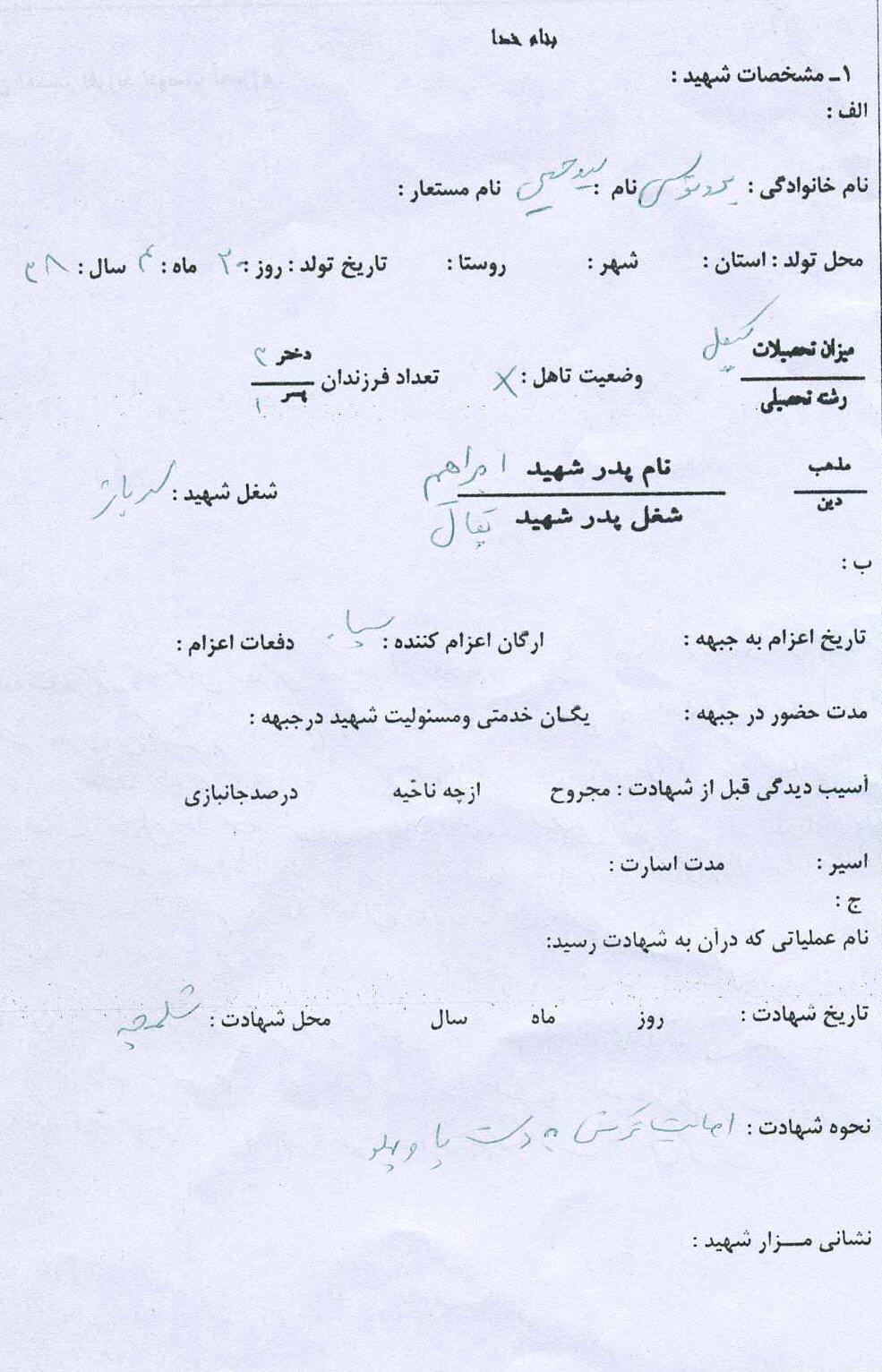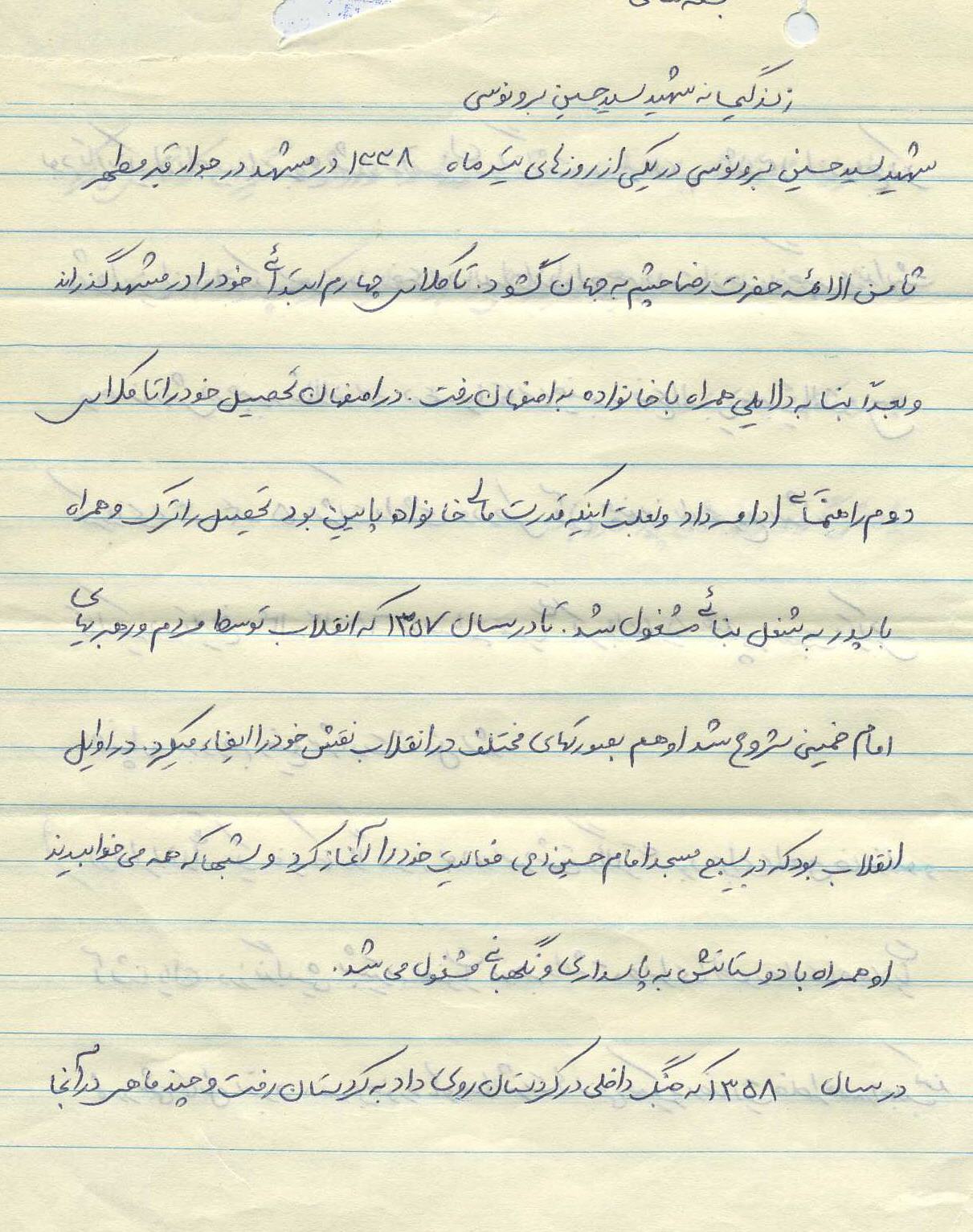 اسناد مرتبط با شهید سیدحسین برونوسی