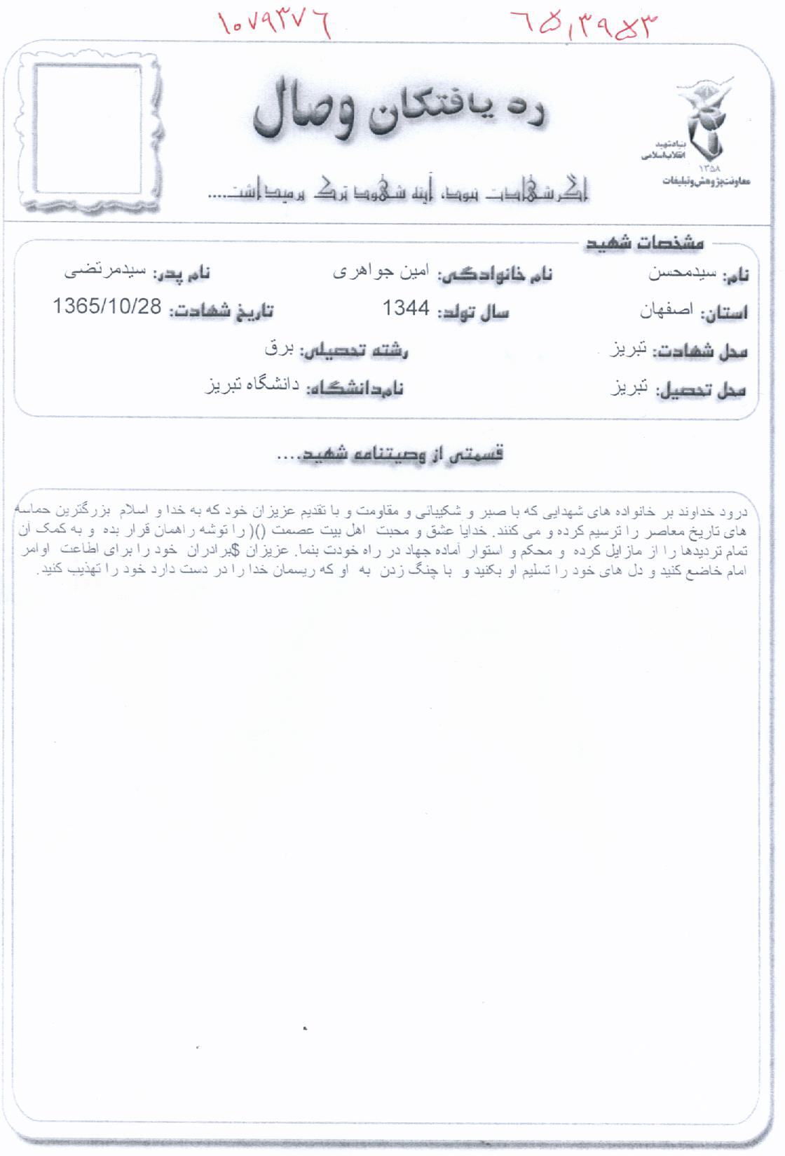 اسناد شناسه: 181262 2022-3-10 08:34 0 دیدگاه اسناد مرتبط با شهید سیدمحسن امین جواهری Download : 1698411451.jpg Download : 843603166.jpg Download : 812485066.jpg Download : 2147415340.jpg Download : 1374085143.jpg Download : 650416187.jpg