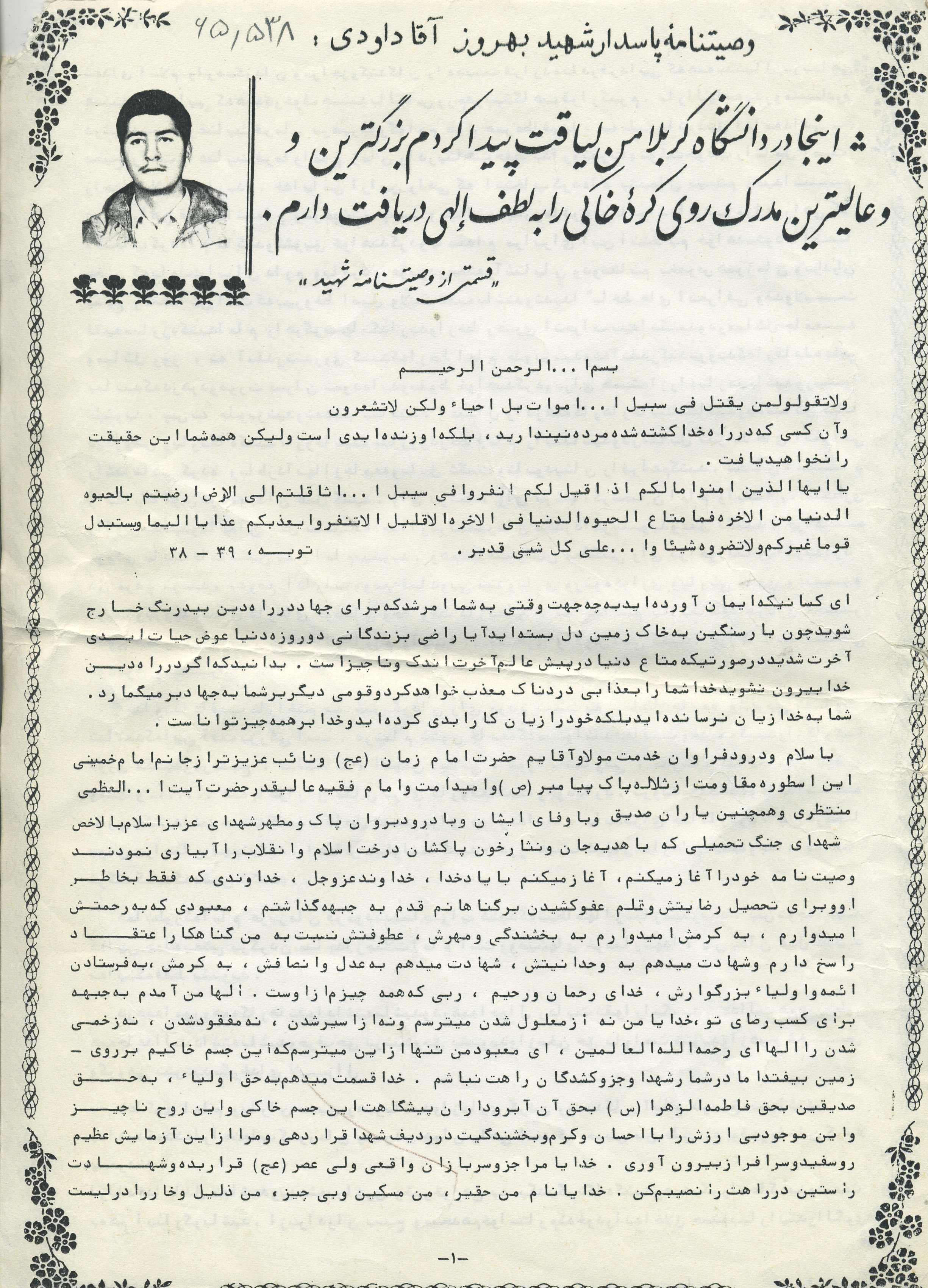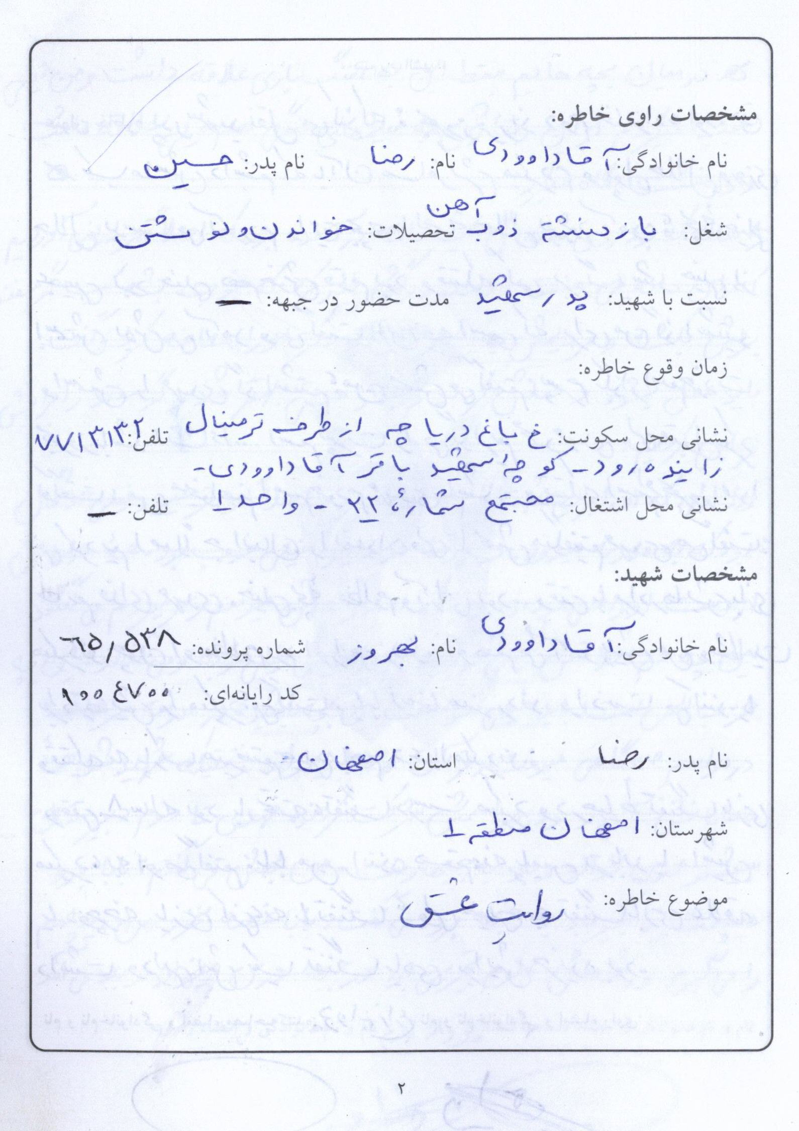 اسناد مرتبط با شهید بهروز آقا داوود مارنانی