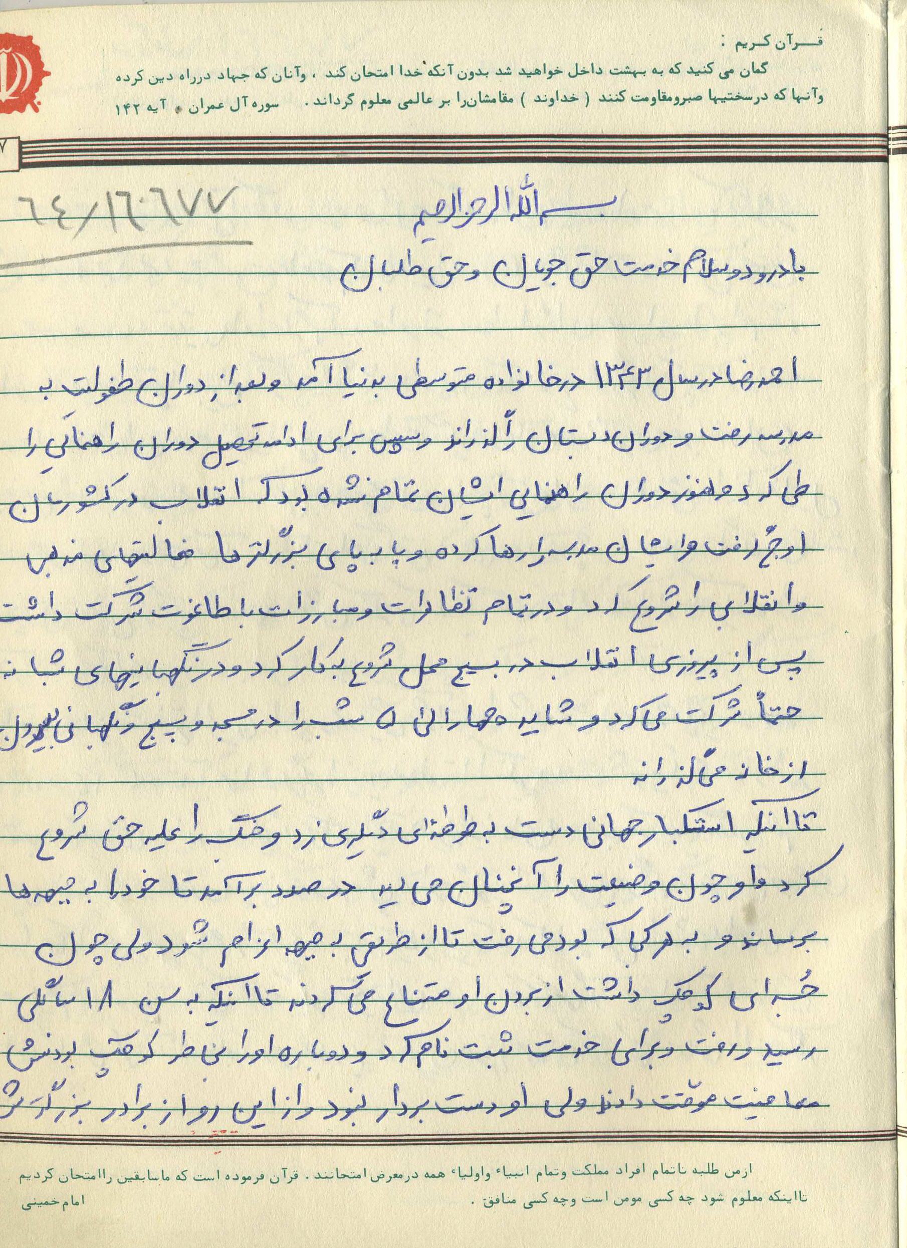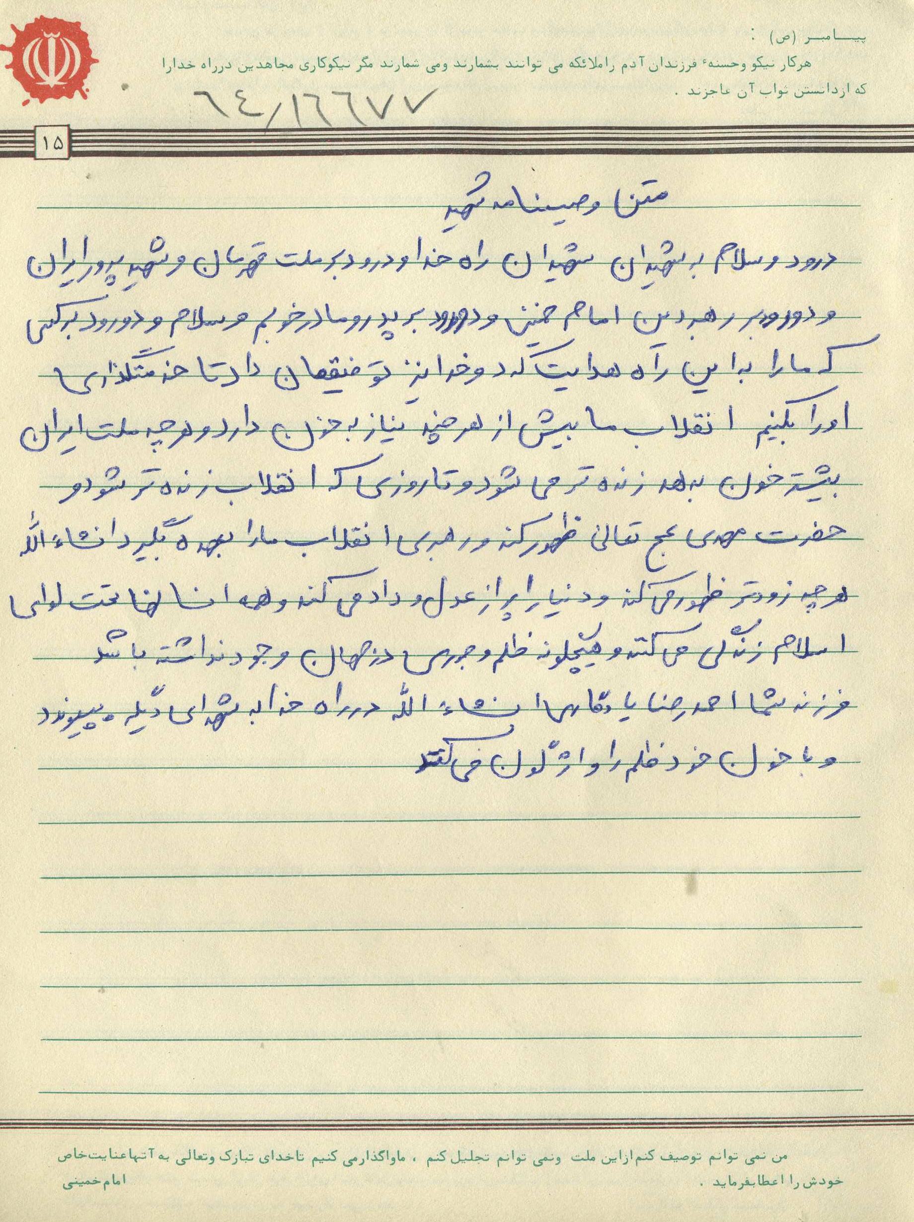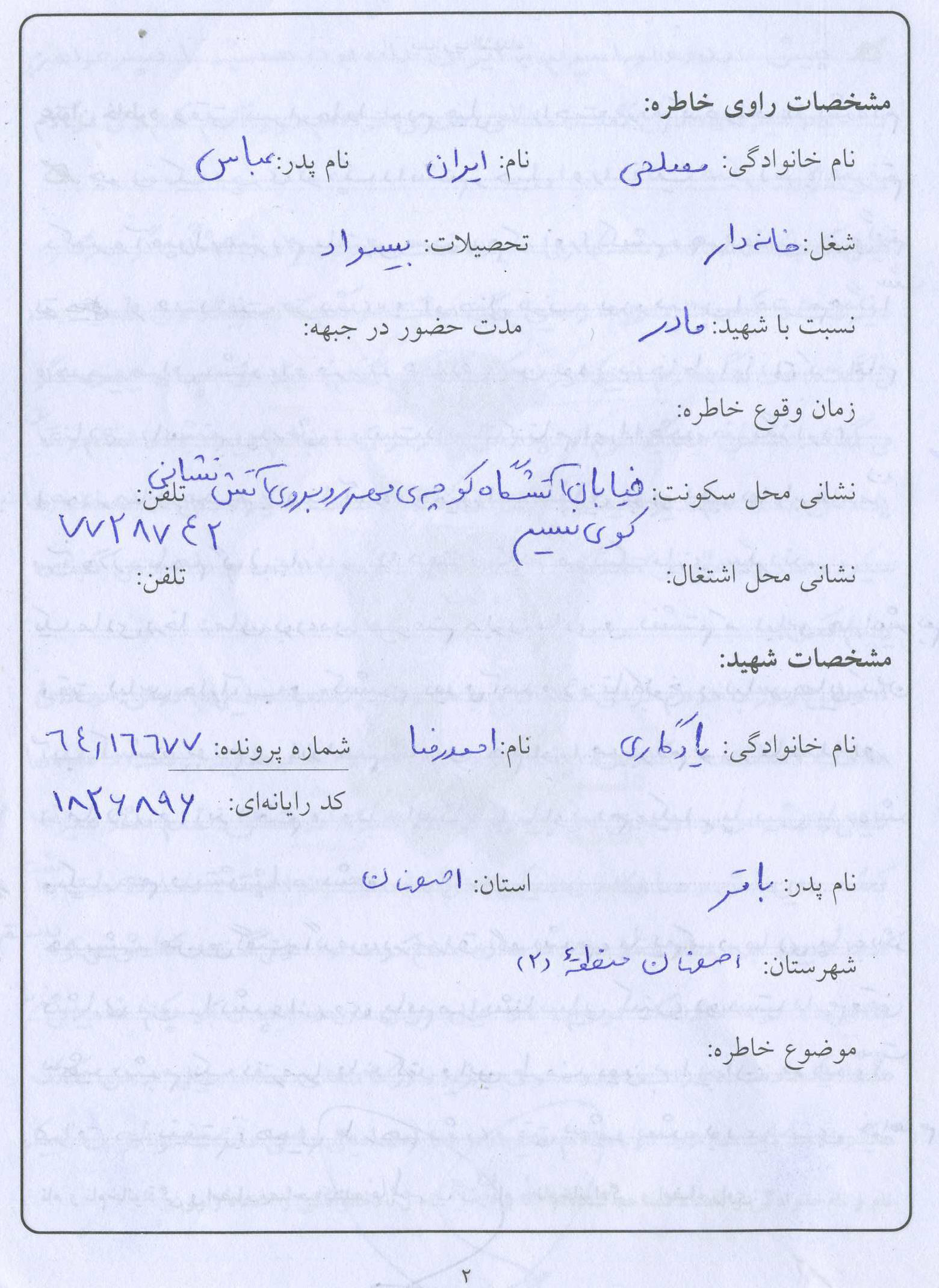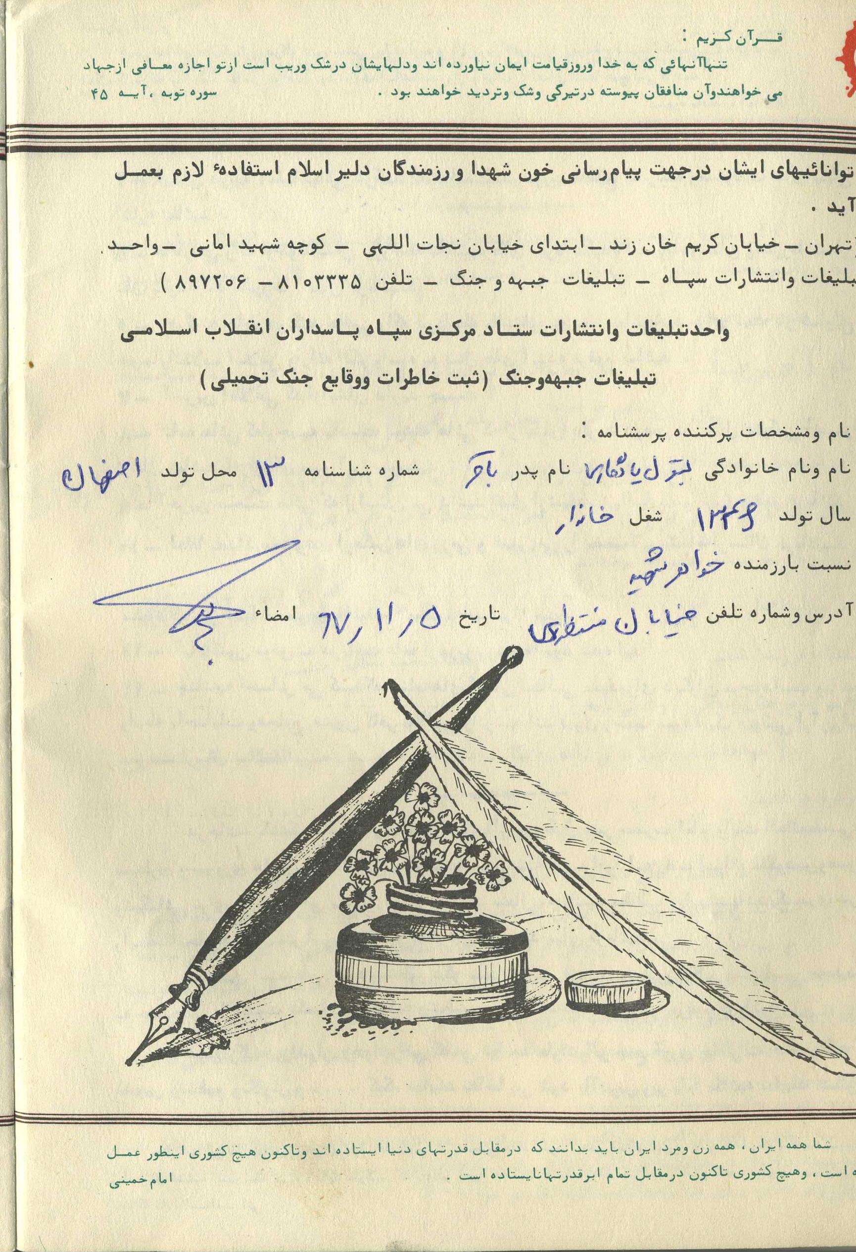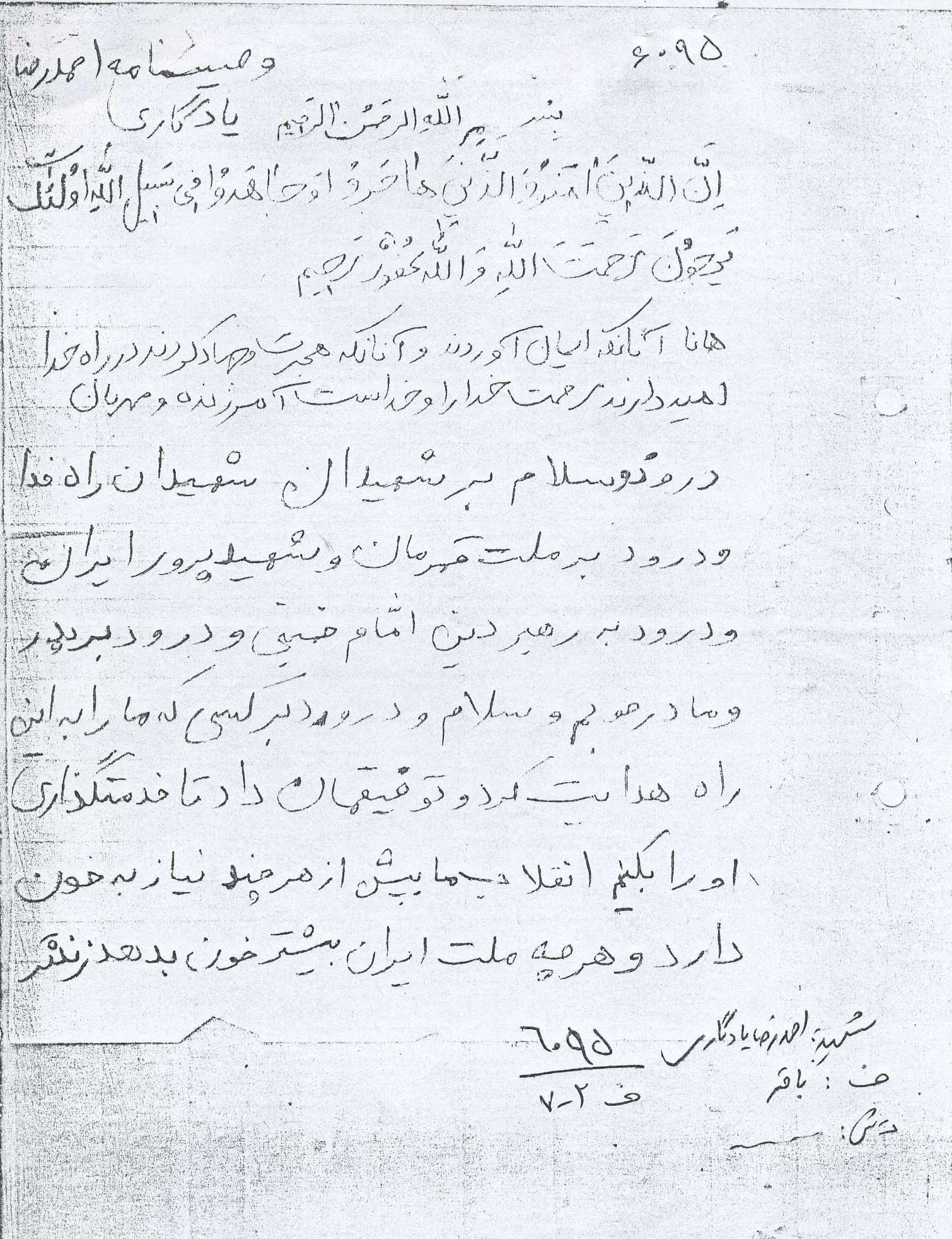 اسناد مرتبط با شهید احمدرضا یادگاری بهارانچی