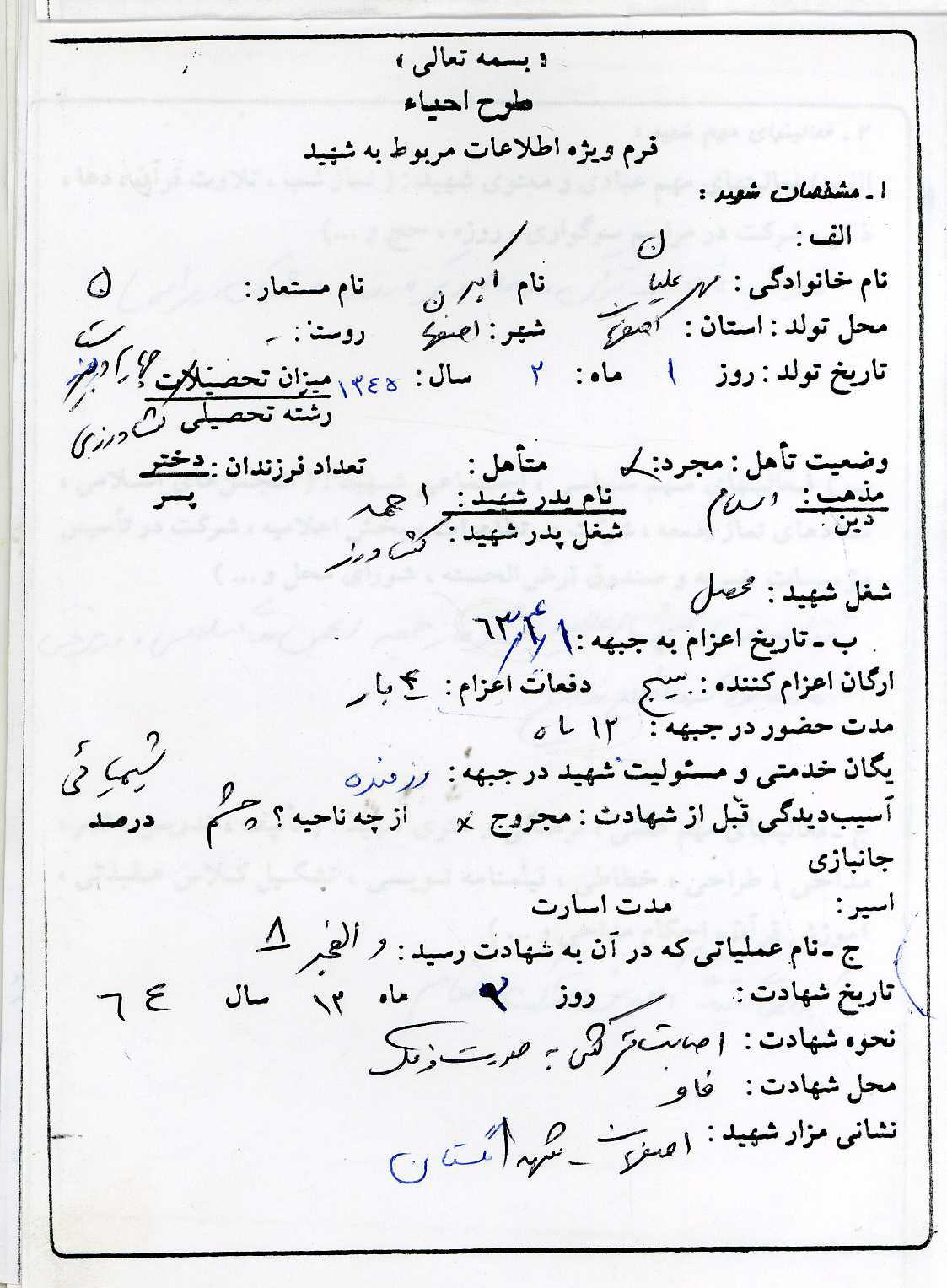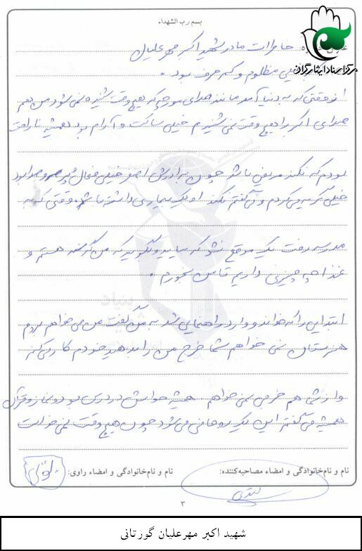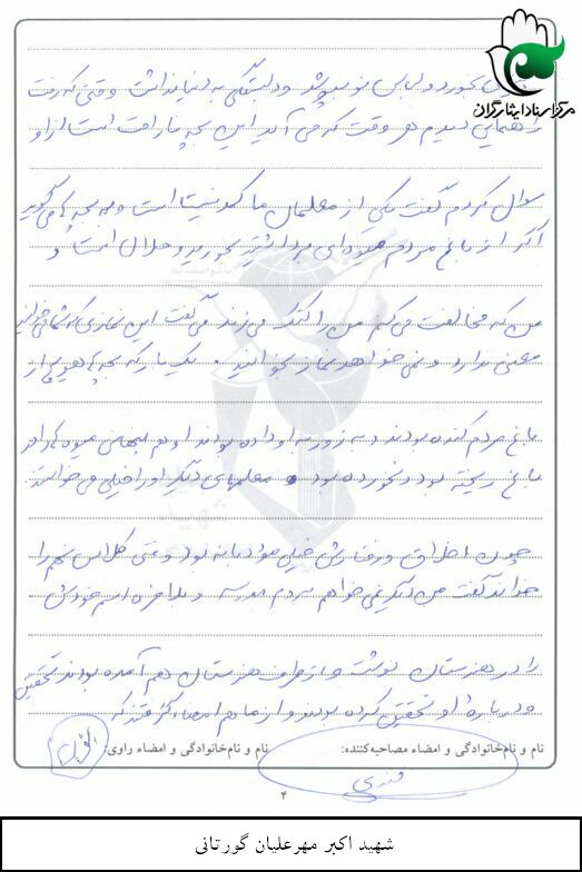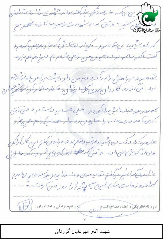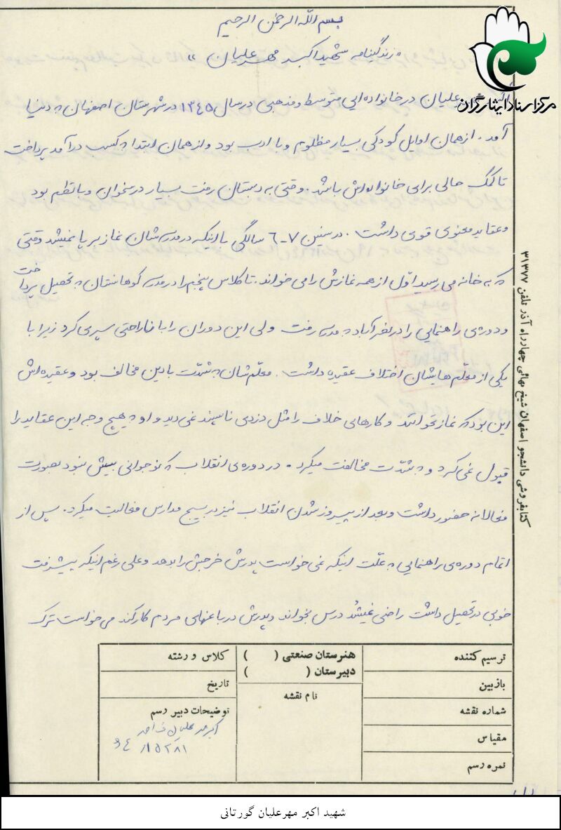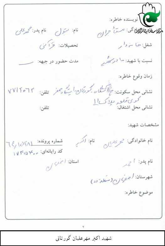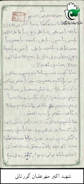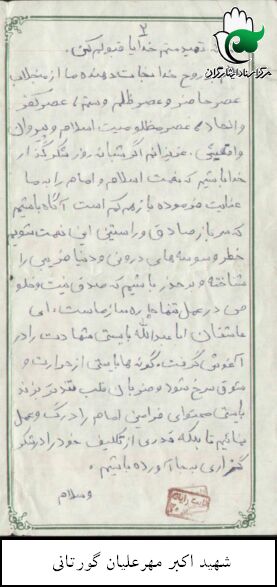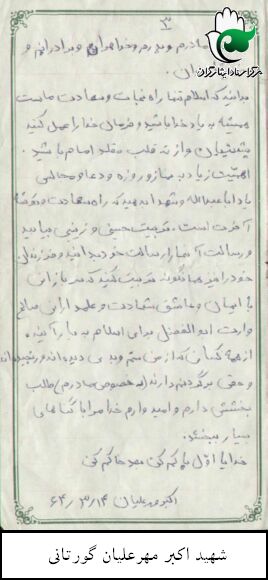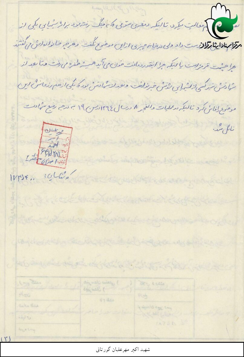 اسناد مرتبط با شهید اکبر مهرعلیان گورتانی