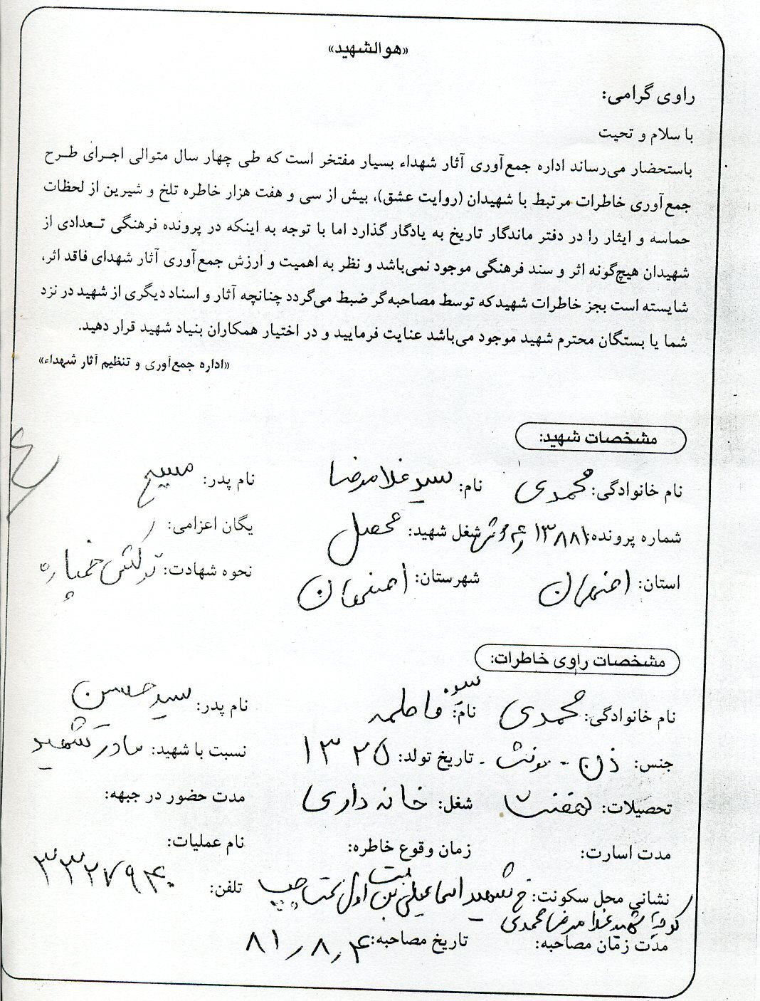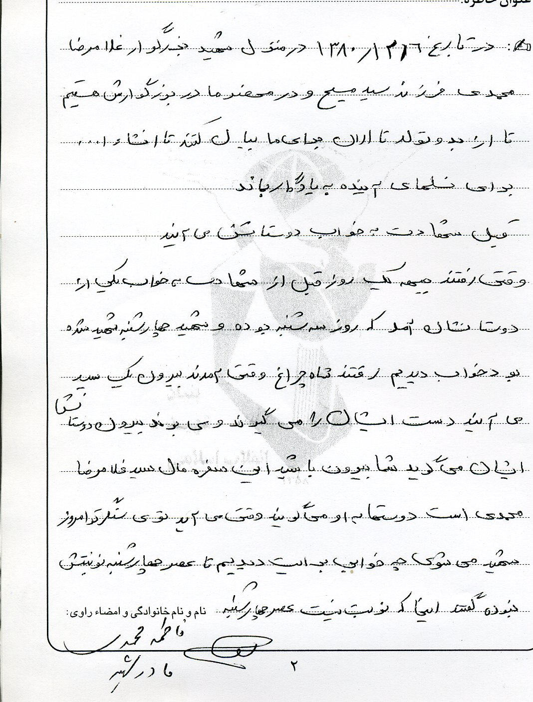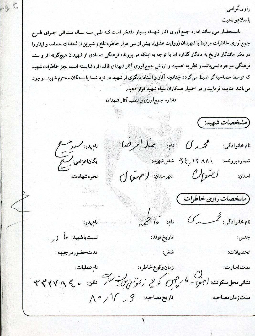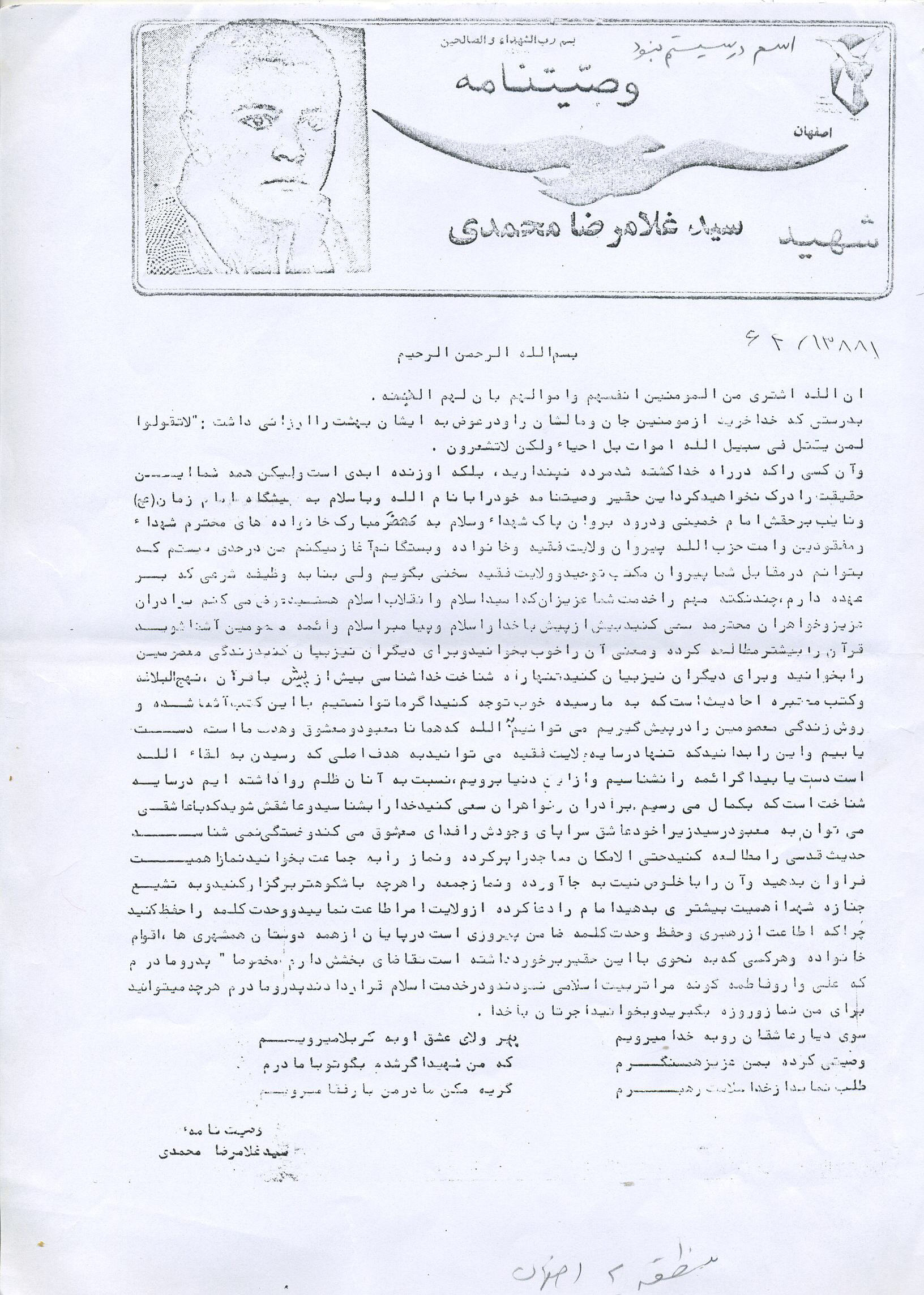 اسناد مرتبط با شهید سیدغلامرضا محمدی شیخ شبانی