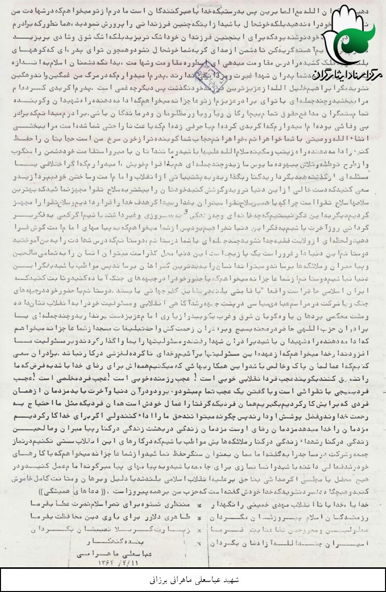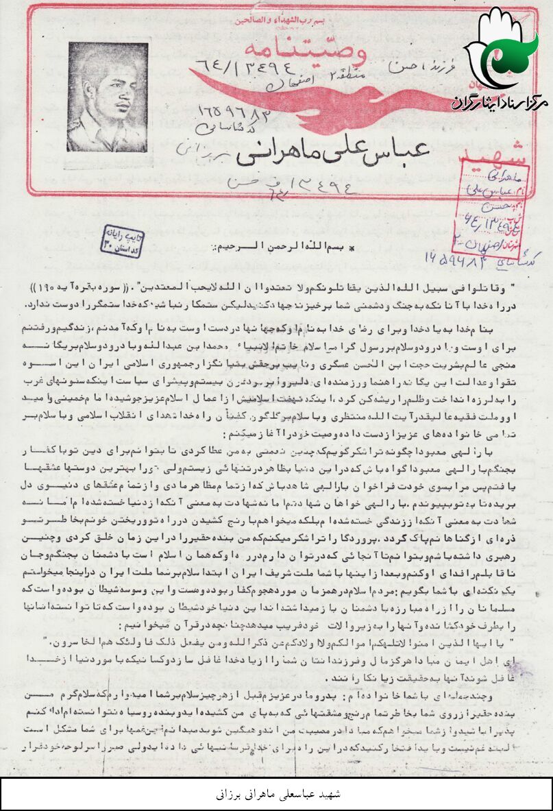 اسناد مرتبط با شهید عباسعلی ماهرانی برزانی