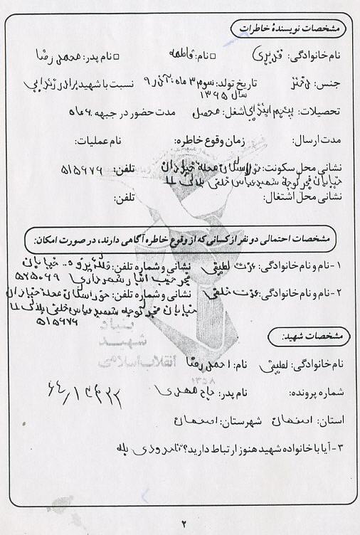اسناد مرتبط با شهید احمدرضا لطیفی