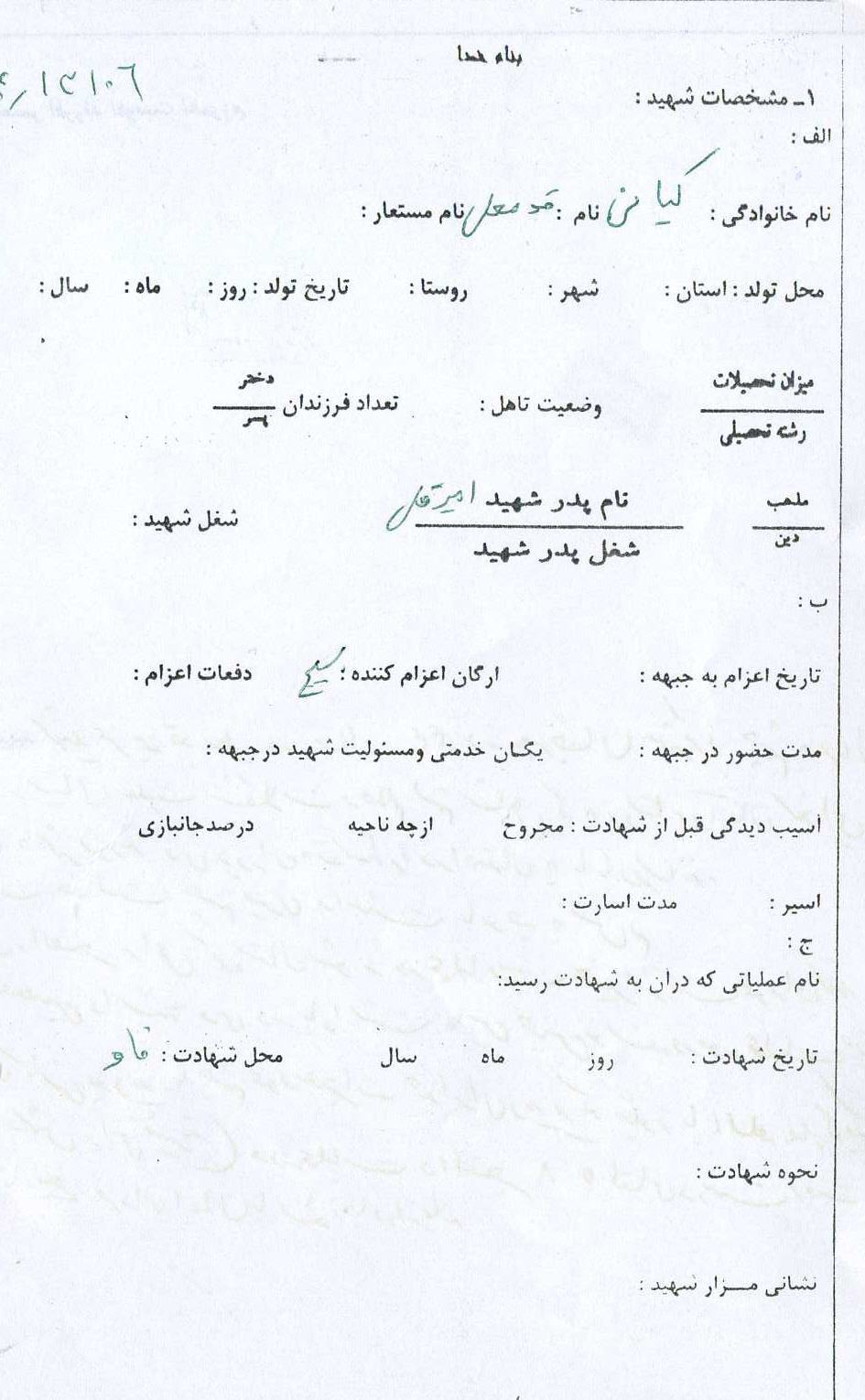 اسناد مرتبط با شهید قدمعلی کیانی هرچگانی