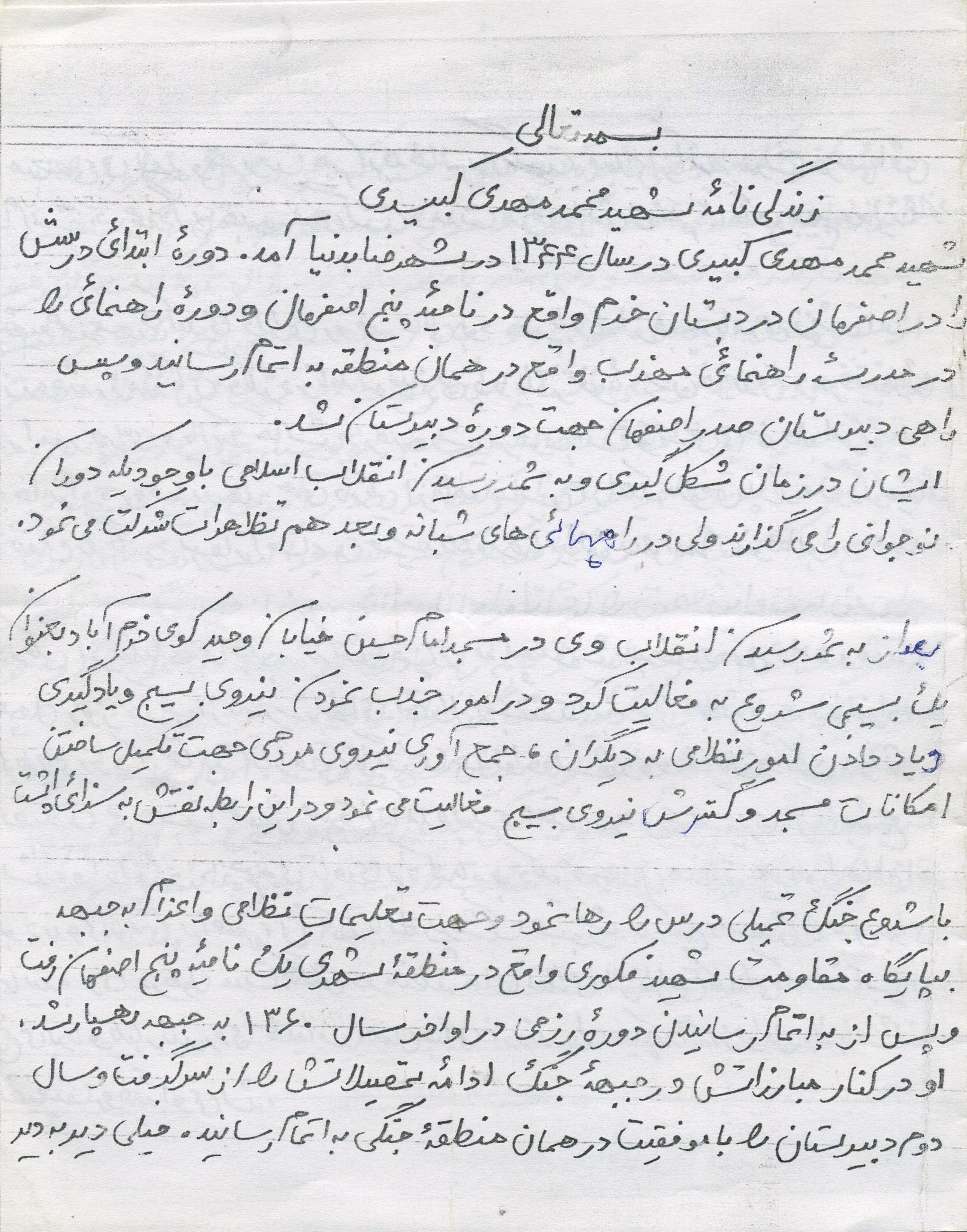 اسناد مرتبط با شهید محمدمهدی کبیری