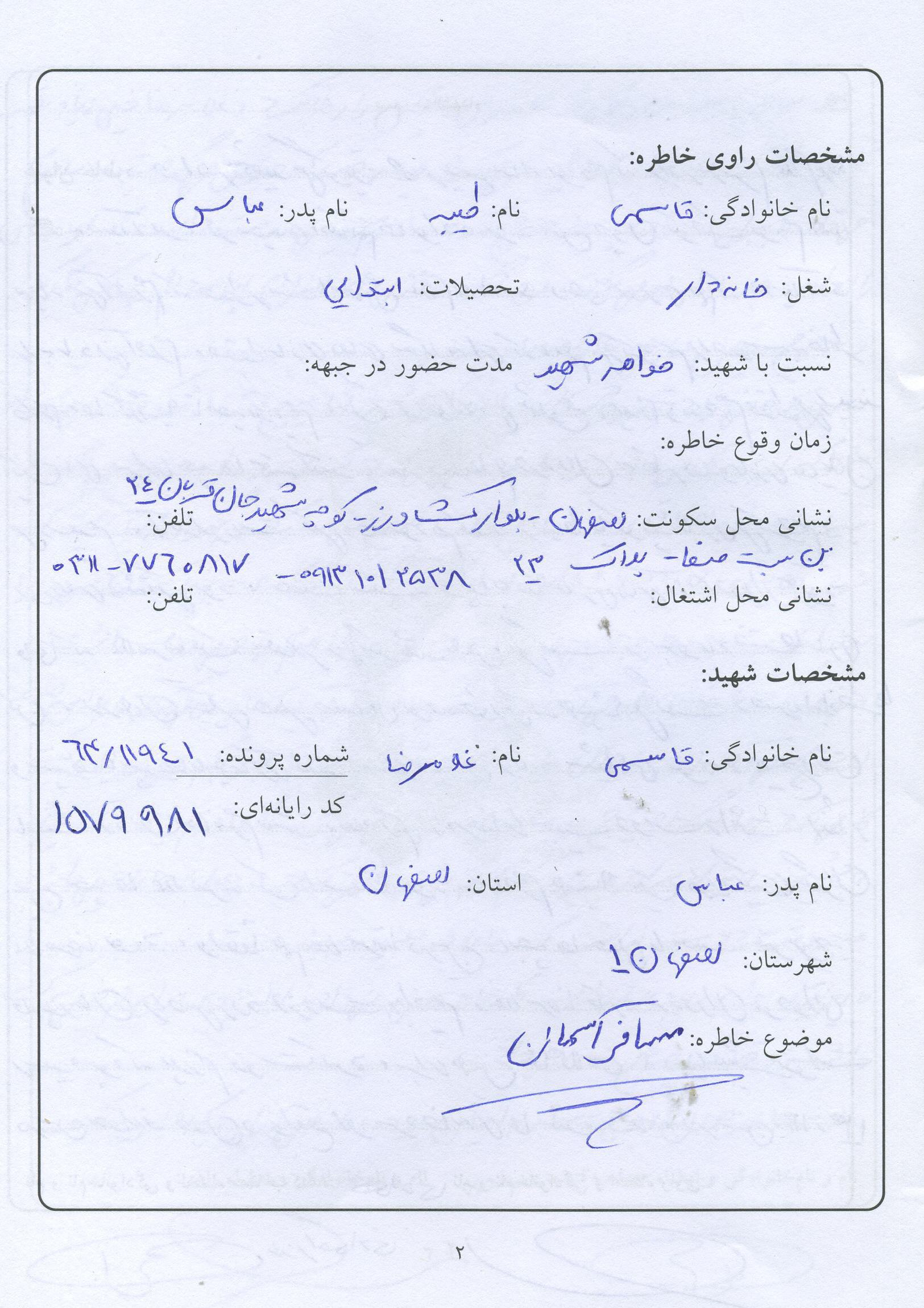 اسناد مرتبط با شهید غلام رضا قاسمی
