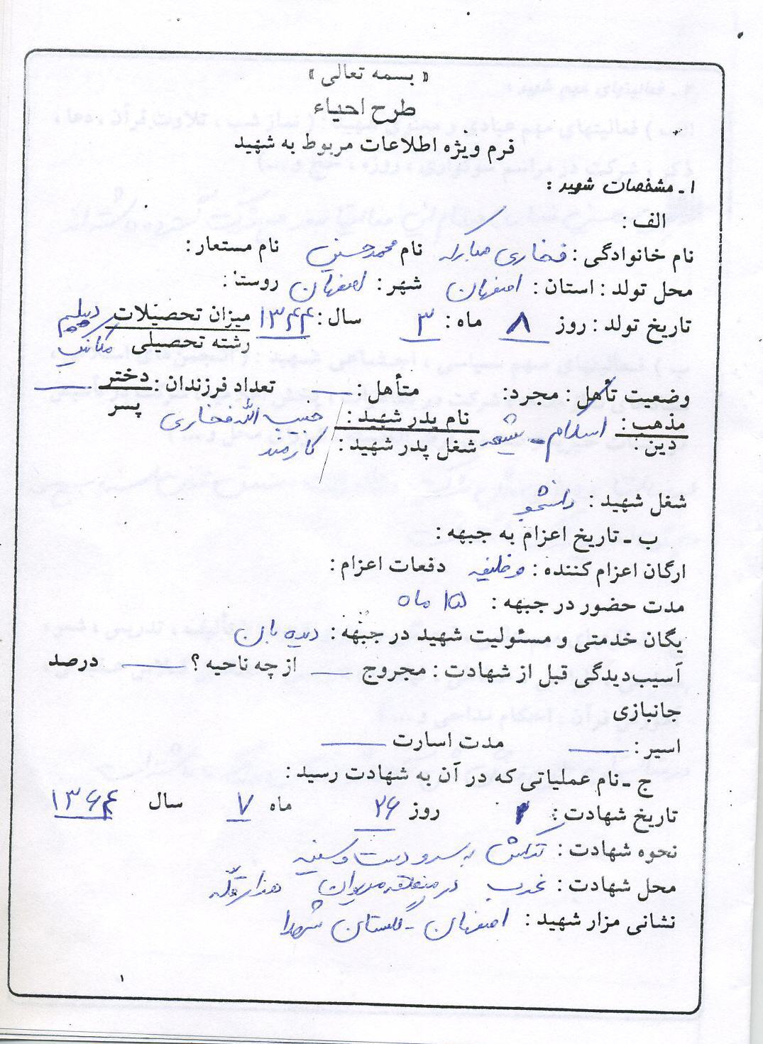 اسناد مرتبط با شهید محمدحسین فخاری مبارکه