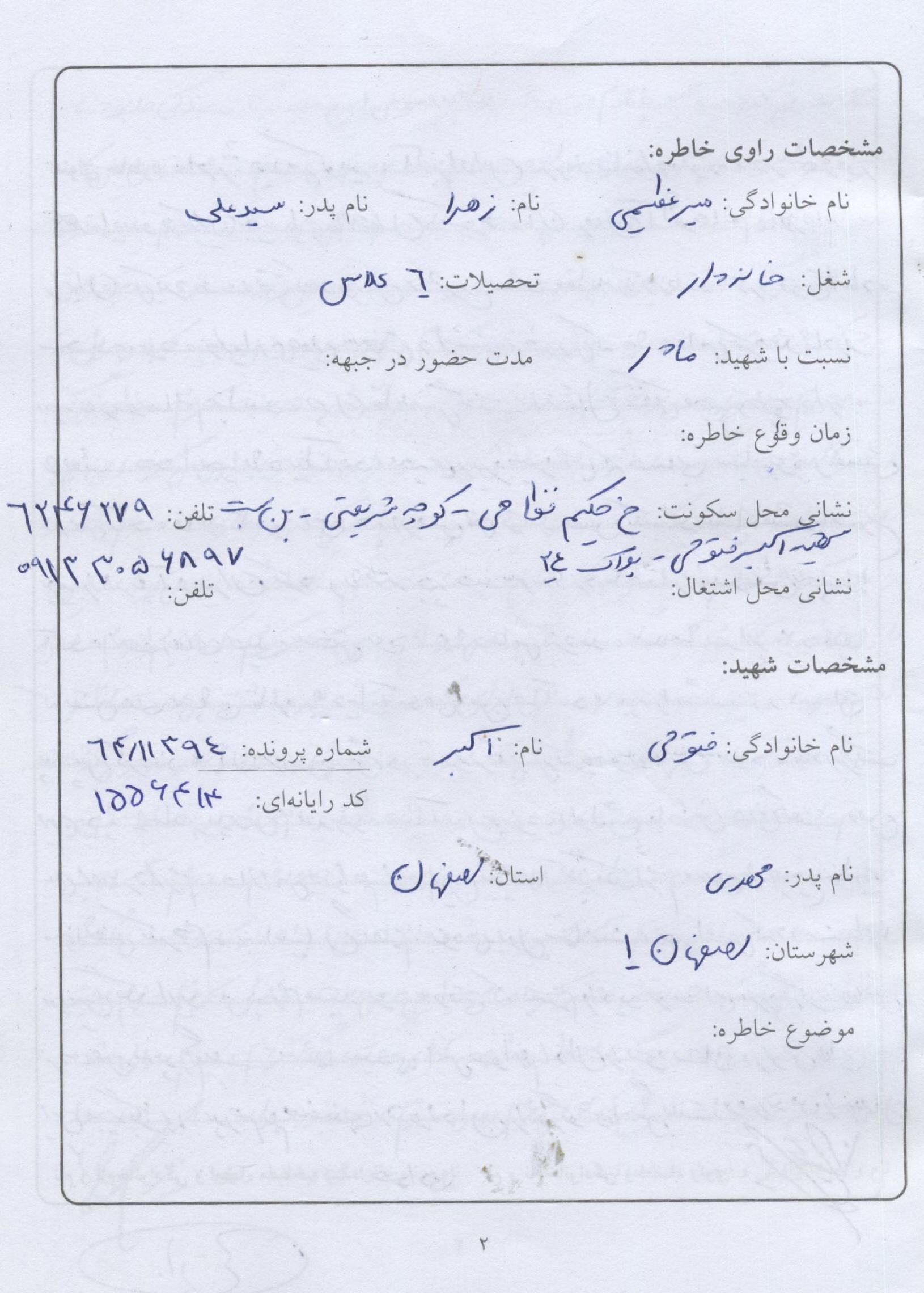 اسناد مرتبط با شهید اکبر فتوحی