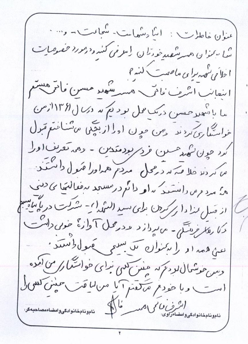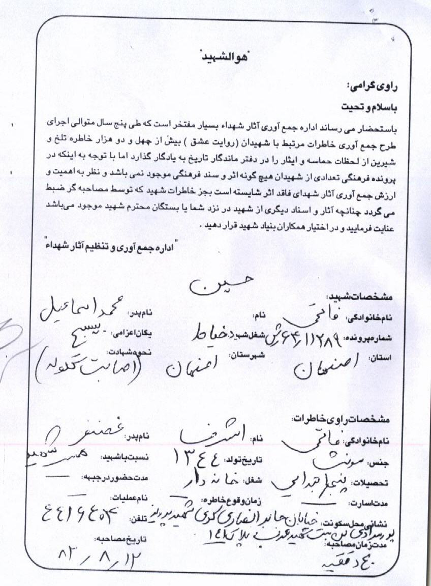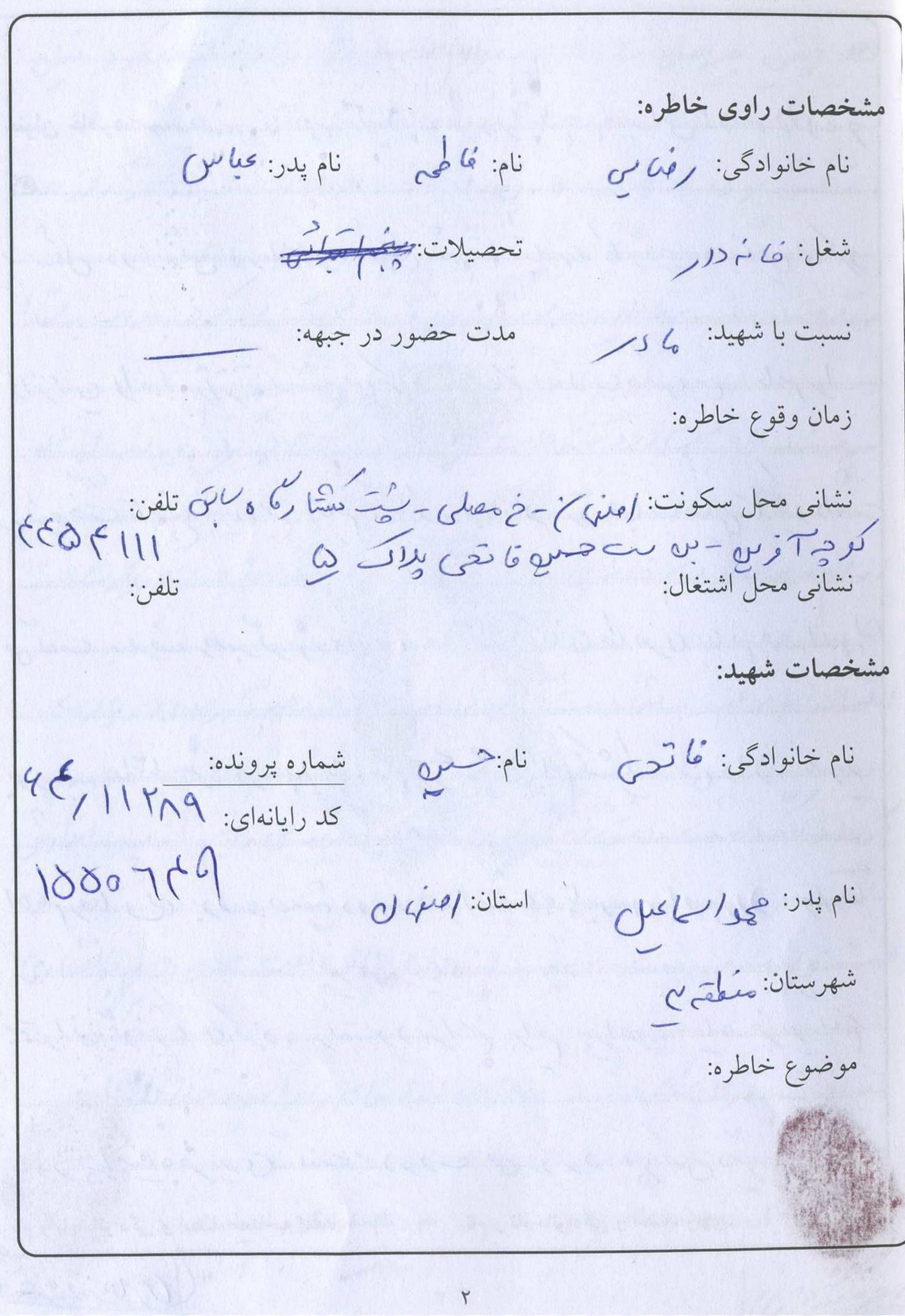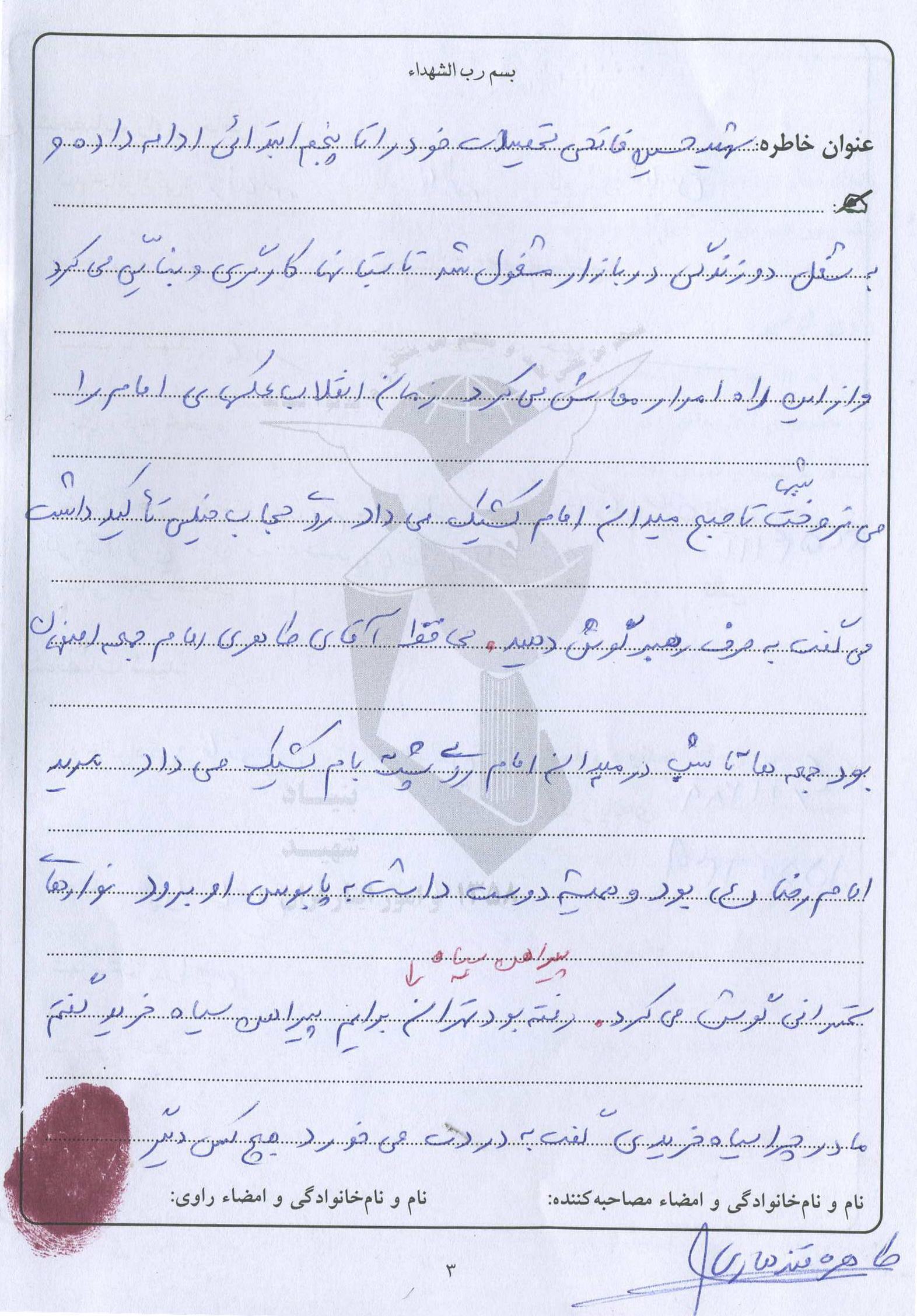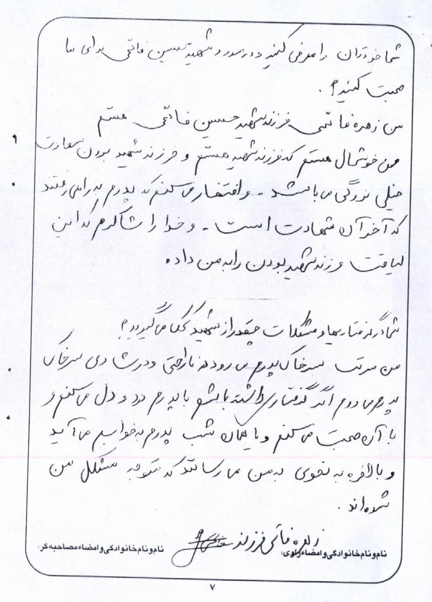 اسناد مرتبط با شهید حسین فاتحی پیکانی