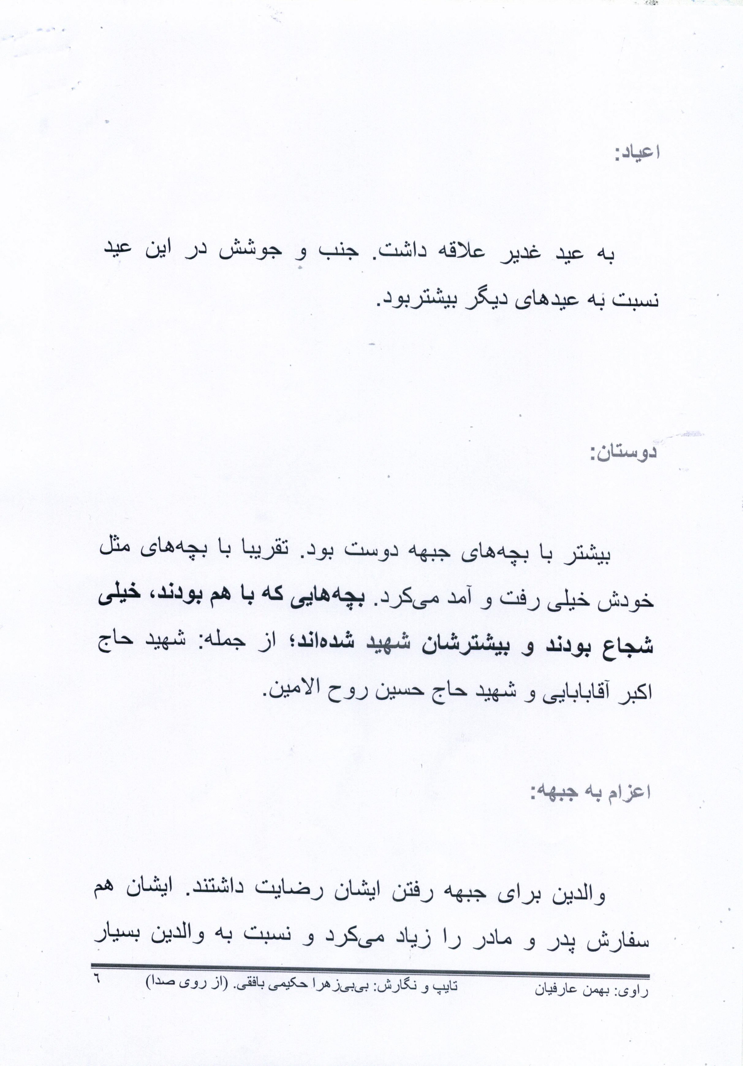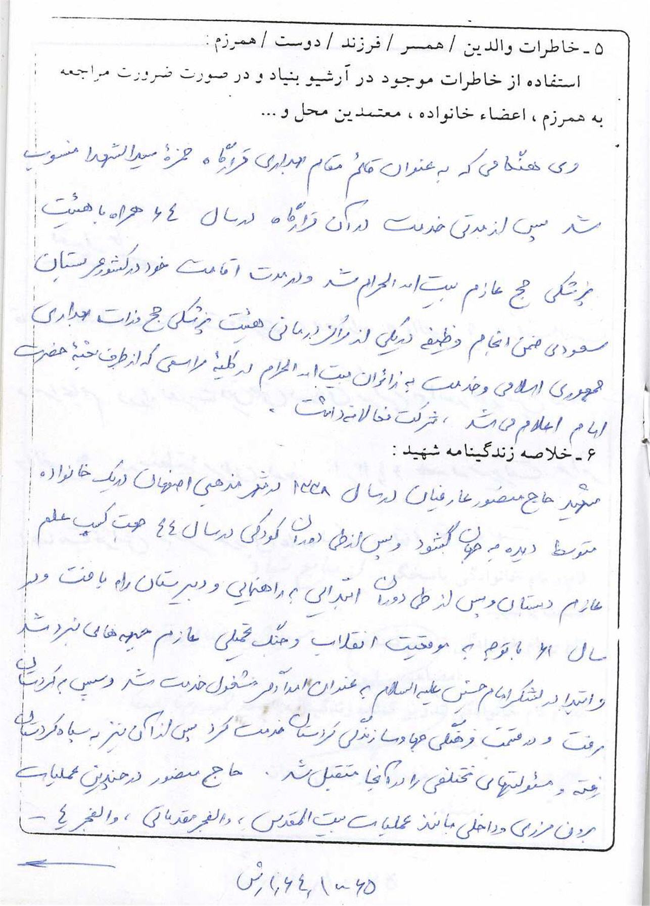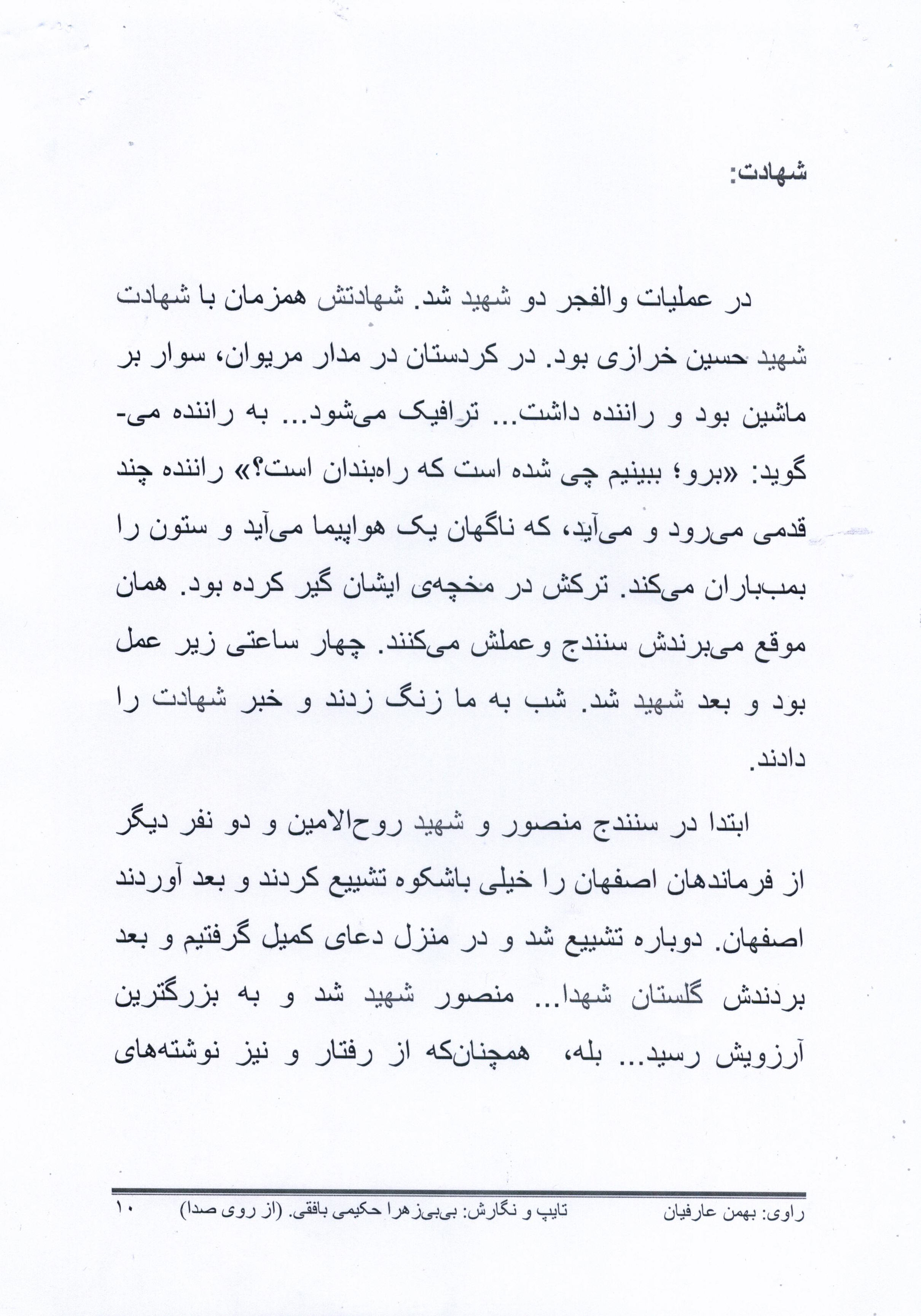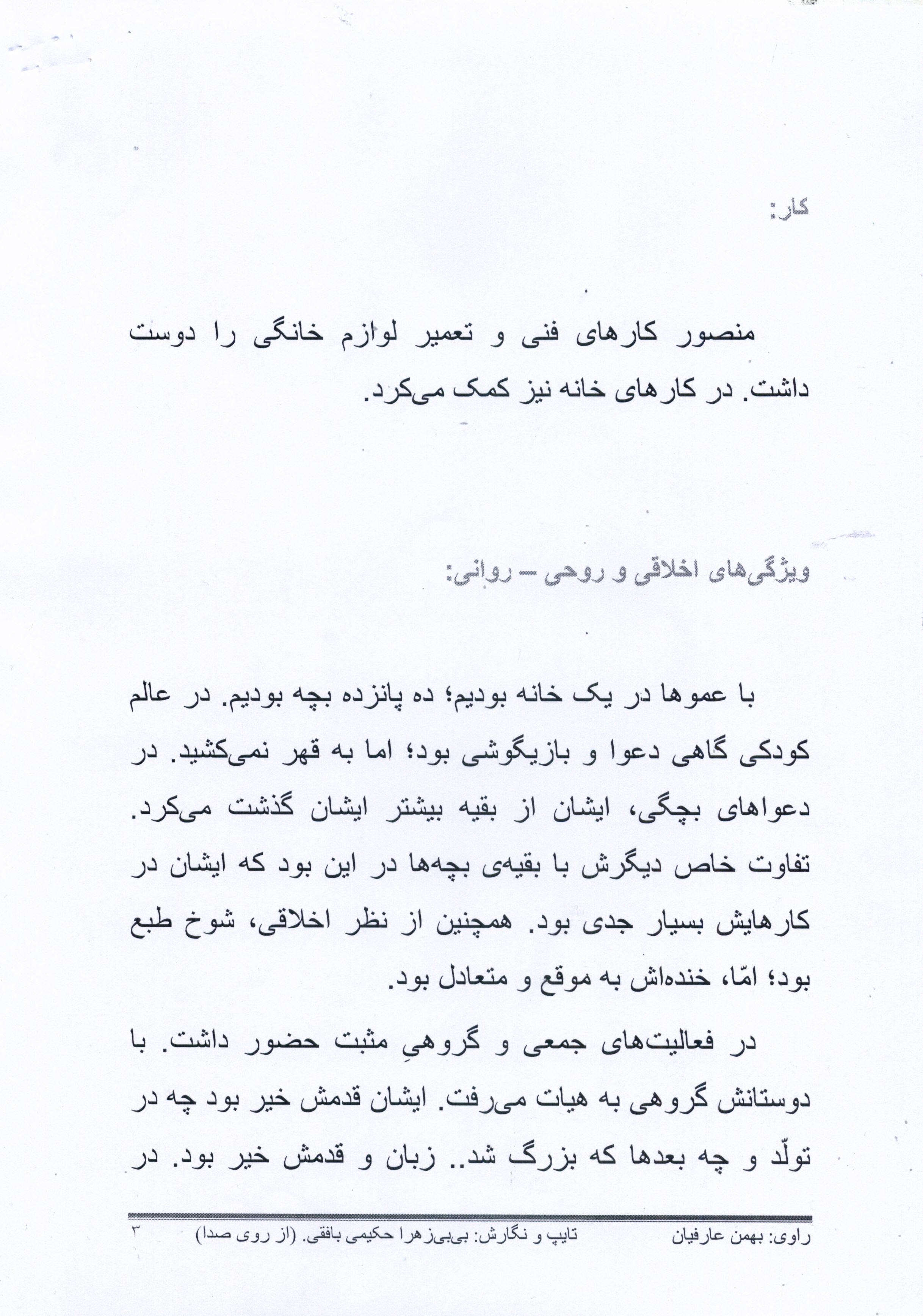 اسناد مرتبط با شهید منصور عارفیان جزی