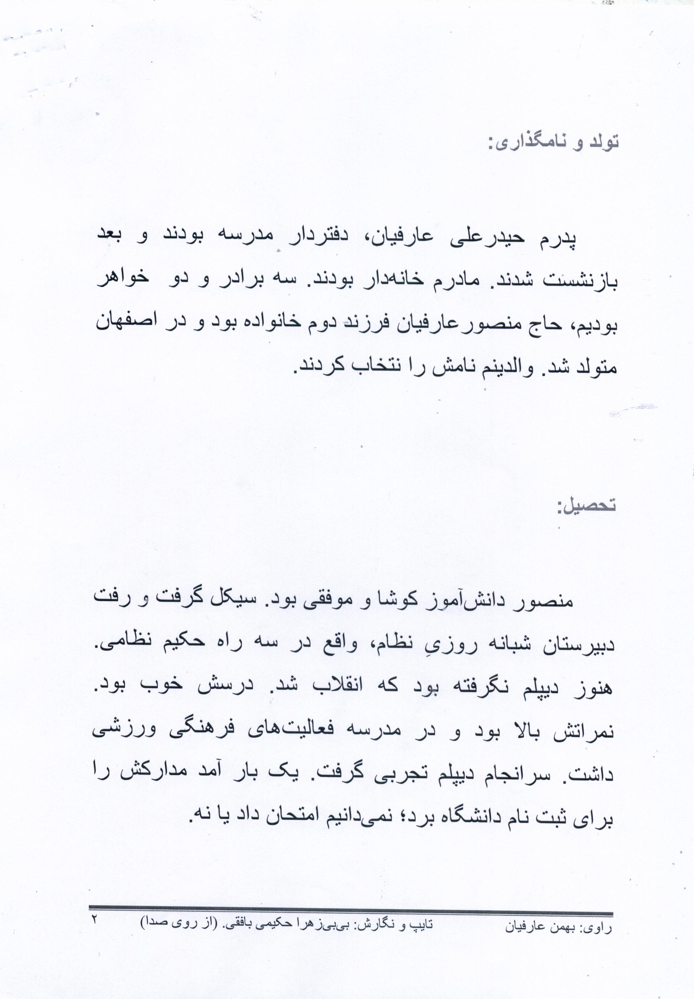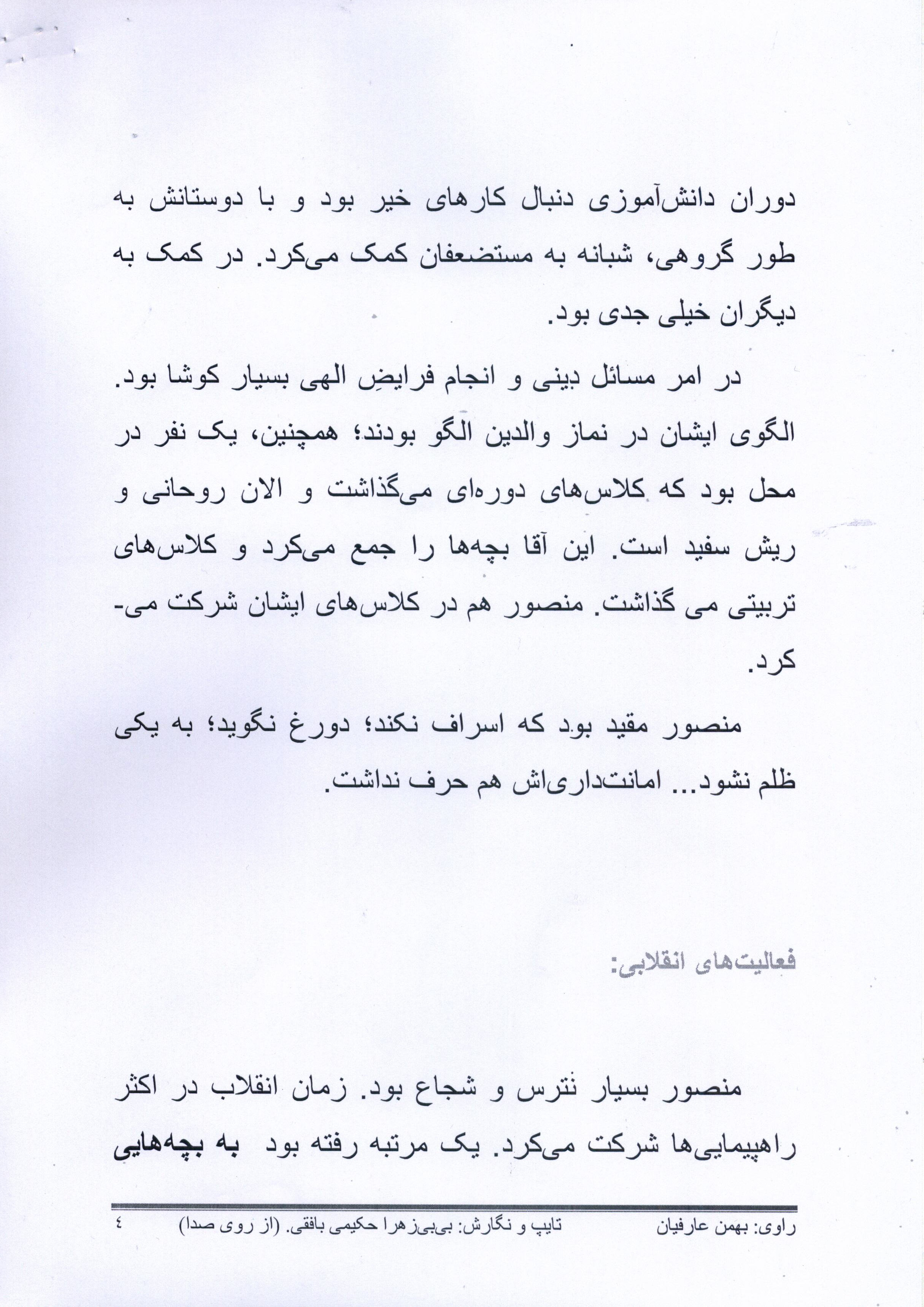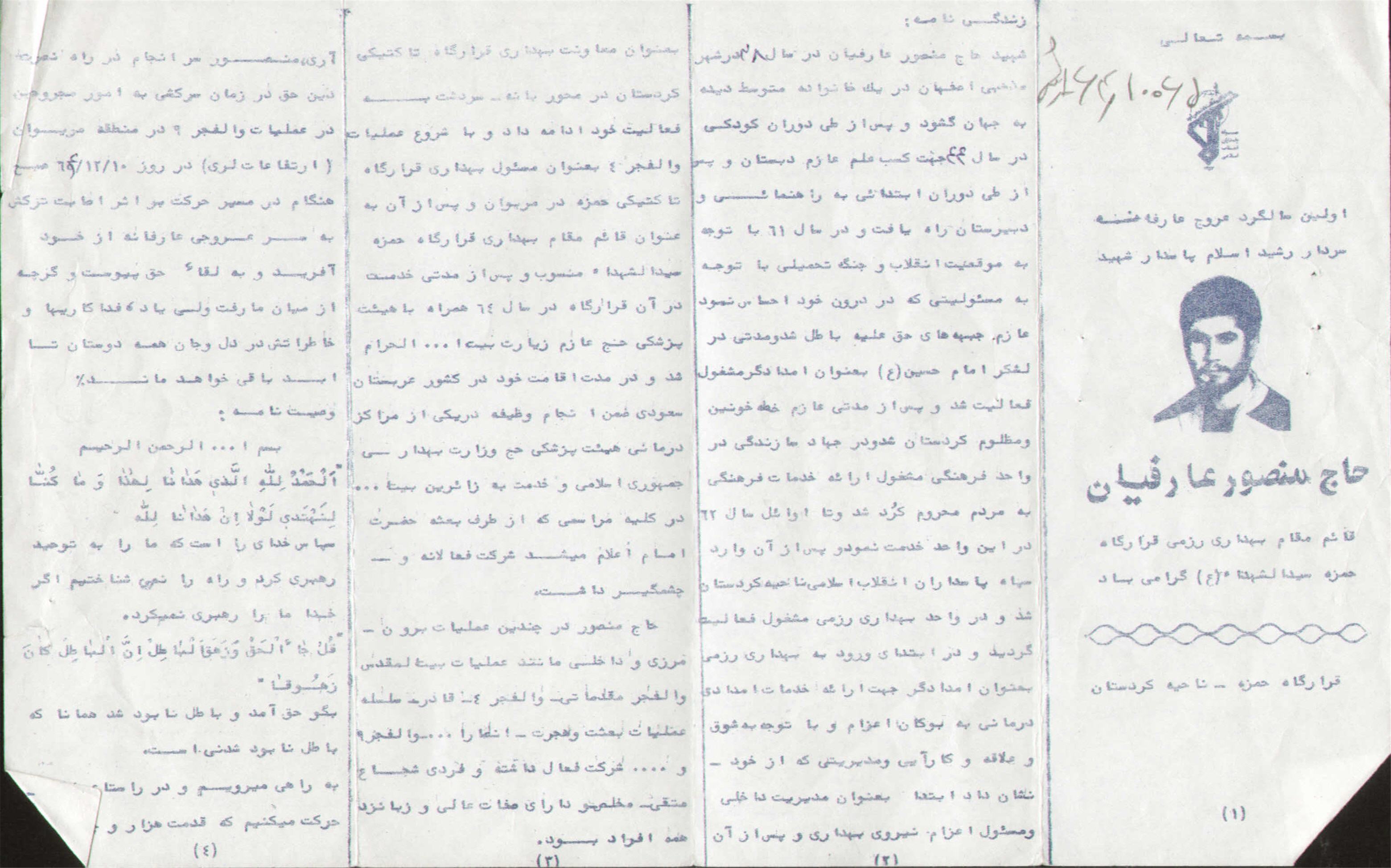 اسناد مرتبط با شهید منصور عارفیان جزی