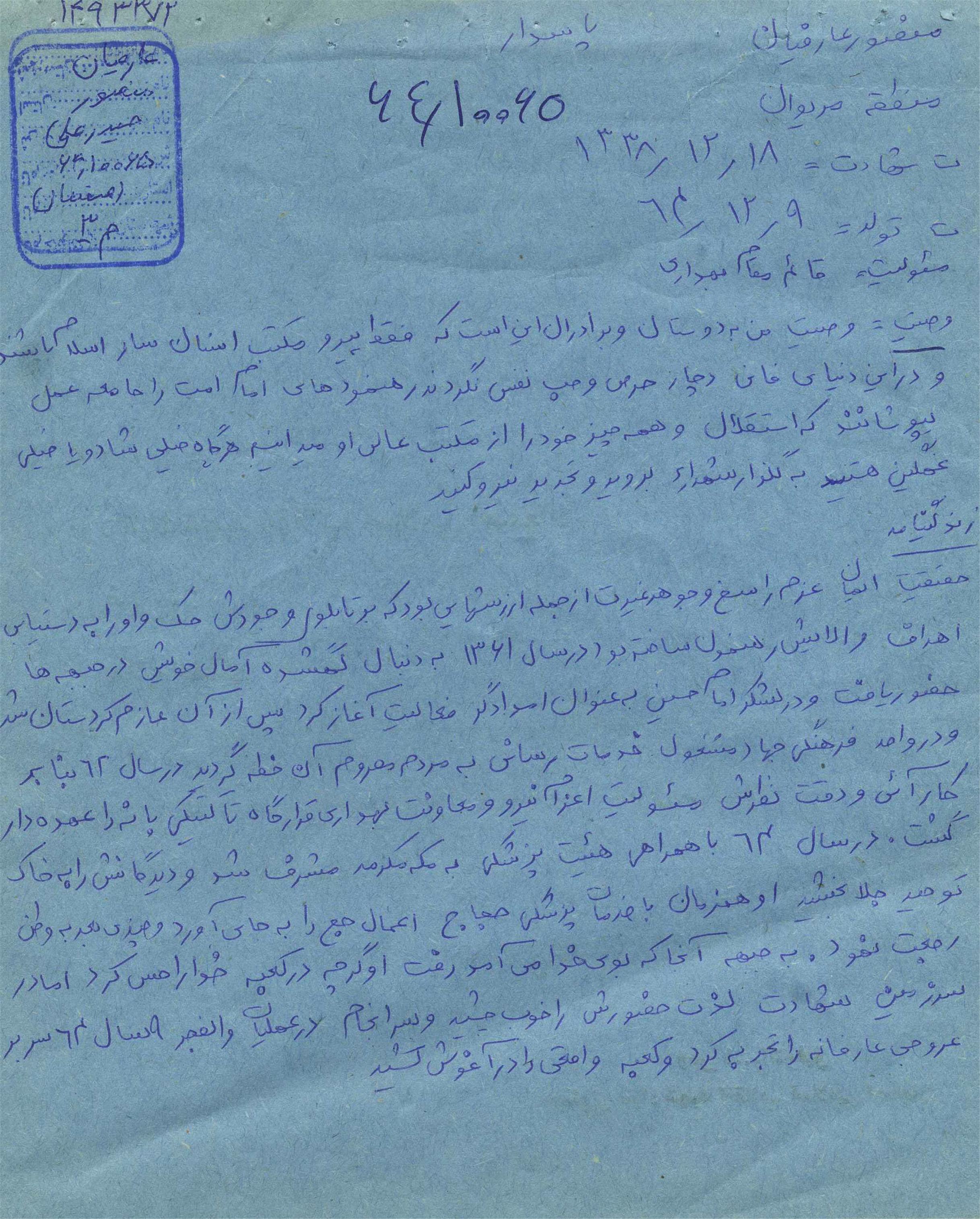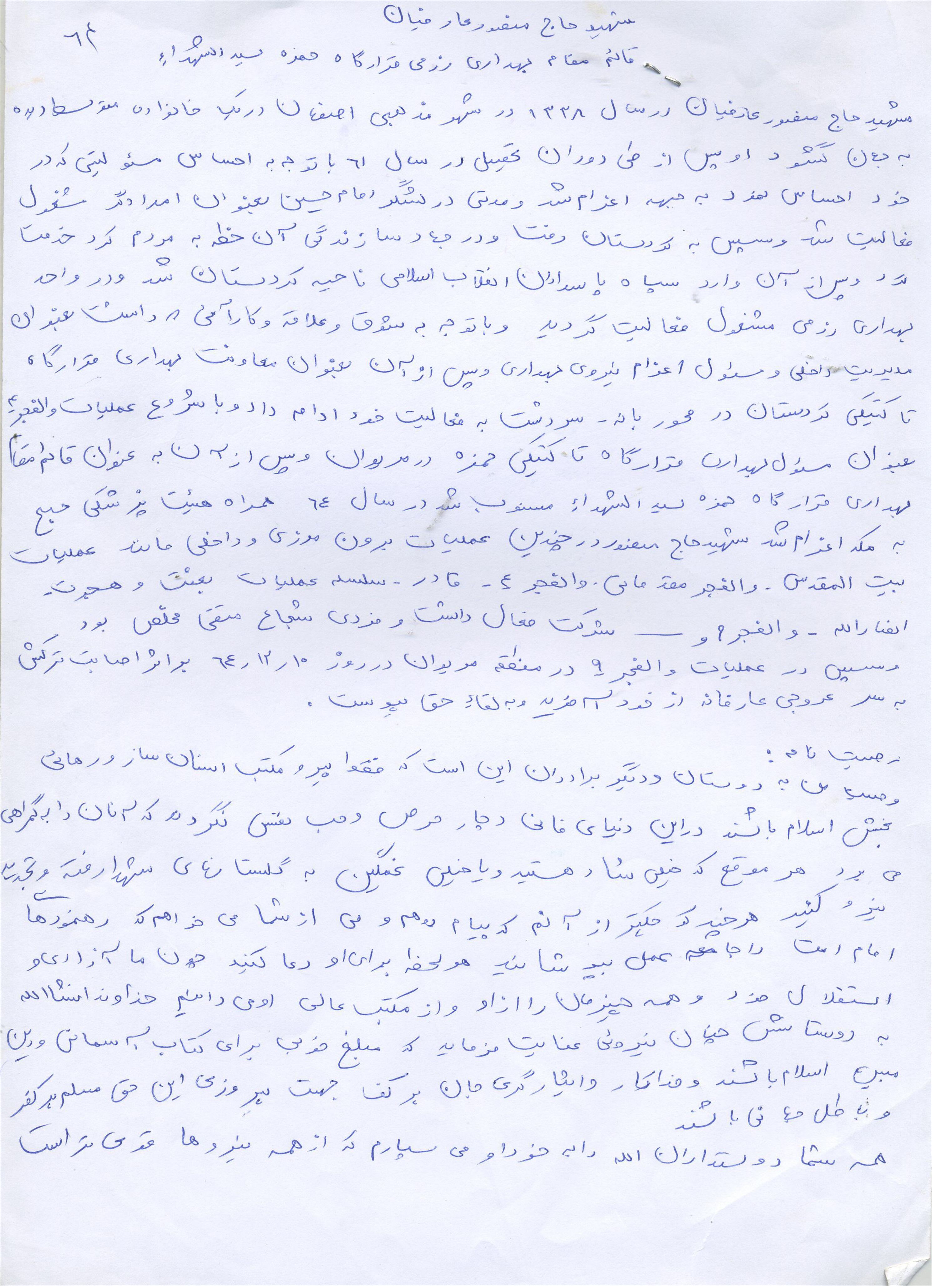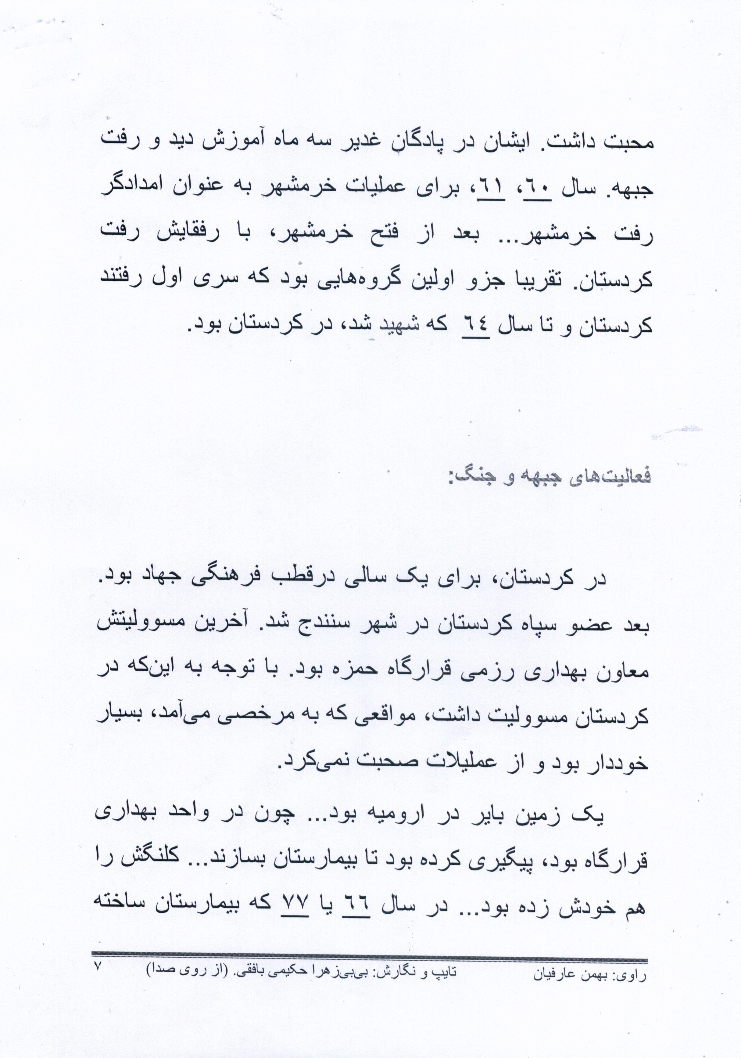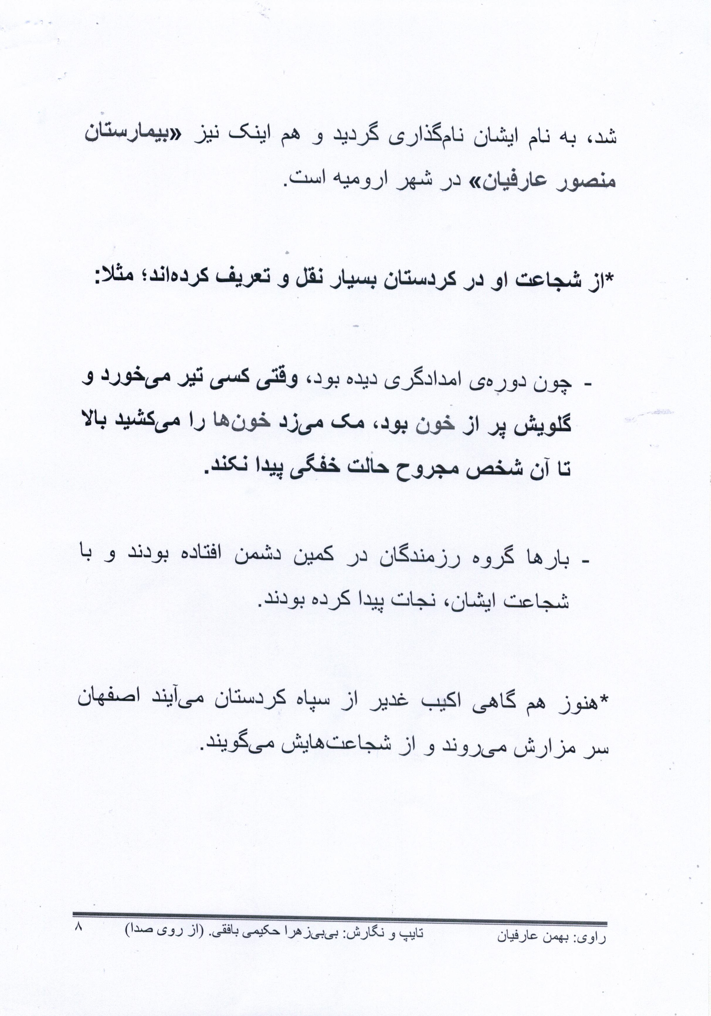 اسناد مرتبط با شهید منصور عارفیان جزی