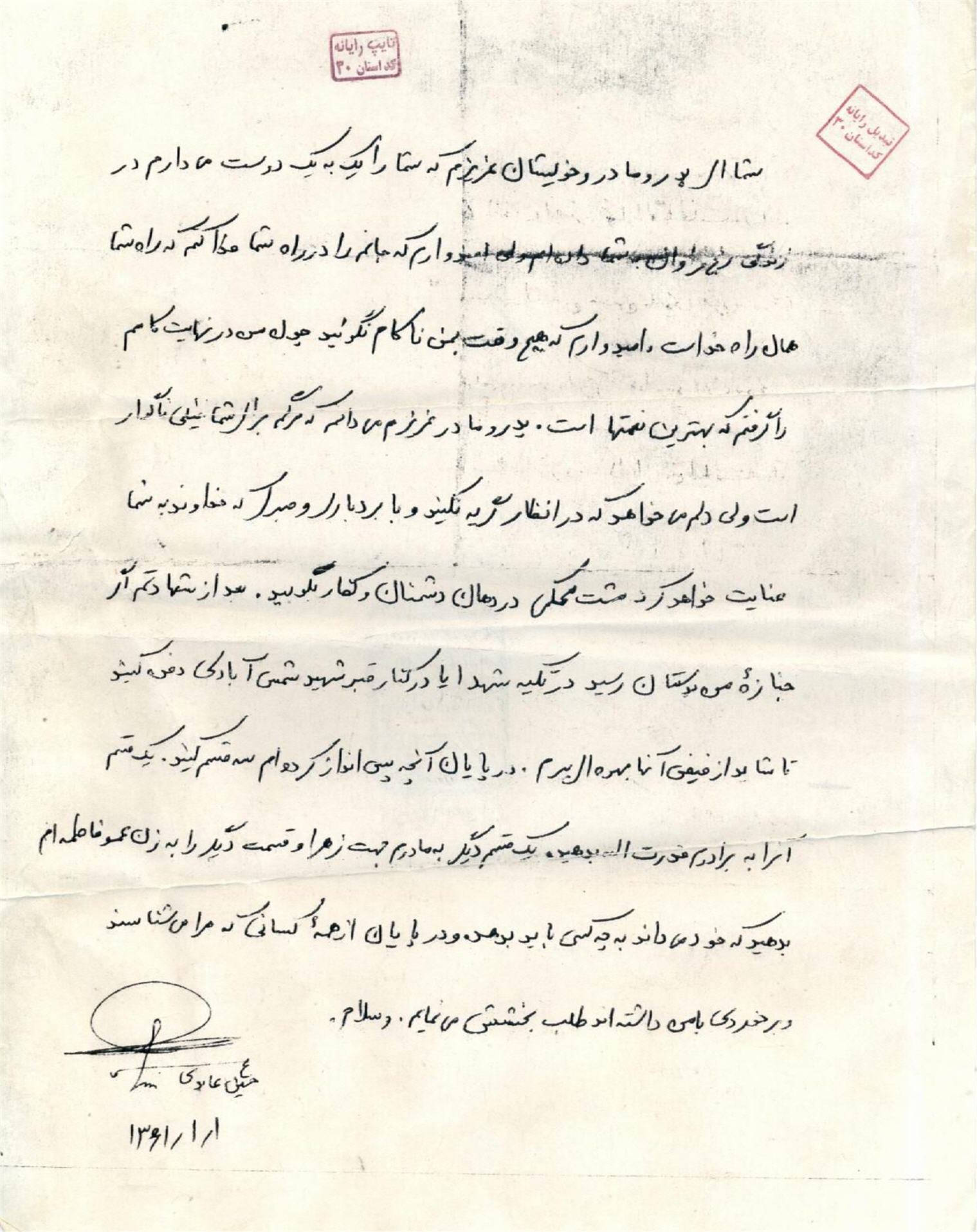 اسناد مرتبط با شهید محسن عابدی جبلی