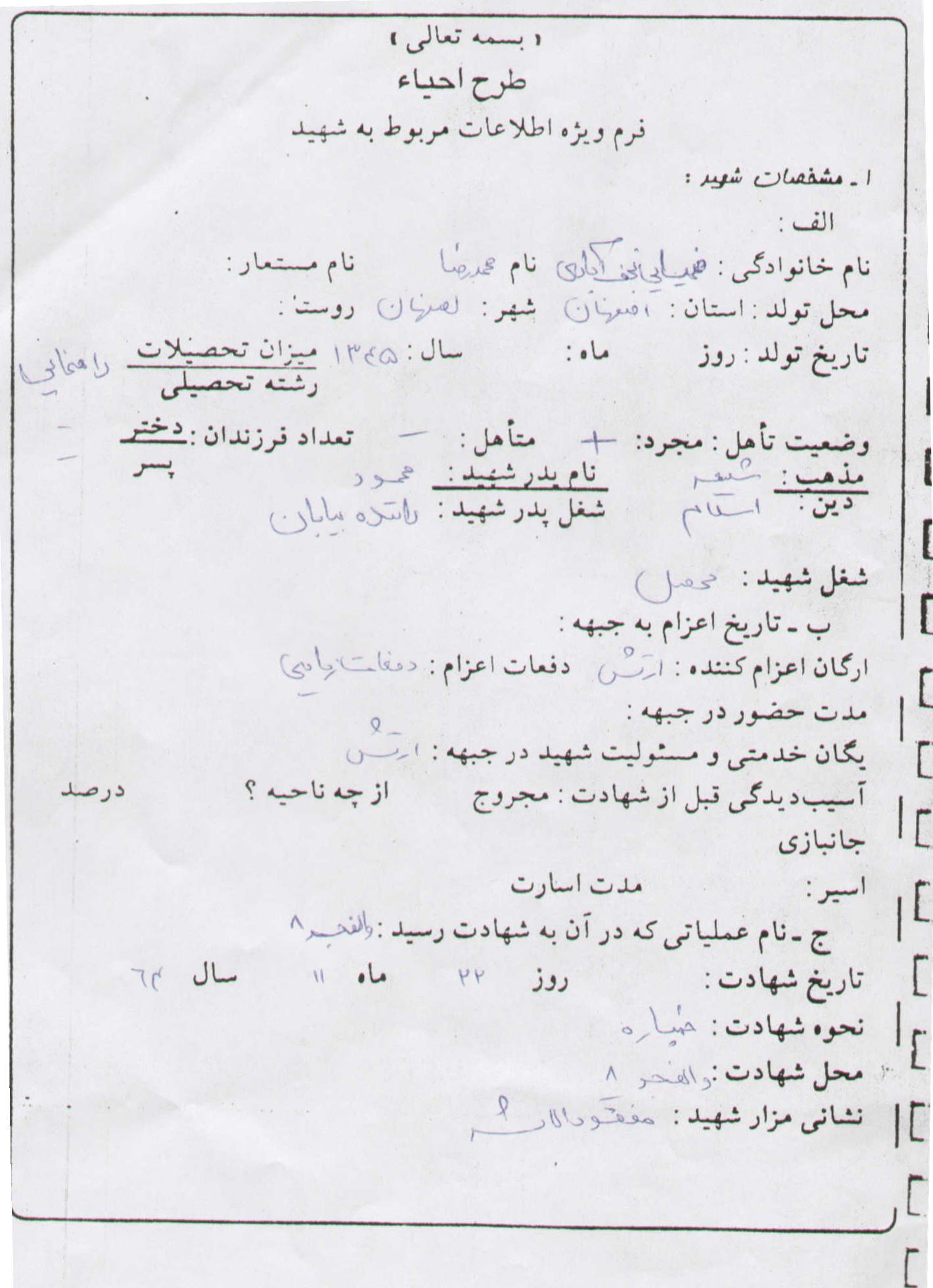 اسناد مرتبط با شهید محمدرضا ضیایی نجف آبادی