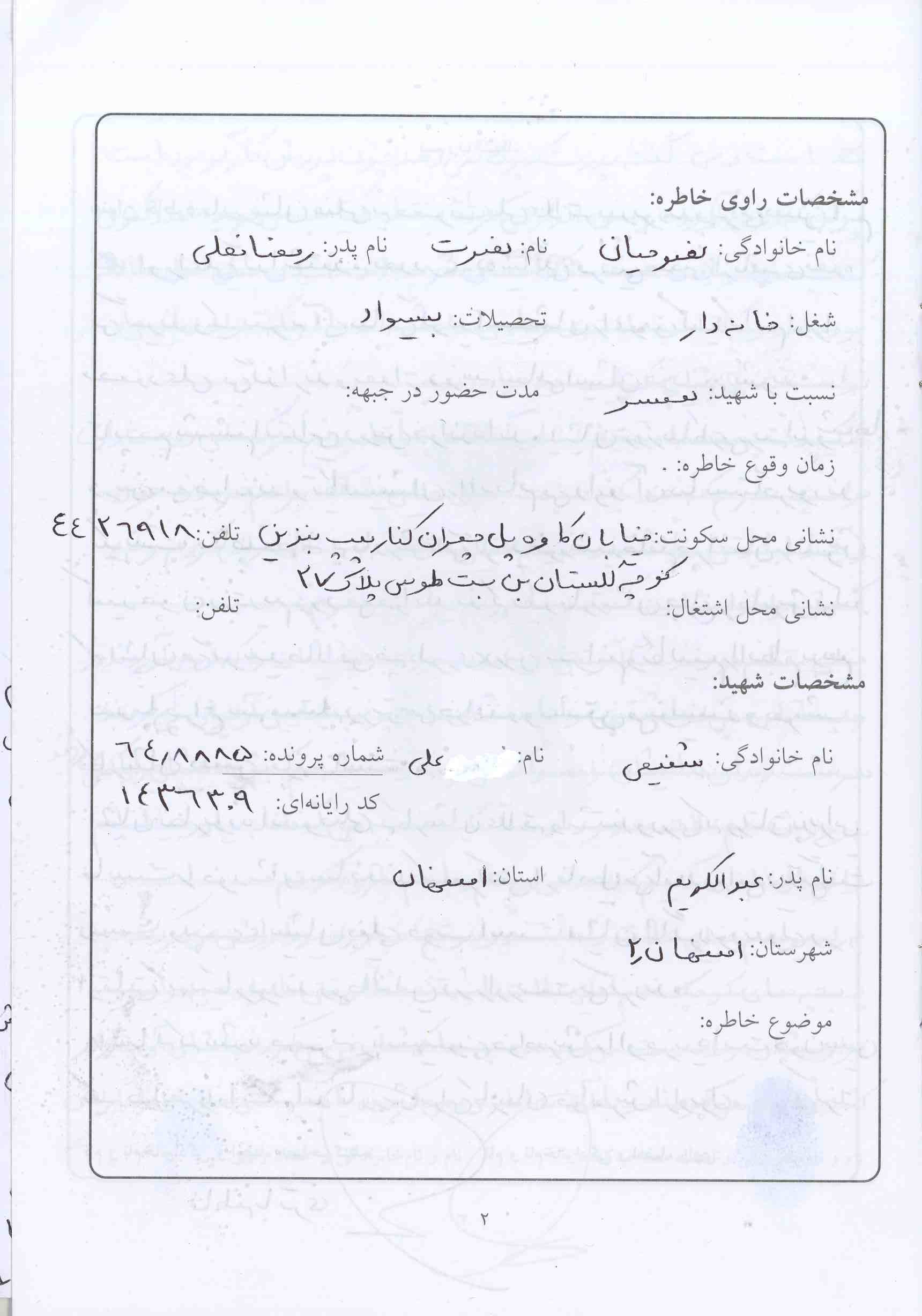 اسناد مرتبط با شهید علی شفیعی علویجه