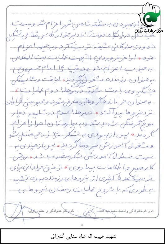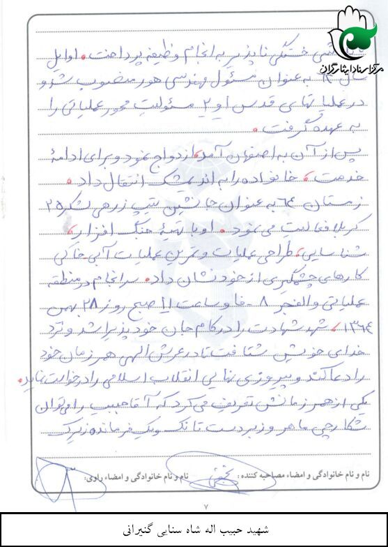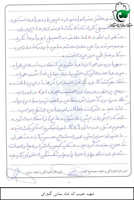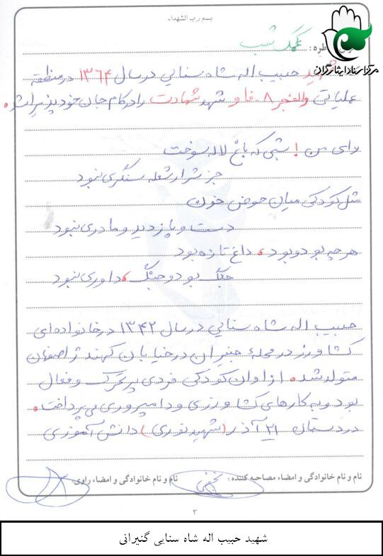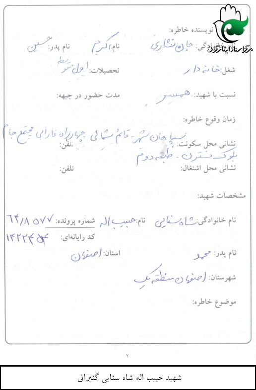 اسناد مرتبط با شهید حبیب الله شاه سنایی گنیرانی