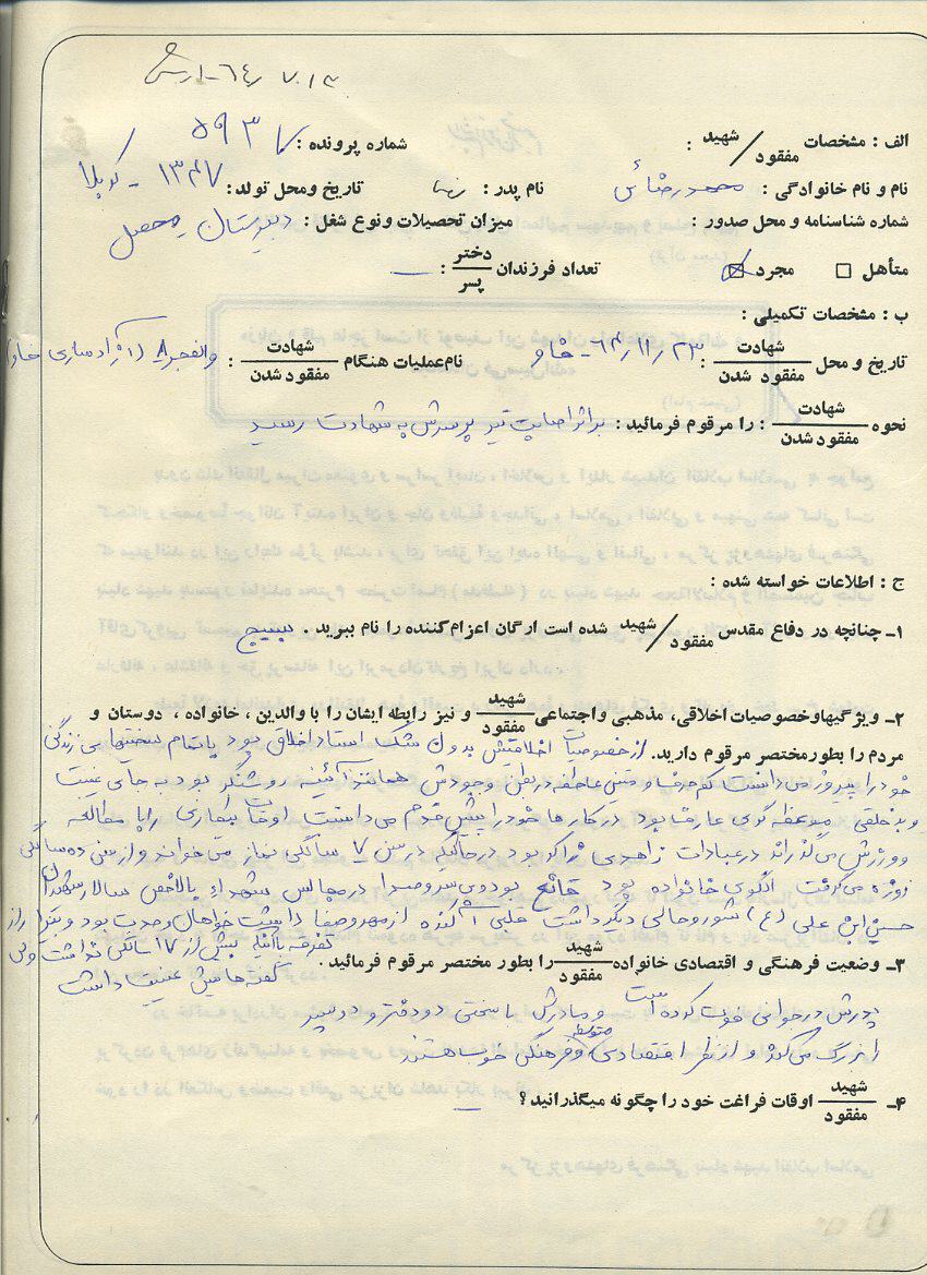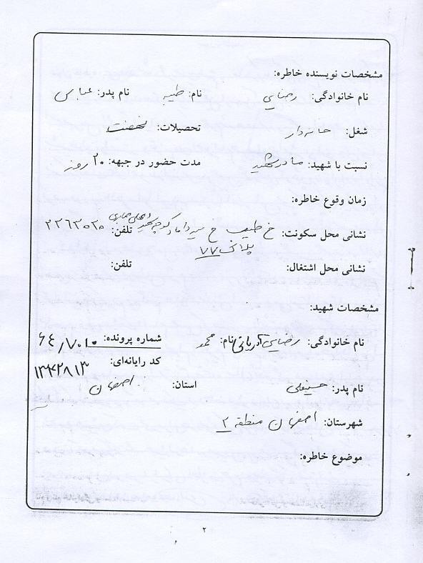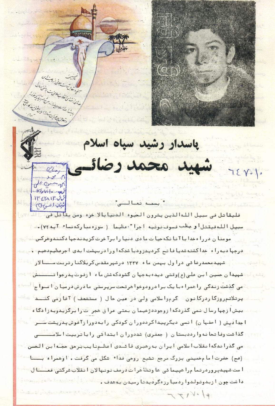 اسناد مرتبط با شهید محمد رضایی آدریانی