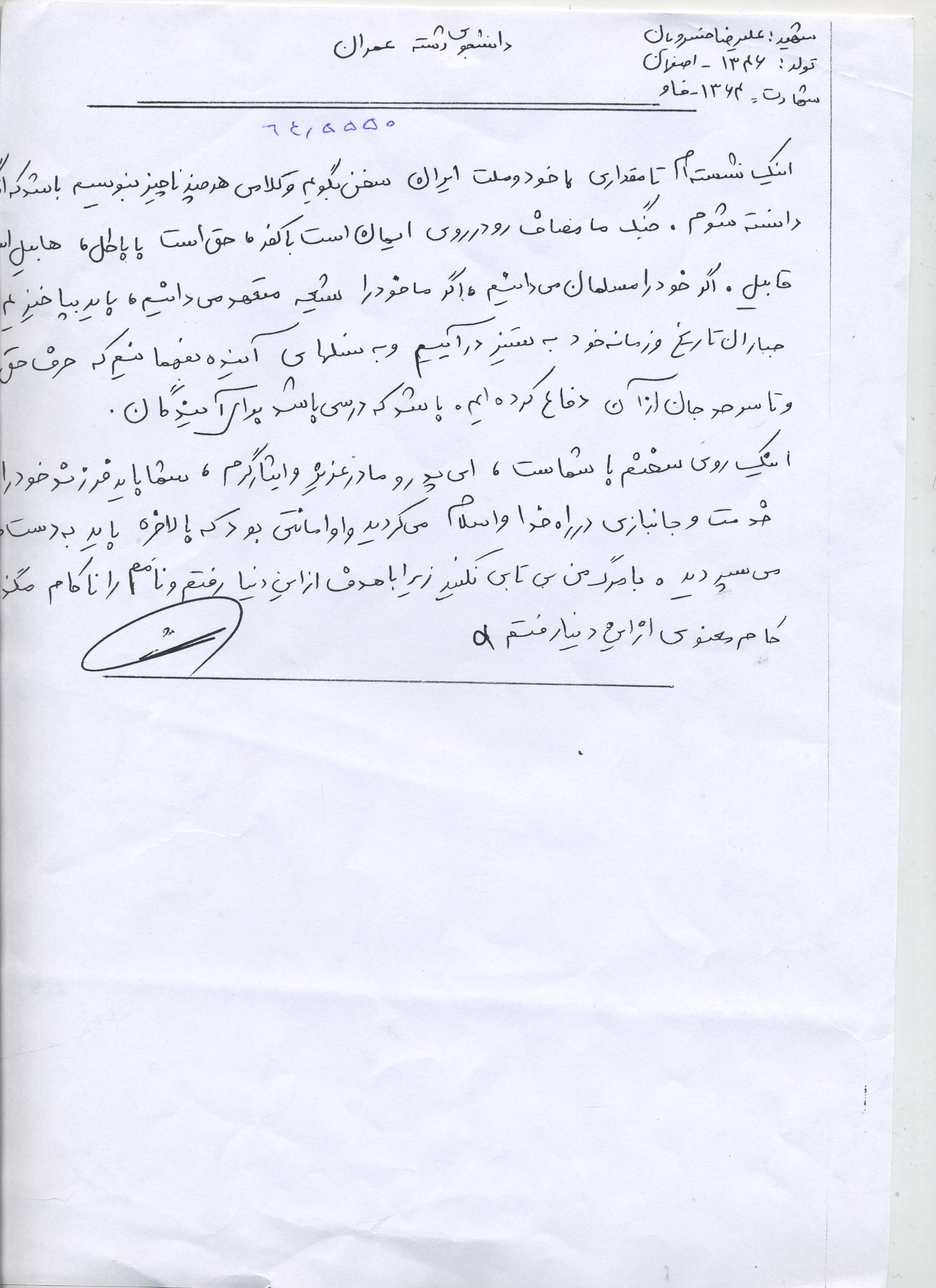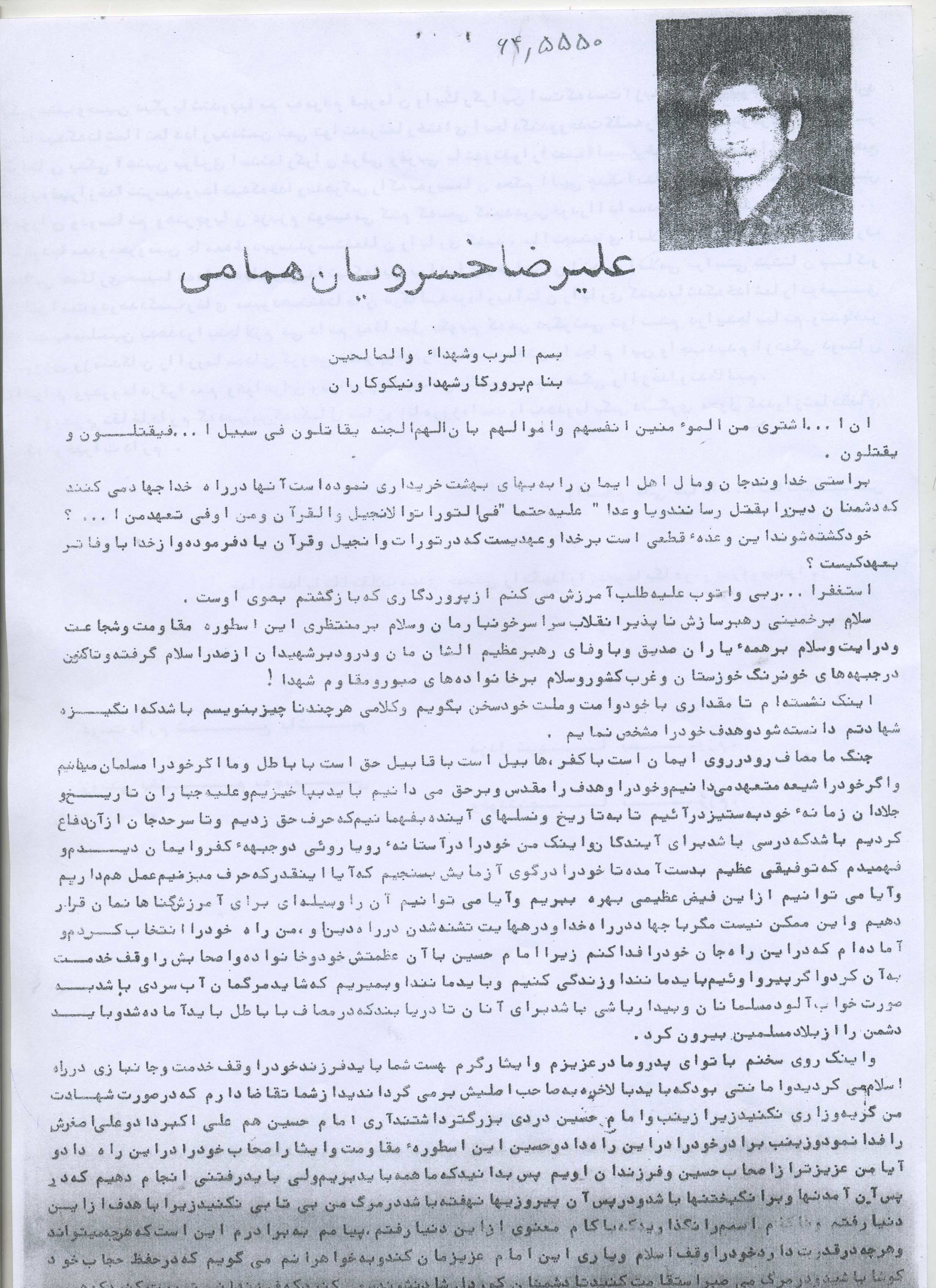 اسناد مرتبط با شهید علی رضا خسرویان همامی